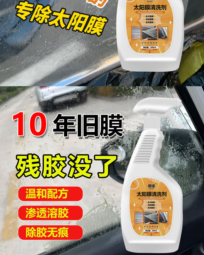 자동차 썬팅 필름 전용 접착제 제거제, 전면 필름, 유리 필름, 강력하고 효율적인 접착제 잔류 접착제 제거제
