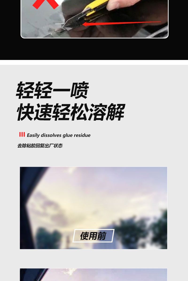 자동차 썬팅 필름 전용 접착제 제거제, 전면 필름, 유리 필름, 강력하고 효율적인 접착제 잔류 접착제 제거제스토어 가기
