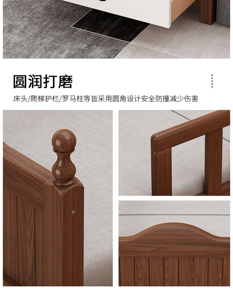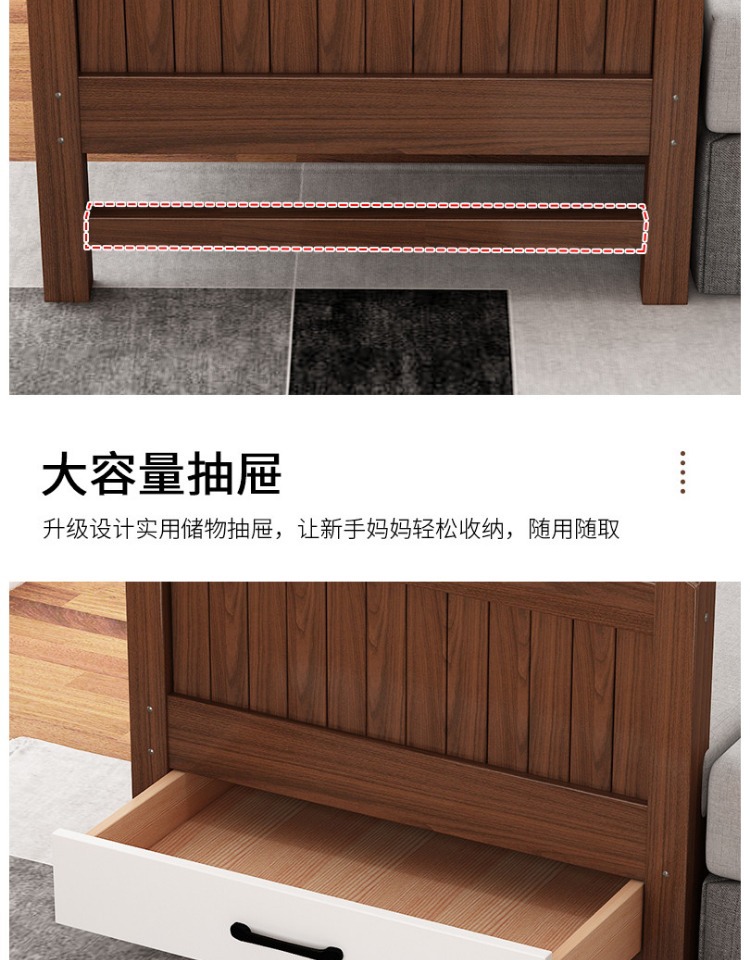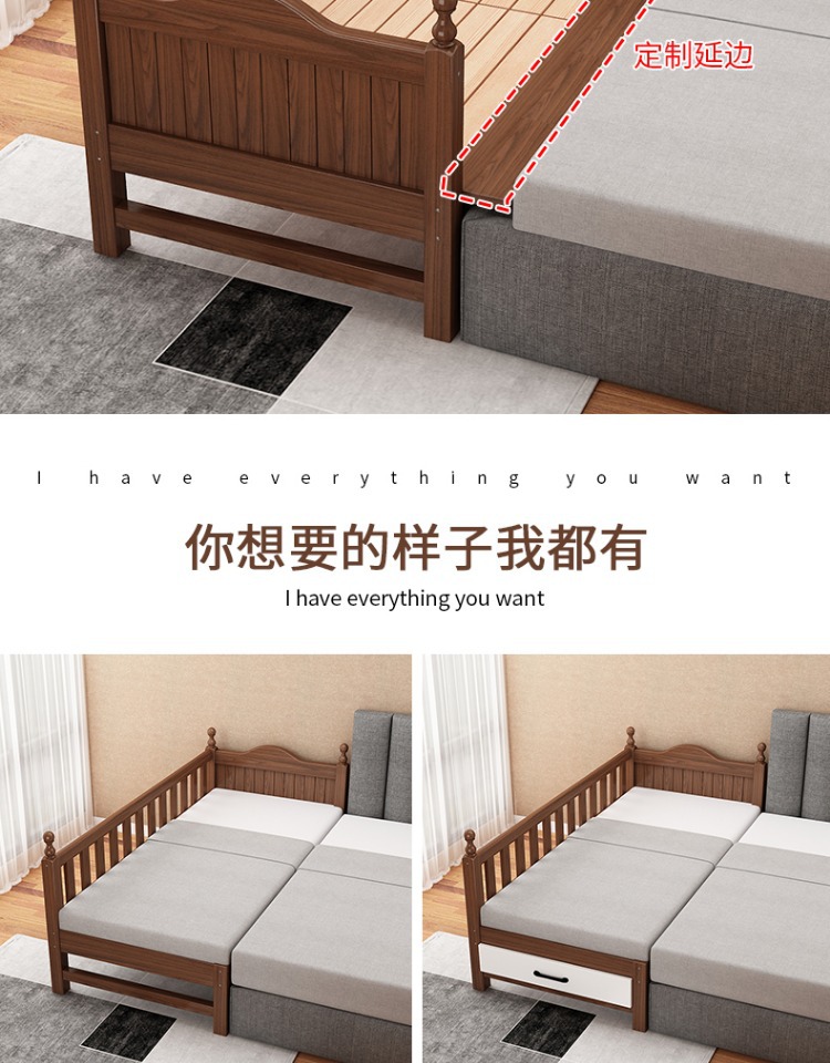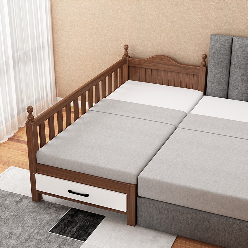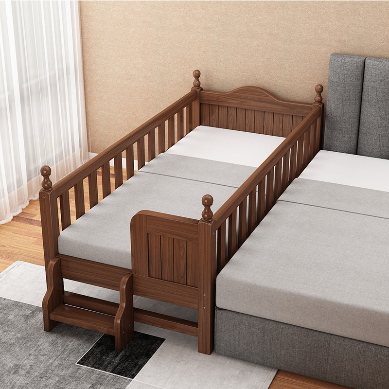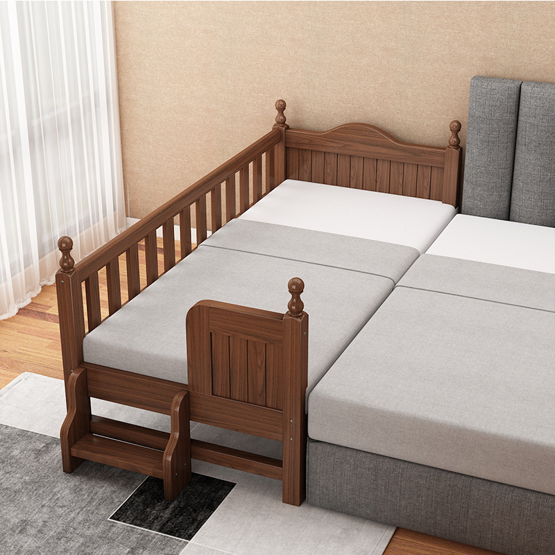 가드레일이 있는 새로운 호두나무 어린이 침대, 아기 유아용 침대, 대형 침대 접합, 원목 확장형 침대, 연장형 침대