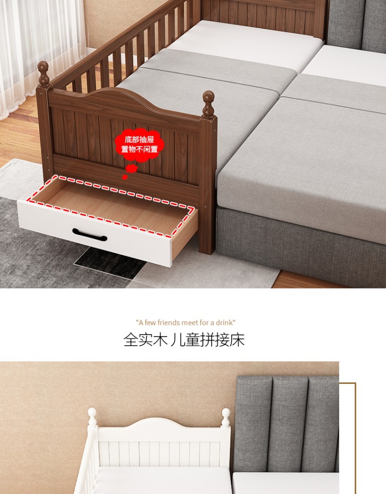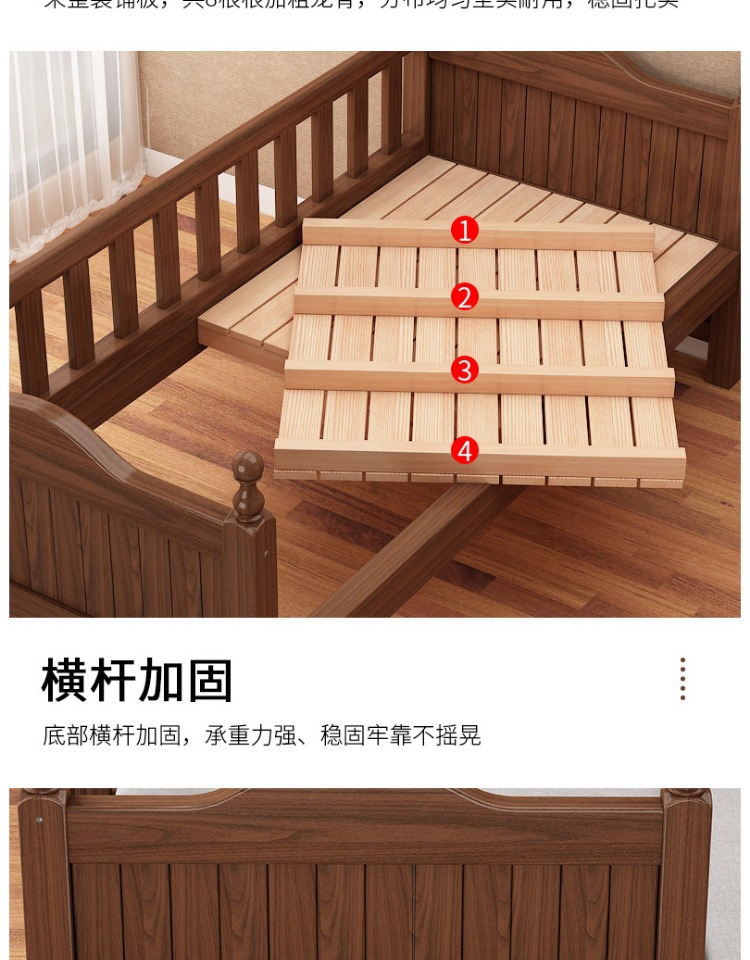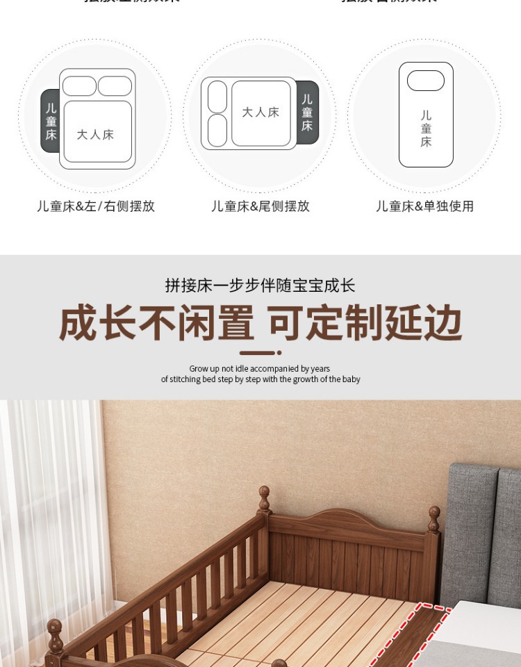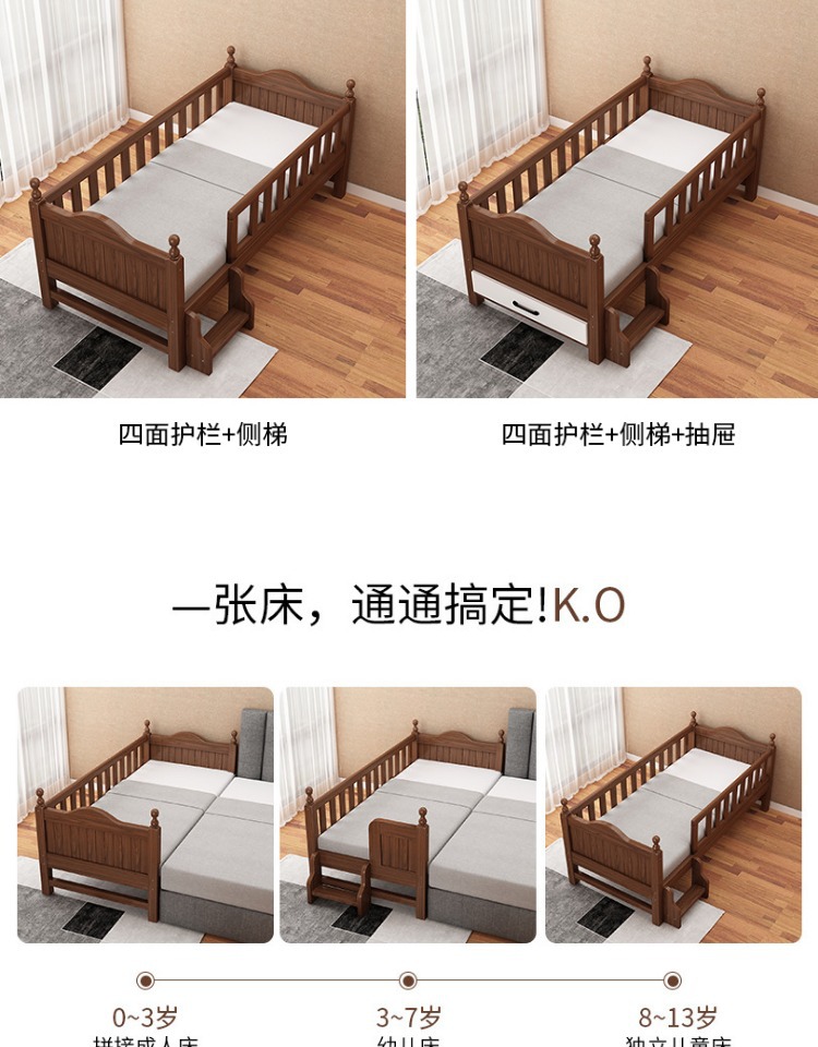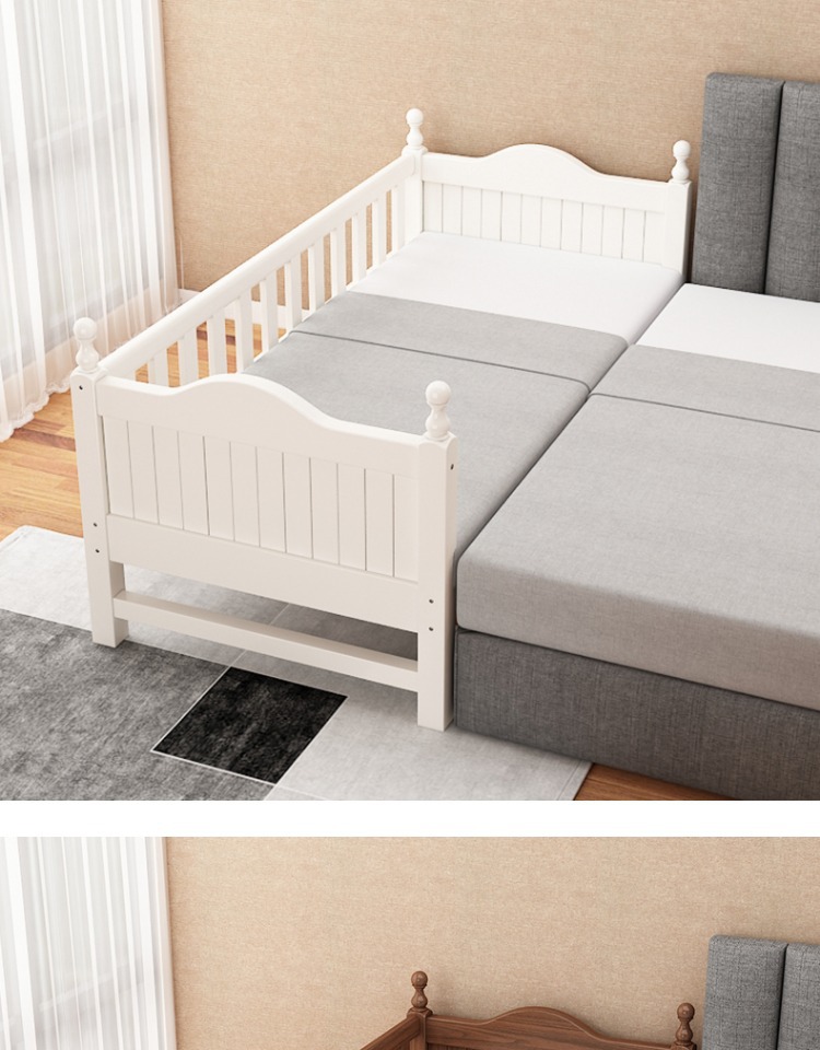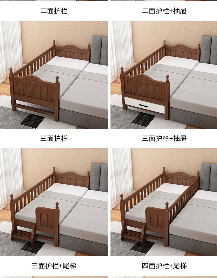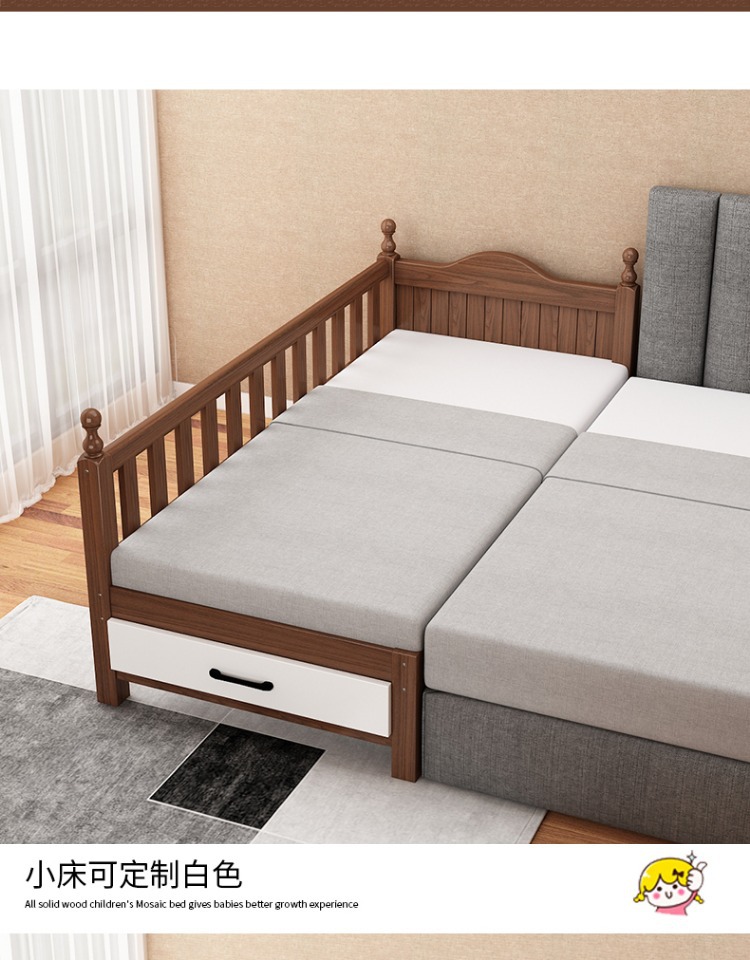 가드레일이 있는 새로운 호두나무 어린이 침대, 아기 유아용 침대, 대형 침대 접합, 원목 확장형 침대, 연장형 침대스토어 가기