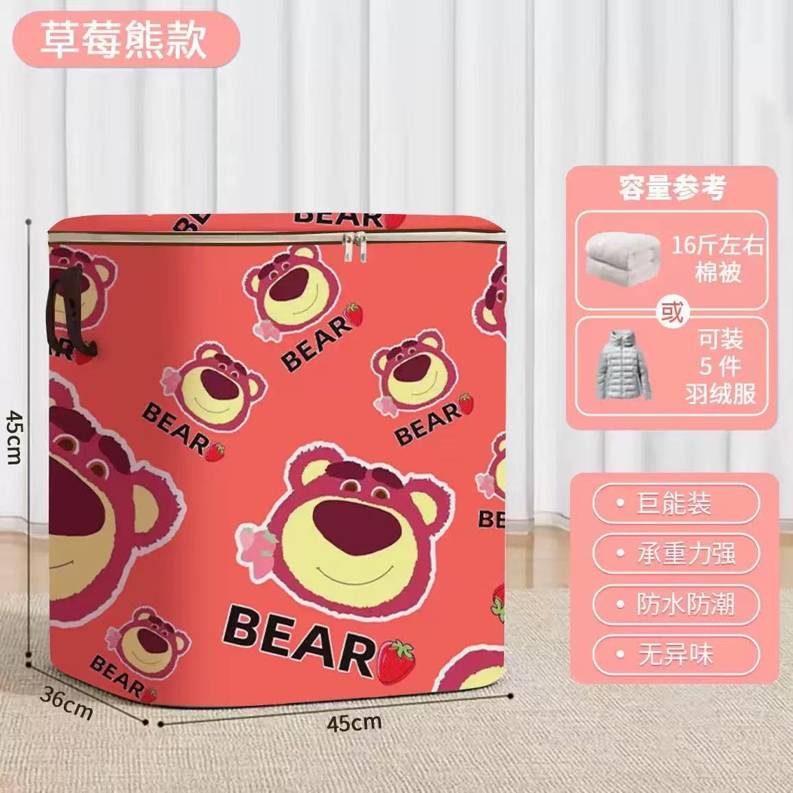 보관 가방 만화 핑크 딸기 곰 보관 가방 대용량 보관 상자 수하물 이동 포장 가방스토어 가기