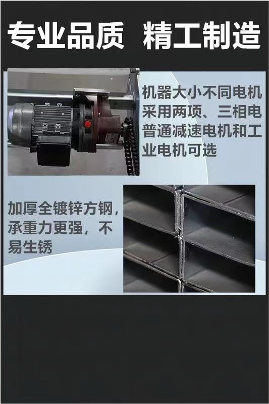 • 380V 순수 구리 산업용 모터 + 호퍼가 있는 3면 인클로저 - 폭 8.6m 및 높이 4m 조절 가능
