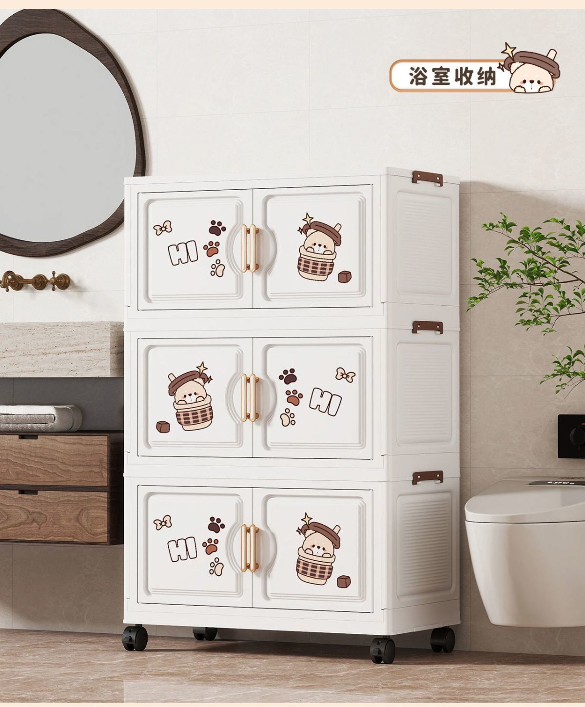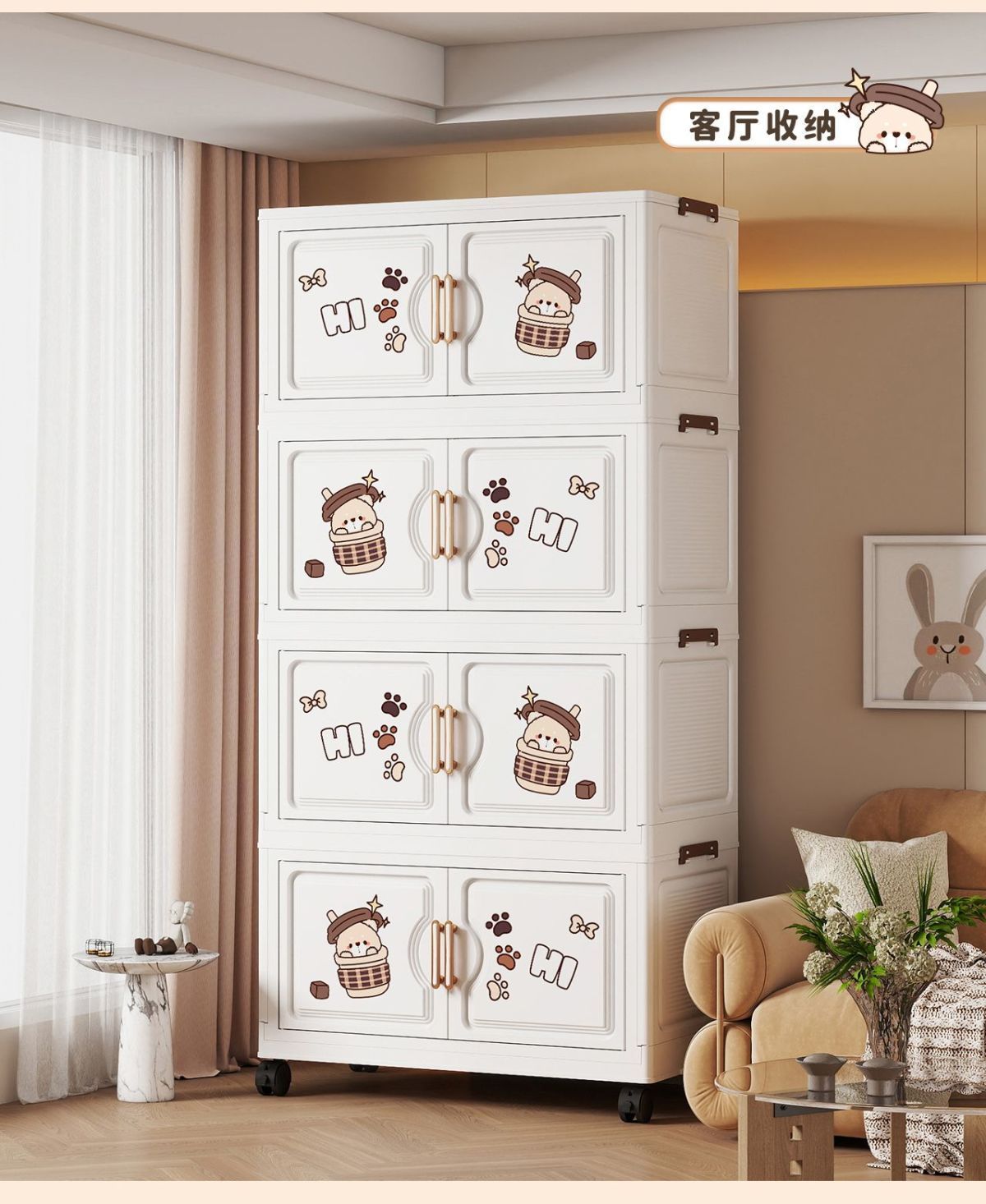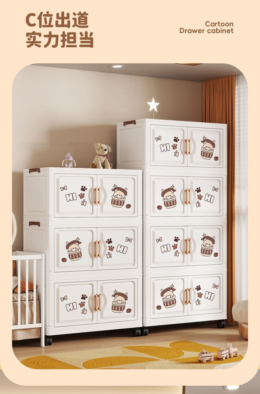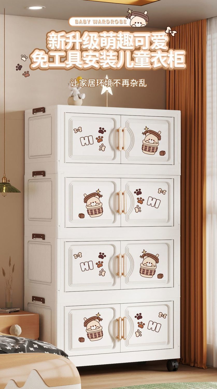 접이식 보관 캐비닛 만화 어린이 플라스틱 보관 캐비닛 옷장 홈 아기 간단한 작은 옷장 아기 정리스토어 가기