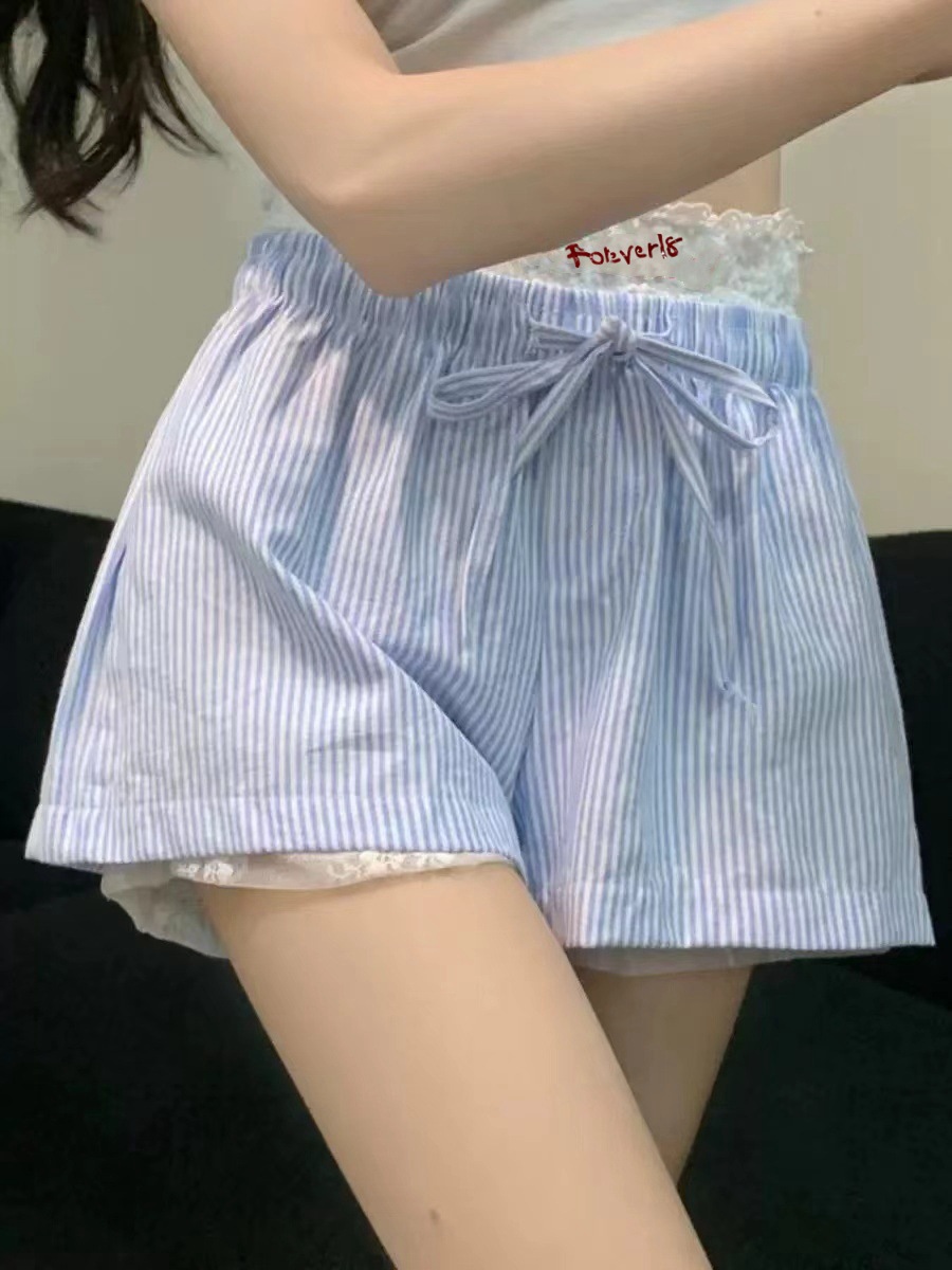 인스타그램 스타의 새로운 여름 스타일 틈새 디자인 레이스 스플리싱 바닥 레이어드 분위기 있는 스트라이프 반바지 트렌디스토어 가기