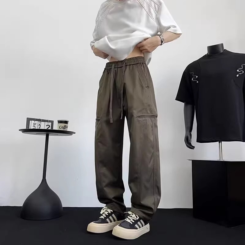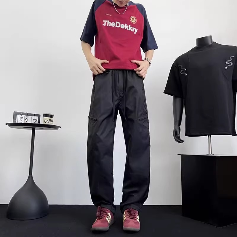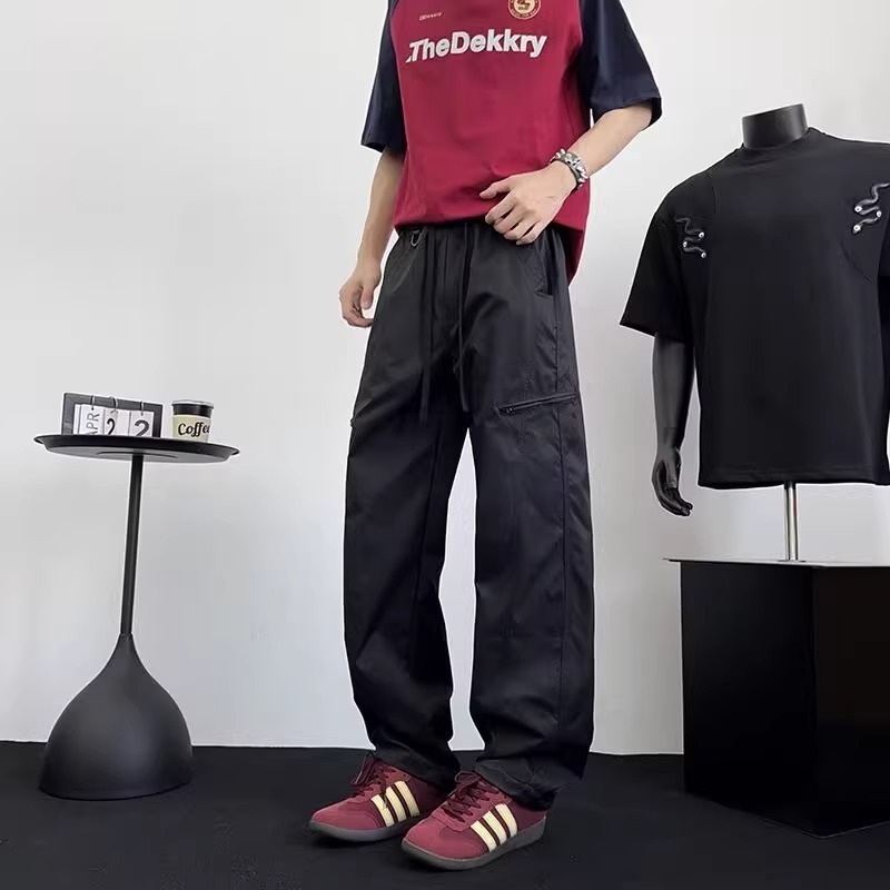 아메리칸 아이스 실크 워크웨어 남성용 루즈 스트레이트 여름 얇은 캐주얼 다용도 스포츠 속건성 긴 바지스토어 가기