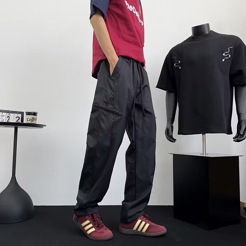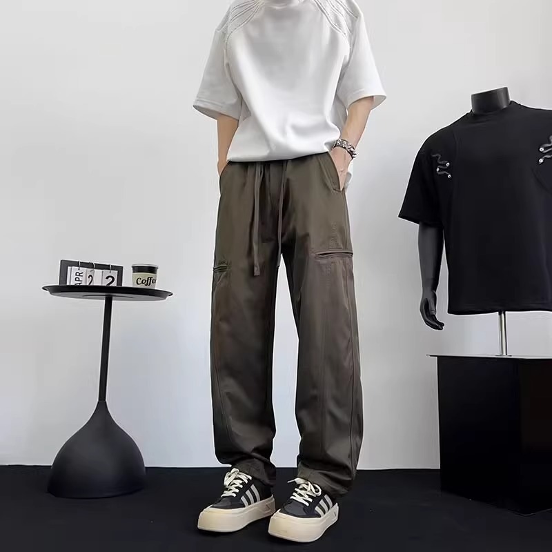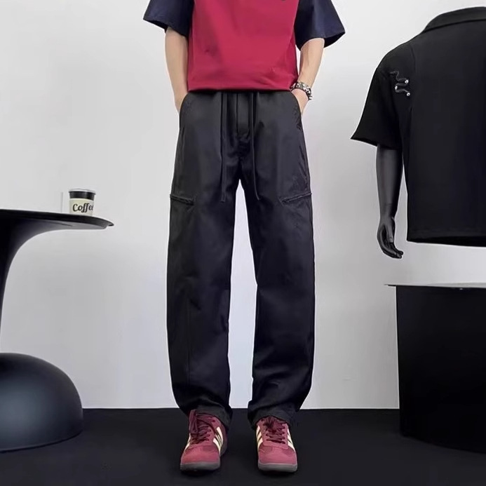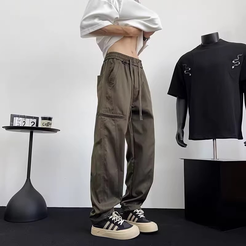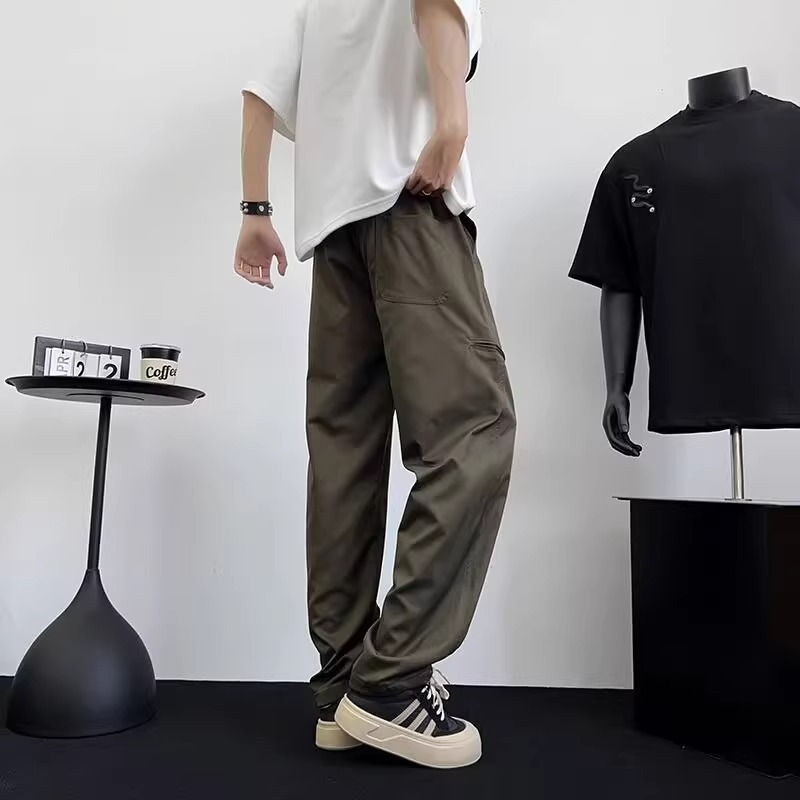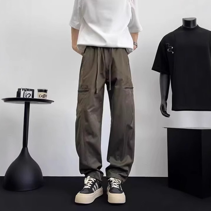 아메리칸 아이스 실크 워크웨어 남성용 루즈 스트레이트 여름 얇은 캐주얼 다용도 스포츠 속건성 긴 바지