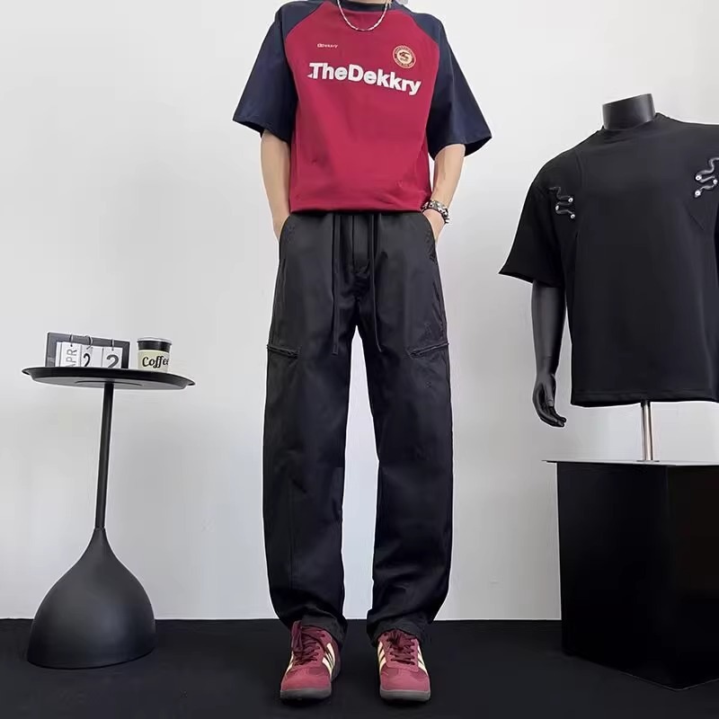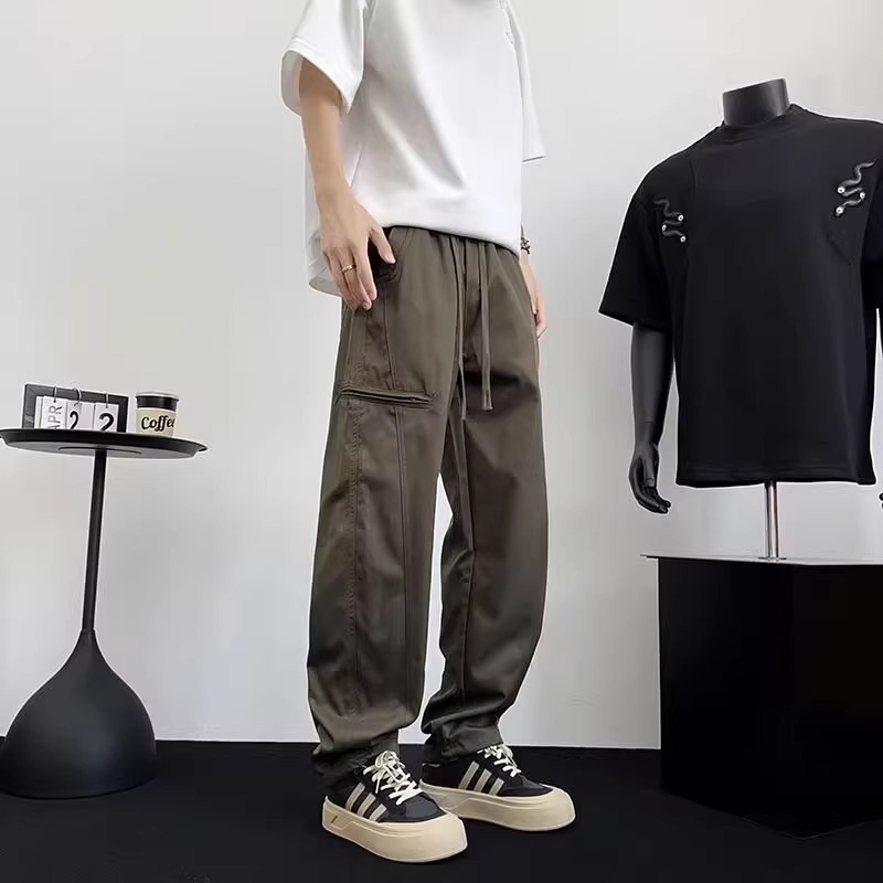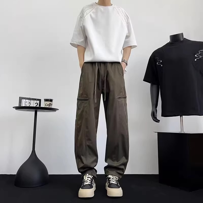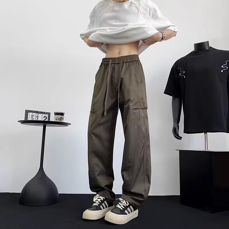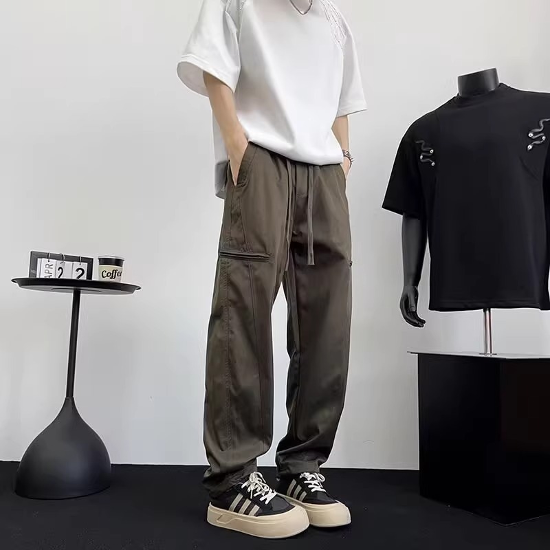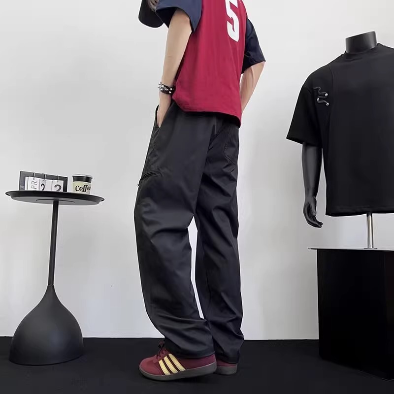 아메리칸 아이스 실크 워크웨어 남성용 루즈 스트레이트 여름 얇은 캐주얼 다용도 스포츠 속건성 긴 바지