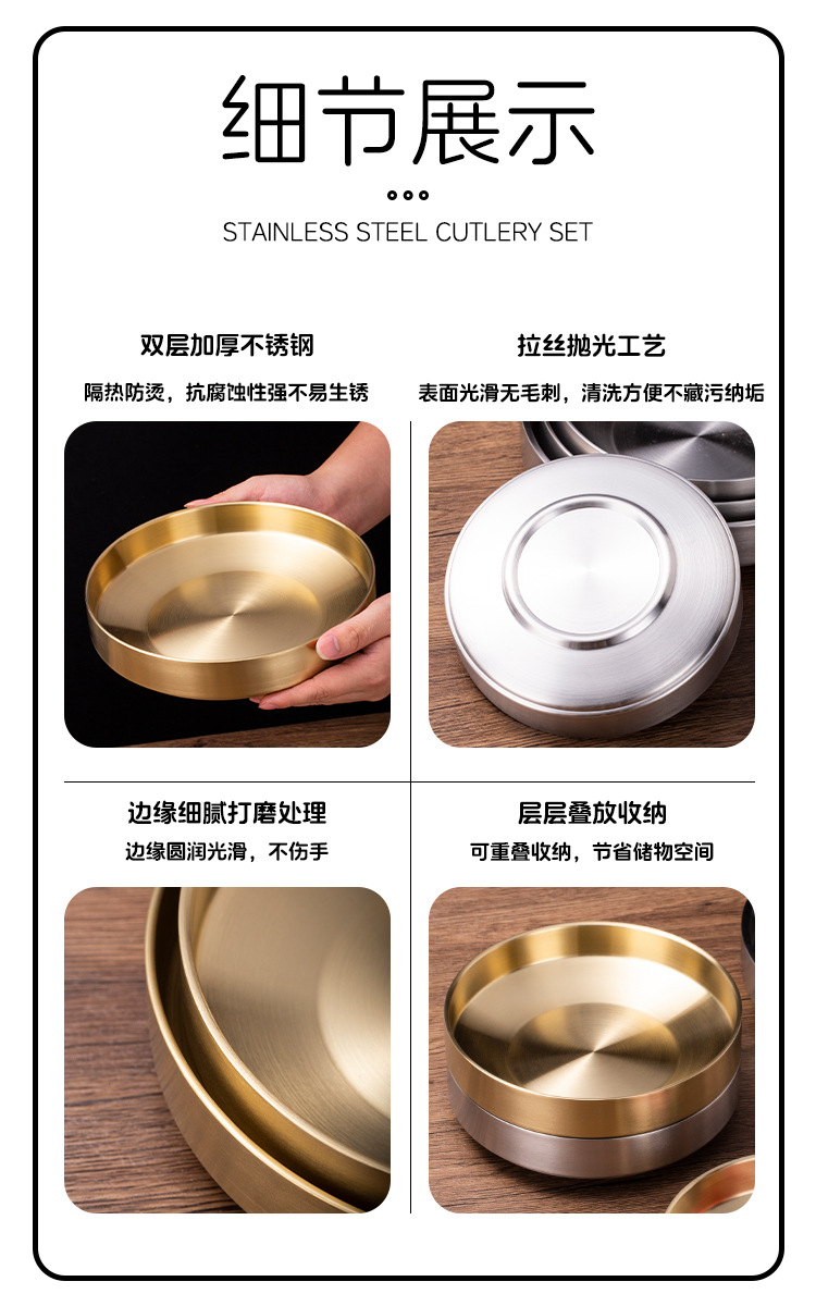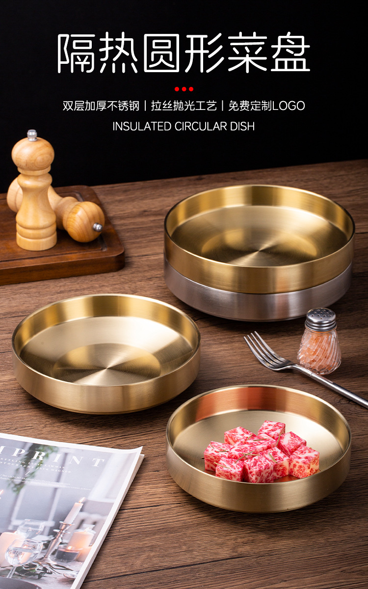 한국식 304 스테인리스 접시, 2단 접시 접시, 겹쳐지는 접시 접시, 고급 두꺼운 전골 바베큐 원형 접시