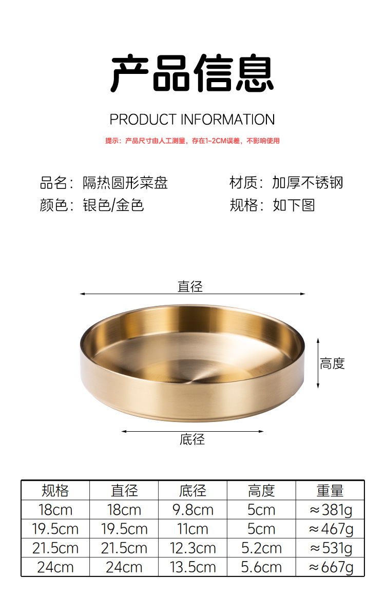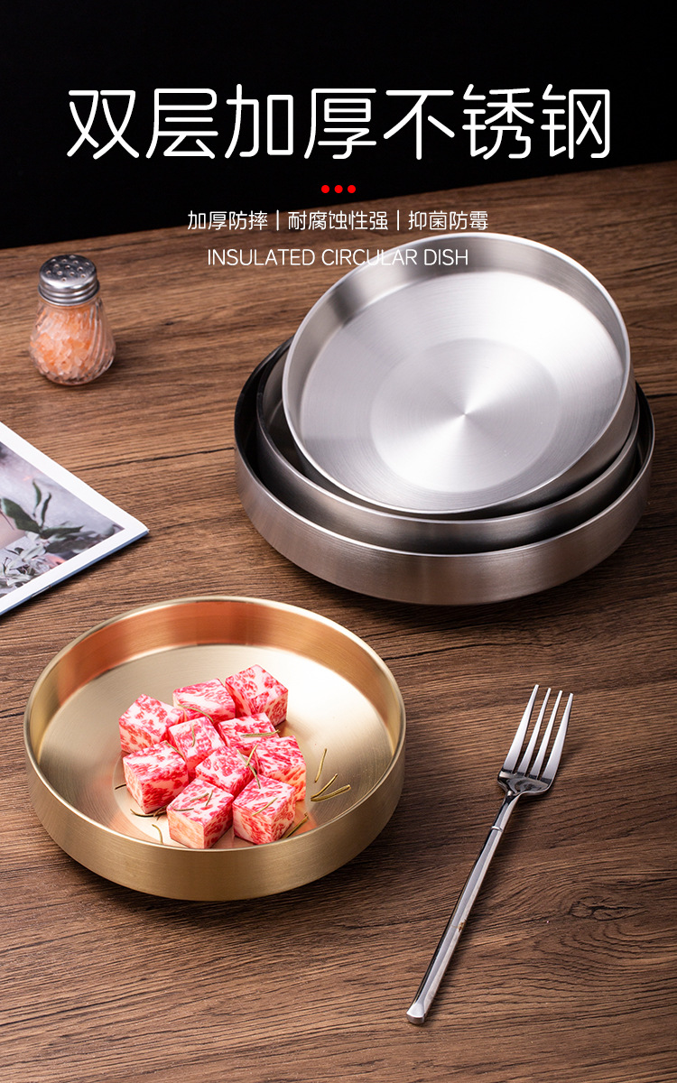 한국식 304 스테인리스 접시, 2단 접시 접시, 겹쳐지는 접시 접시, 고급 두꺼운 전골 바베큐 원형 접시스토어 가기