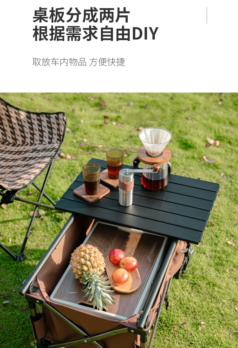 Beishanlang 야외 캠핑카 트롤리 캠핑카 캠핑 피크닉 나들이 푸시카 접이식 테이블 트레일러스토어 가기
