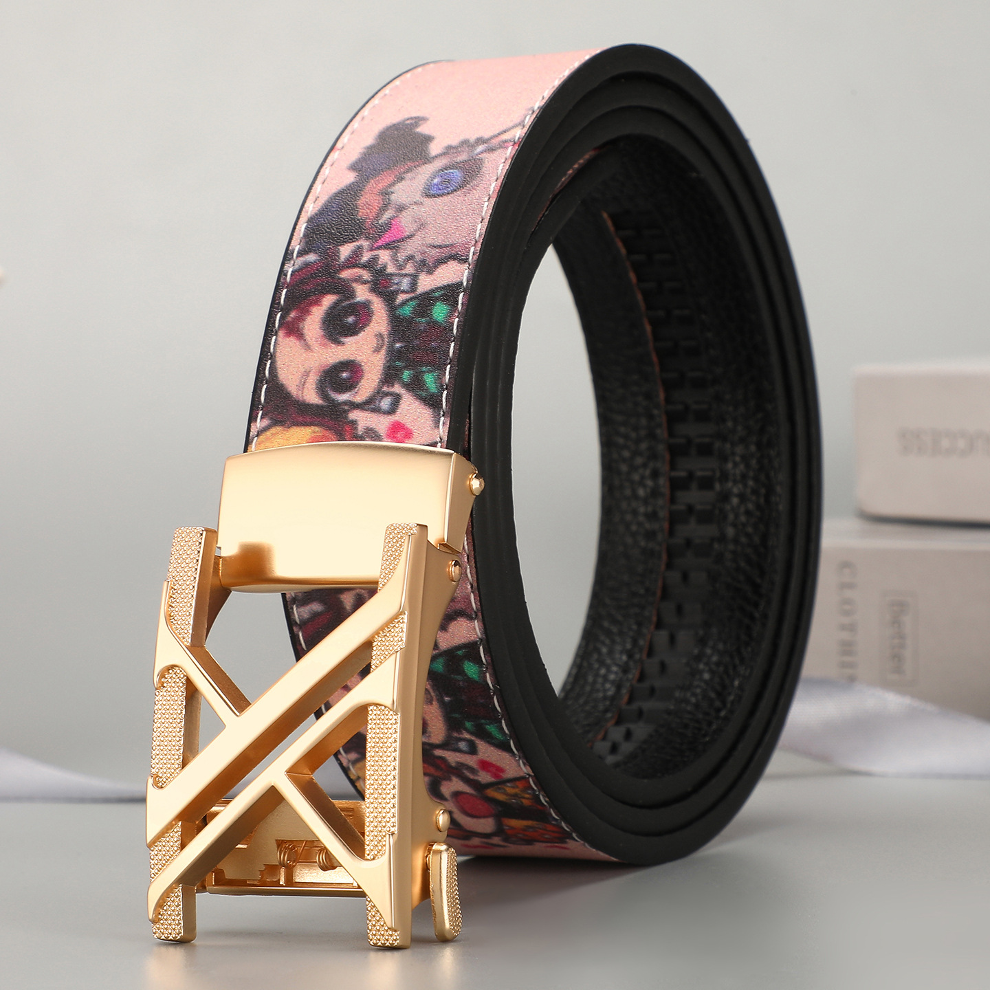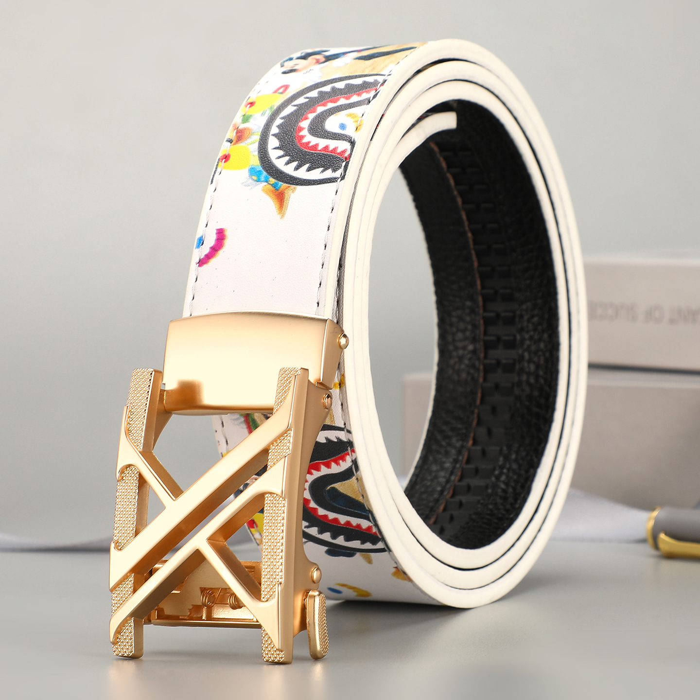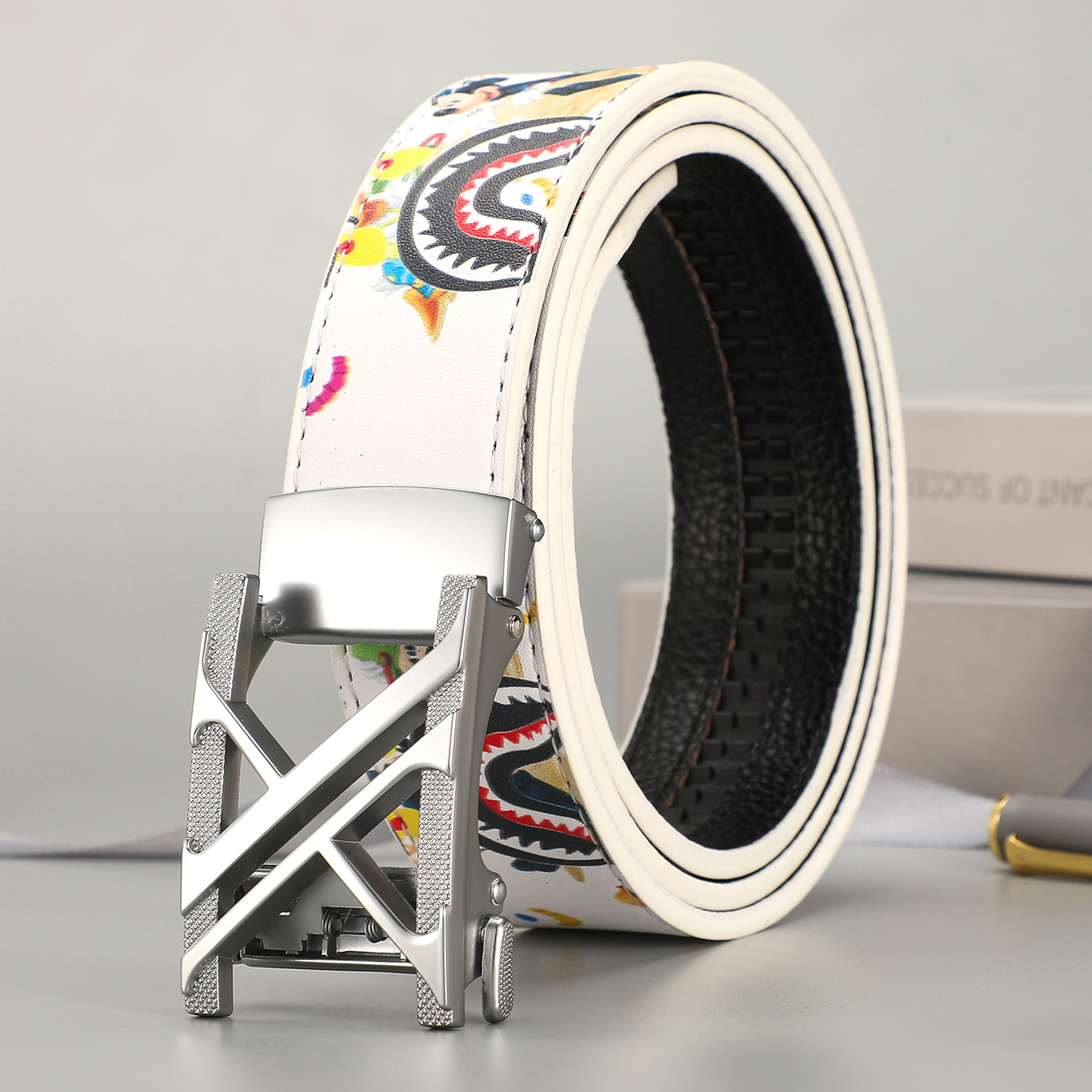 새로운 벨트 패션 남자 벨트 PU 비즈니스 트렌드 캐주얼 다목적 편지 낙서 드롭 배송 도매