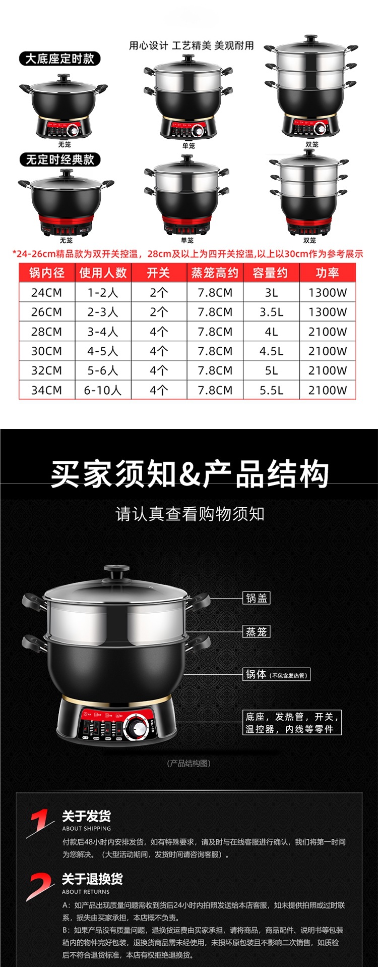 전기조리기구, 다기능 가정용 전기냄비, 전기냄비, 볶음통합형 플러그인 전기냄비, 전골냄비스토어 가기