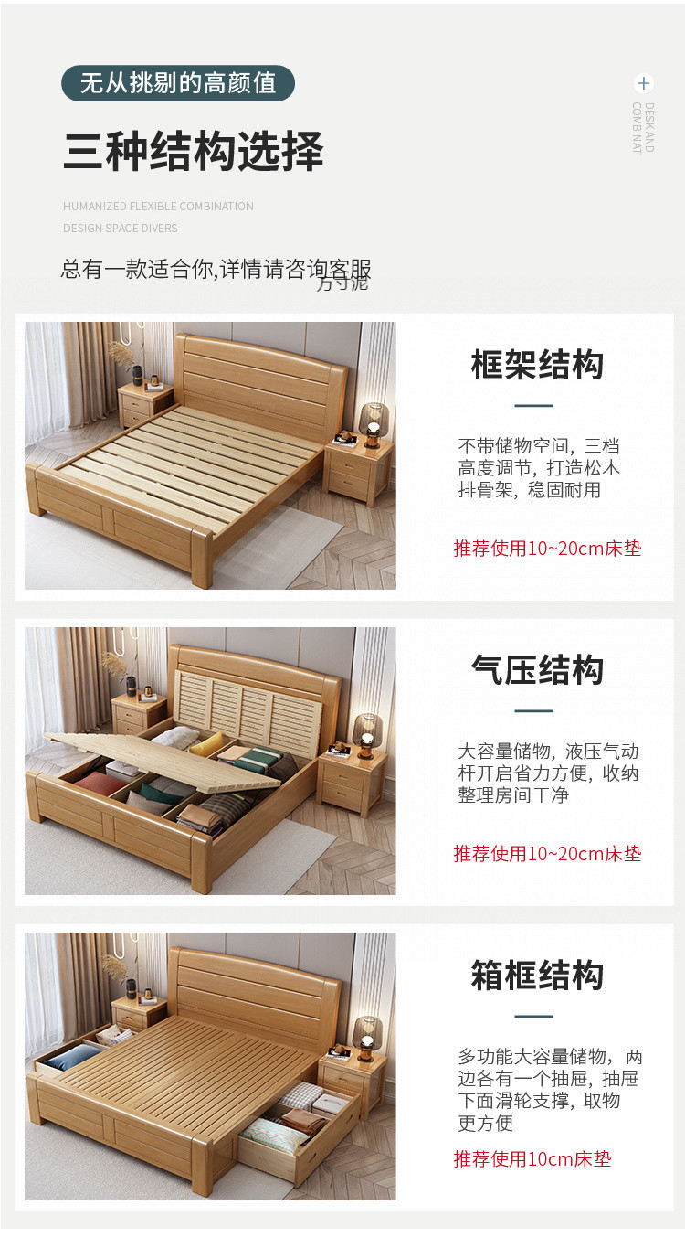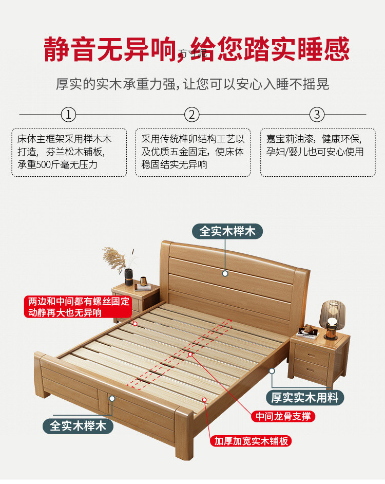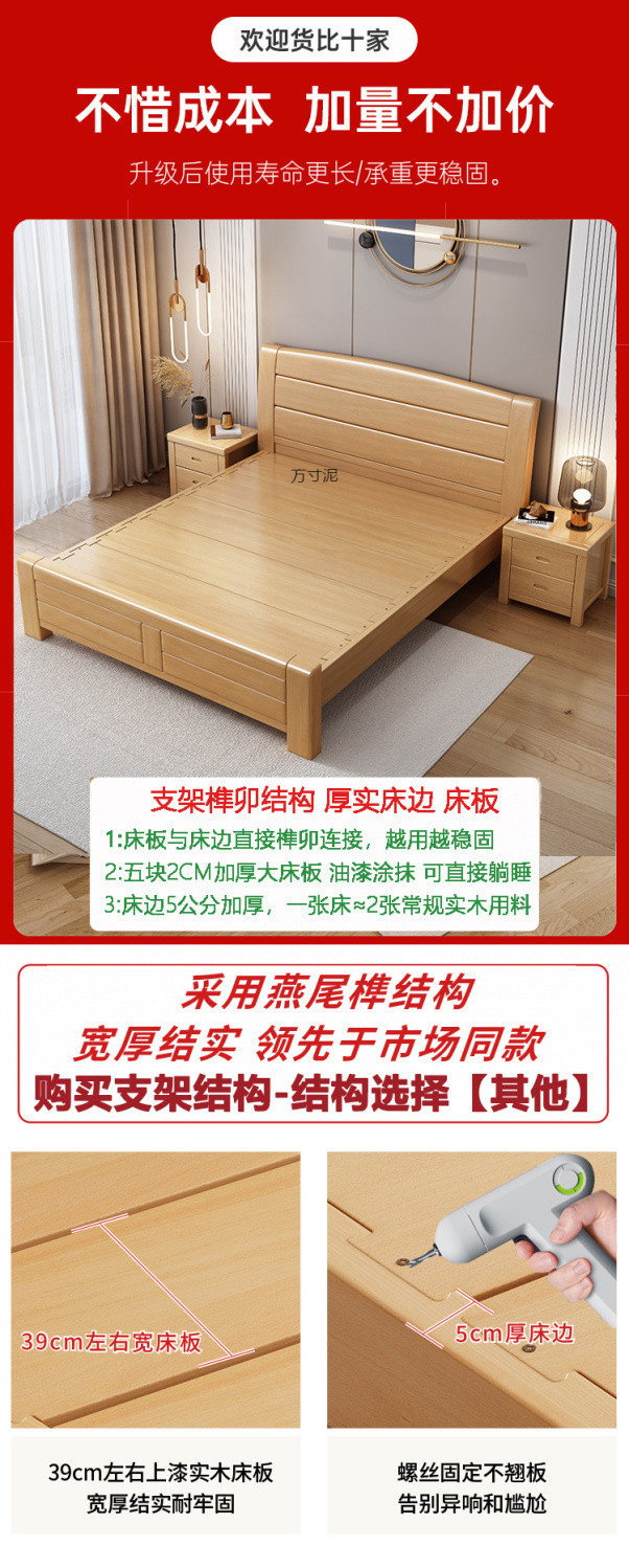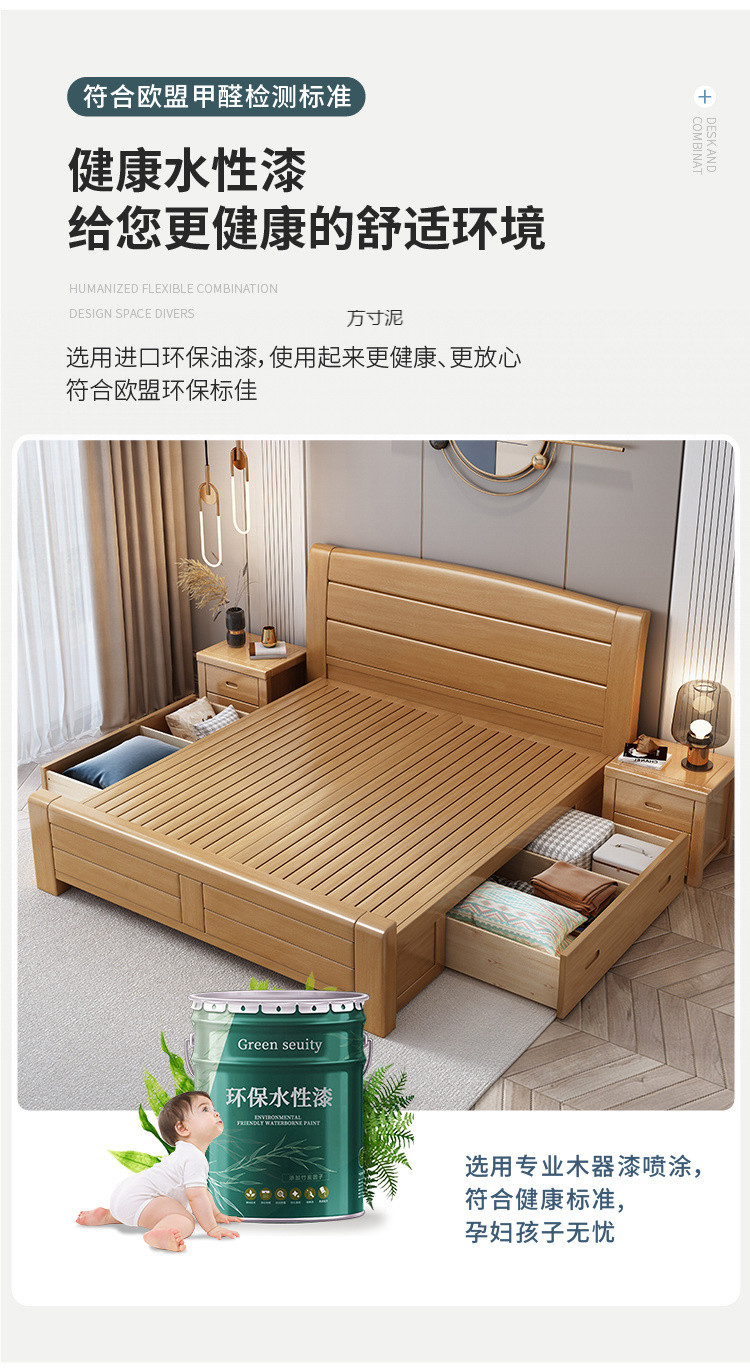 너도밤나무 원목 침대 1.95m 싱글 및 더블 침대 1.35 공장 직매 1.2m 어린이 침대 원목 마스터 침대