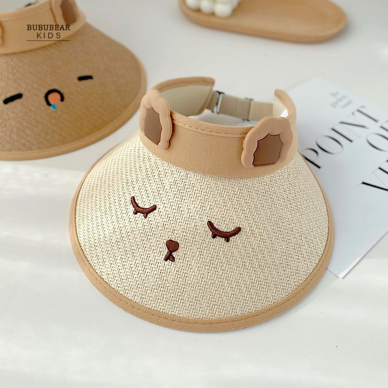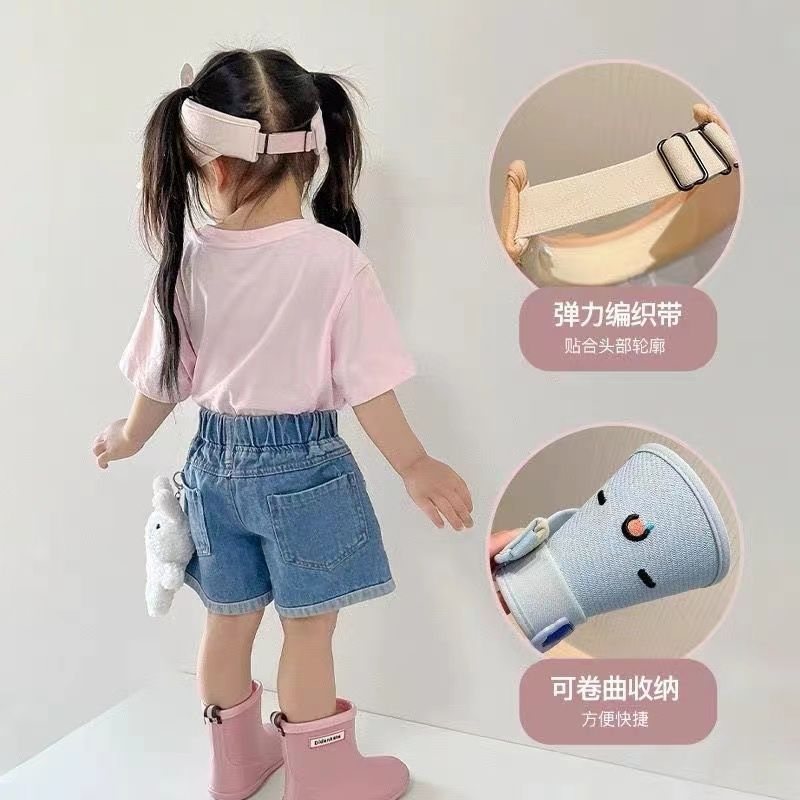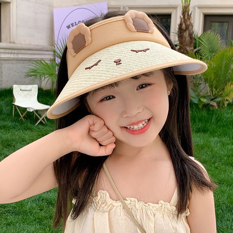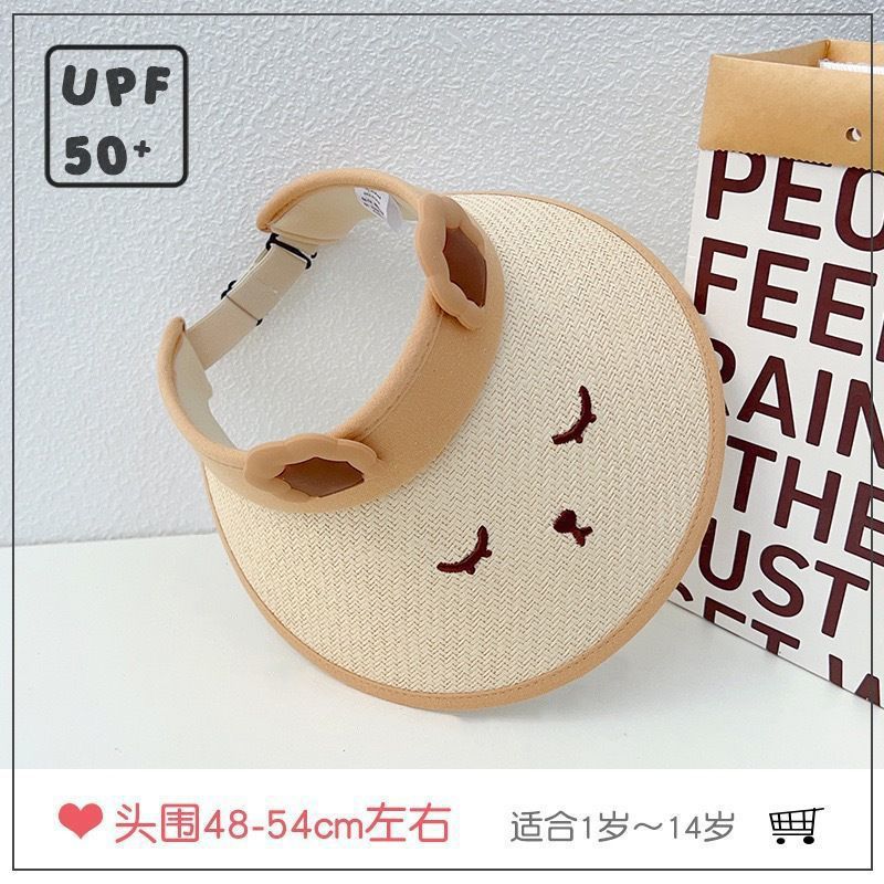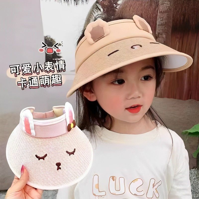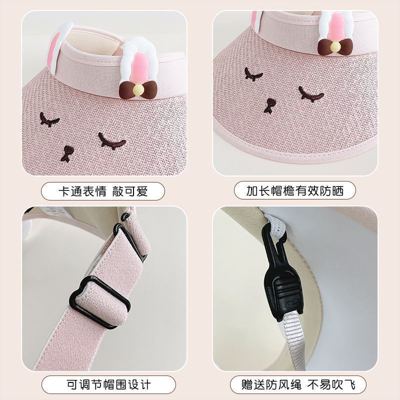 여름 얇은 빈 모자 귀여운 토끼 귀 어린이 태양 보호 모자 아기 밀짚 자수 패턴 태양 보호 모자스토어 가기