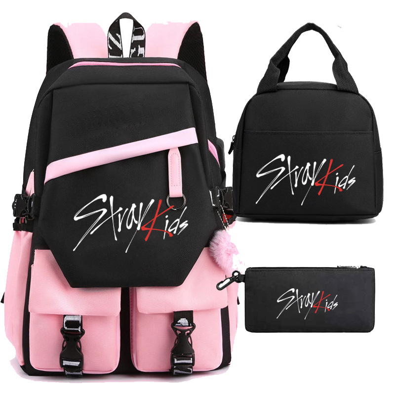 새로운 Stray Kids 조합 주변기기 같은 스타일 배낭 점심 가방 연필 가방 3피스 학생 가방