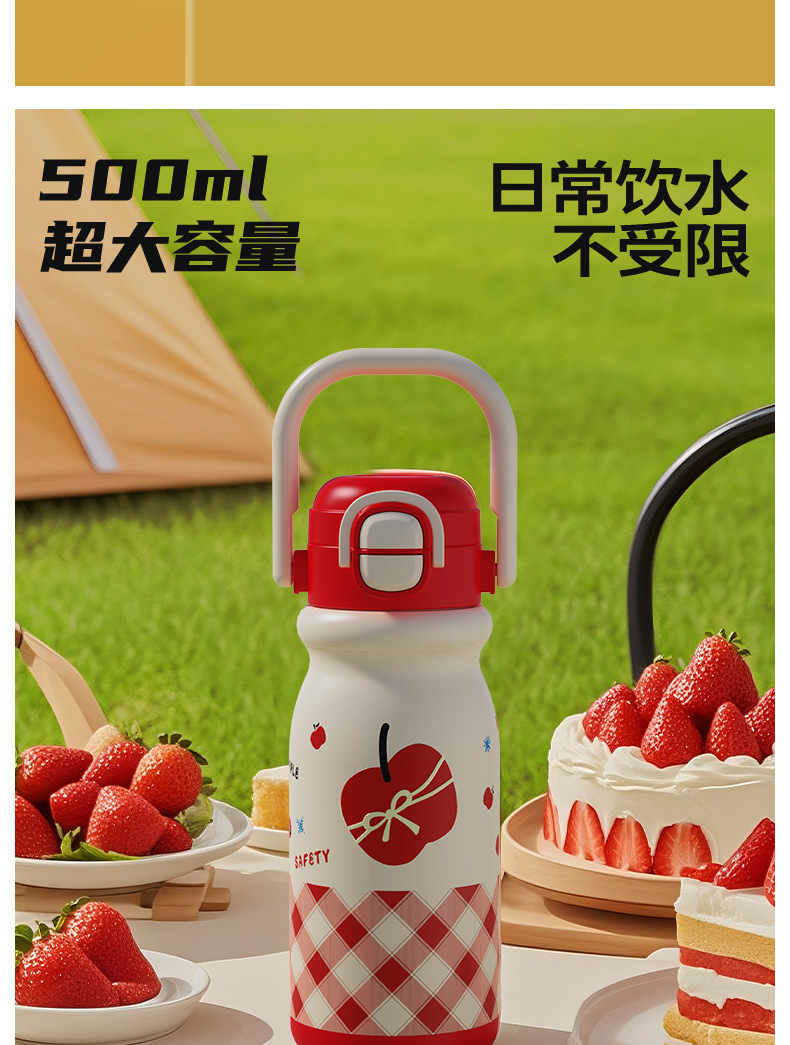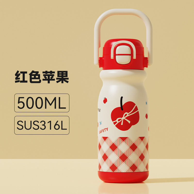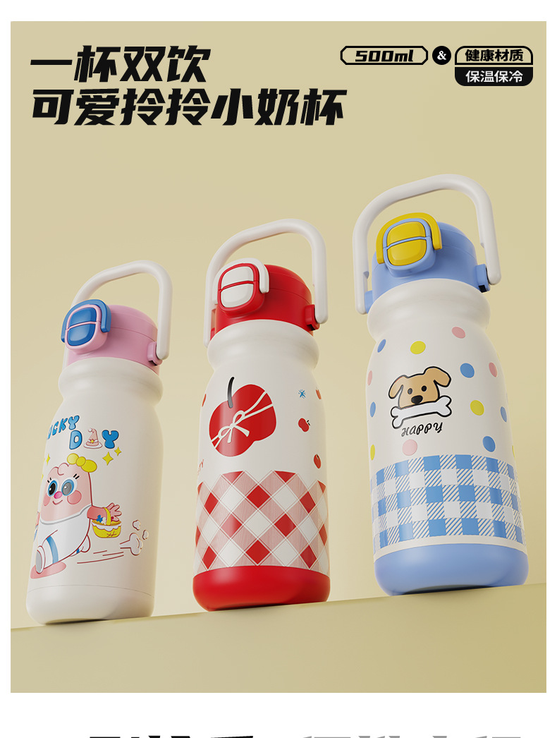 고급스러운 만화 주전자, 손잡이가 있는 야외 휴대용 보온병 컵, 이중 마시는 빨대 컵, 어린이 학교 마시는 컵