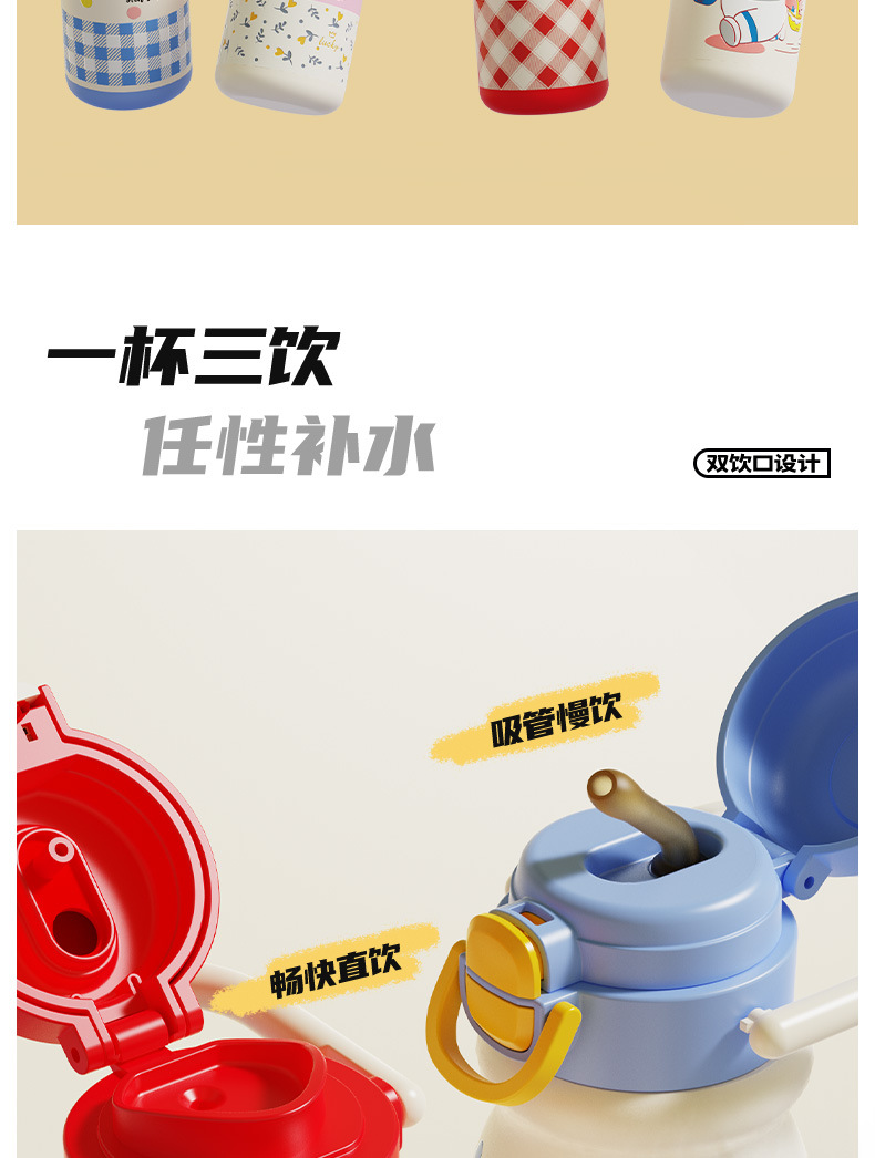 고급스러운 만화 주전자, 손잡이가 있는 야외 휴대용 보온병 컵, 이중 마시는 빨대 컵, 어린이 학교 마시는 컵스토어 가기