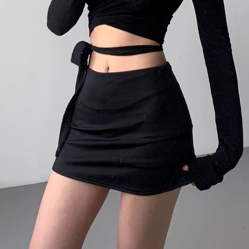 핫걸 미니스커트, 여성 노출방지 로우웨이스트, 달콤하고 매콤한 여름 블랙 힙커버 스커트, 스트레치 요가반바지, 미니스커트