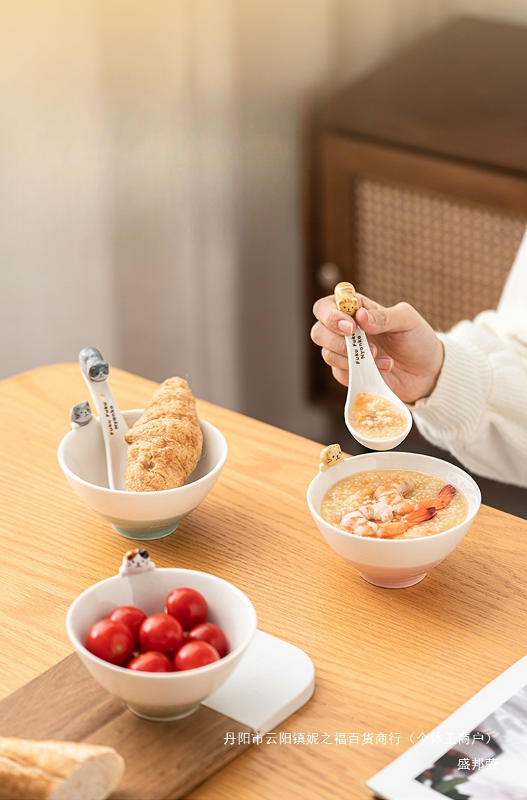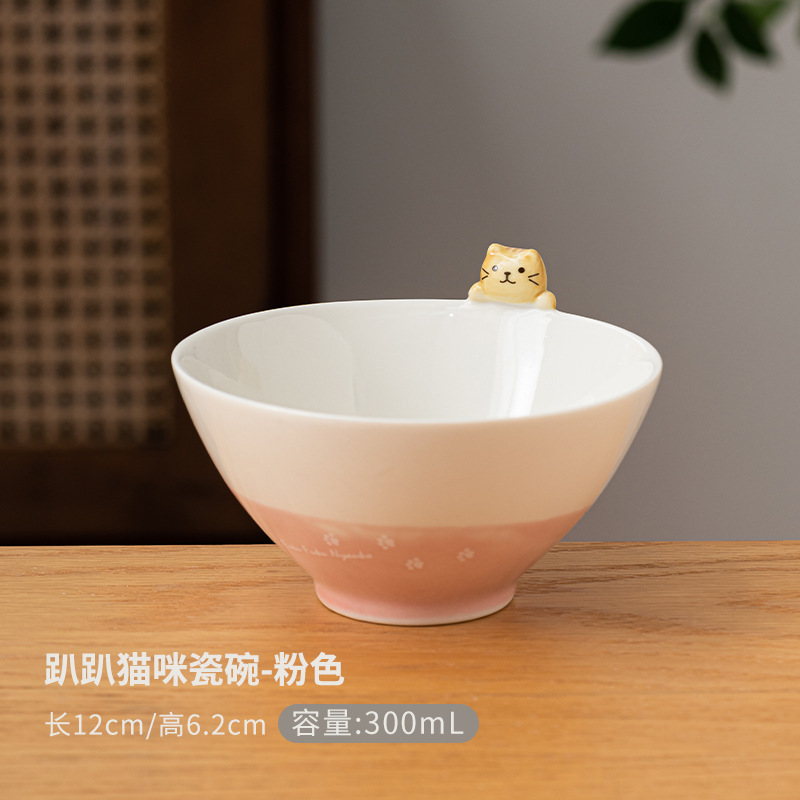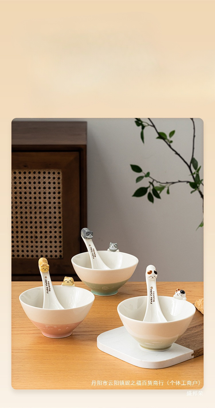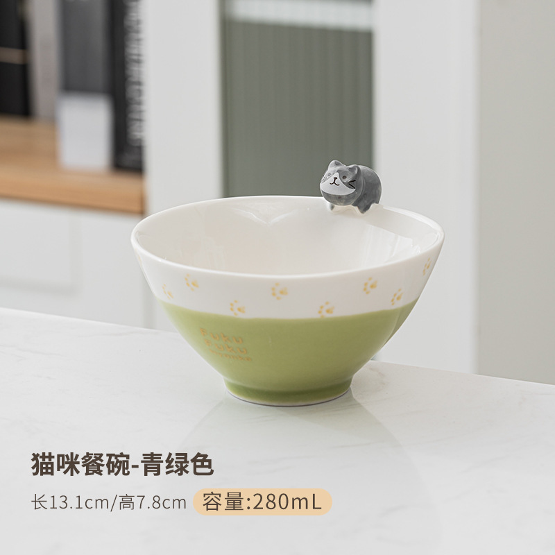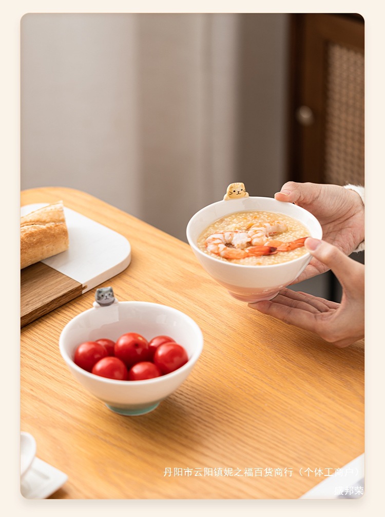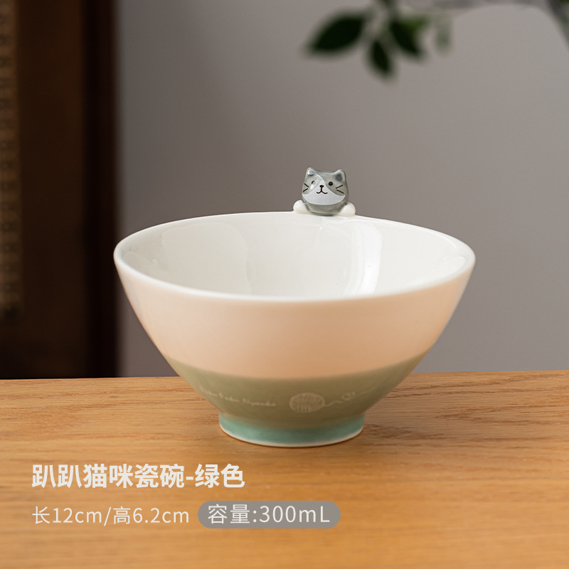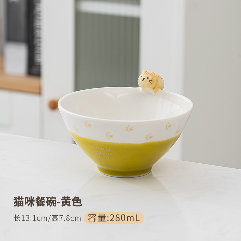 유약 색 고양이 만화 그릇, 귀여운 입체 세라믹 그릇, 먹는 그릇, 가정용 어린이 밥 그릇, 고양이 작은 그릇스토어 가기