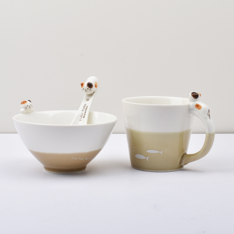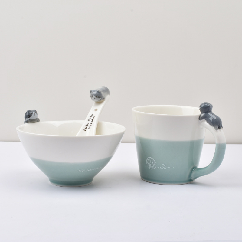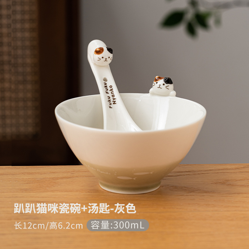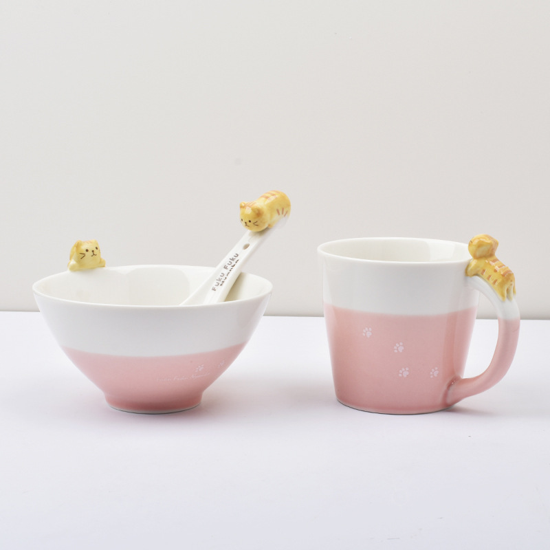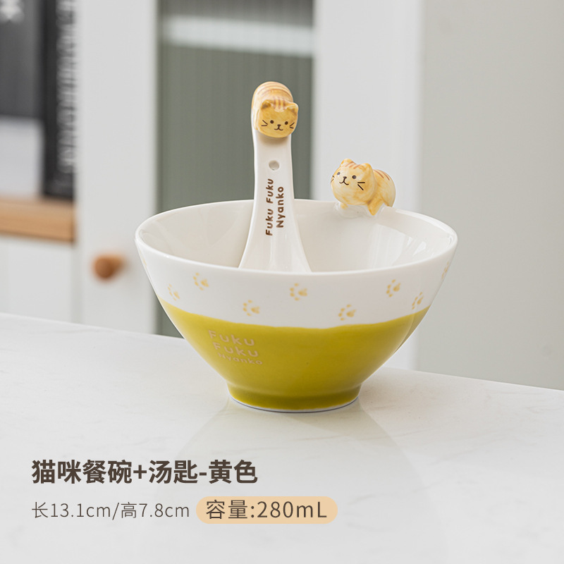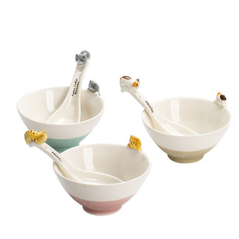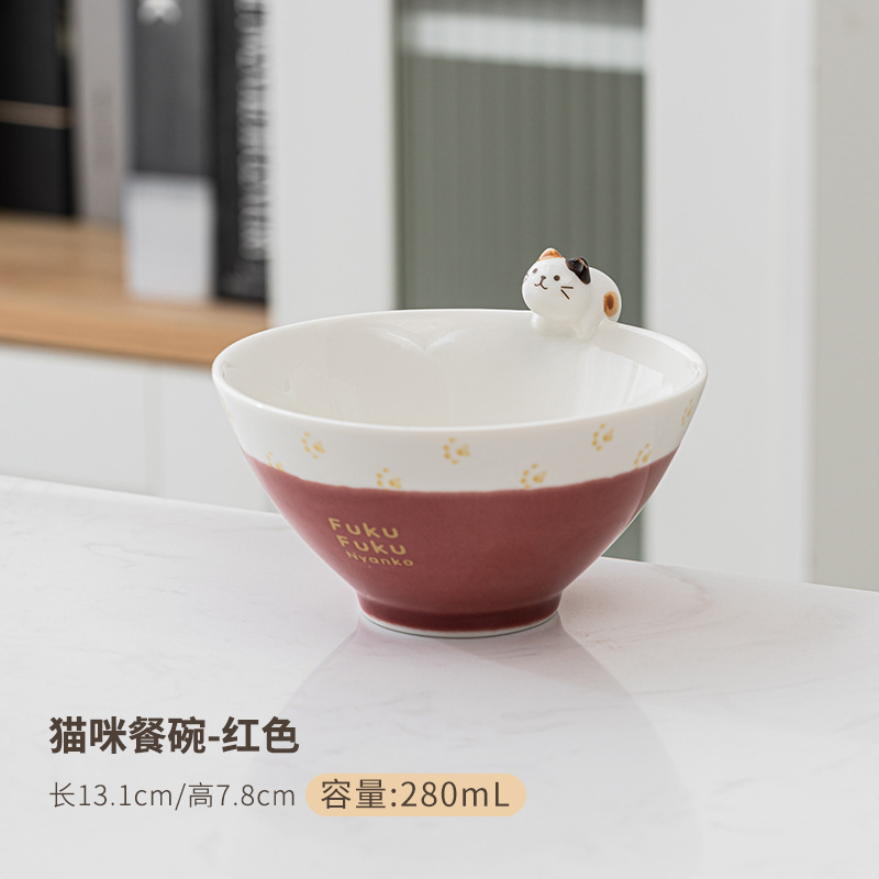 유약 색 고양이 만화 그릇, 귀여운 입체 세라믹 그릇, 먹는 그릇, 가정용 어린이 밥 그릇, 고양이 작은 그릇스토어 가기