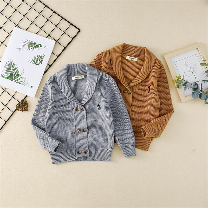 아동용 스웨터 새로운 니트 다목적 복고풍 한국 스타일 캐주얼 재킷 자수 두꺼운 모직 카디건