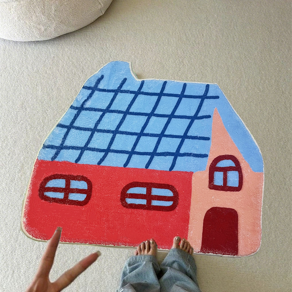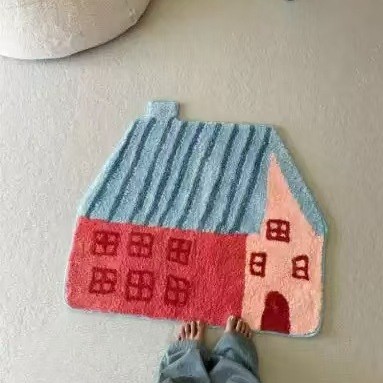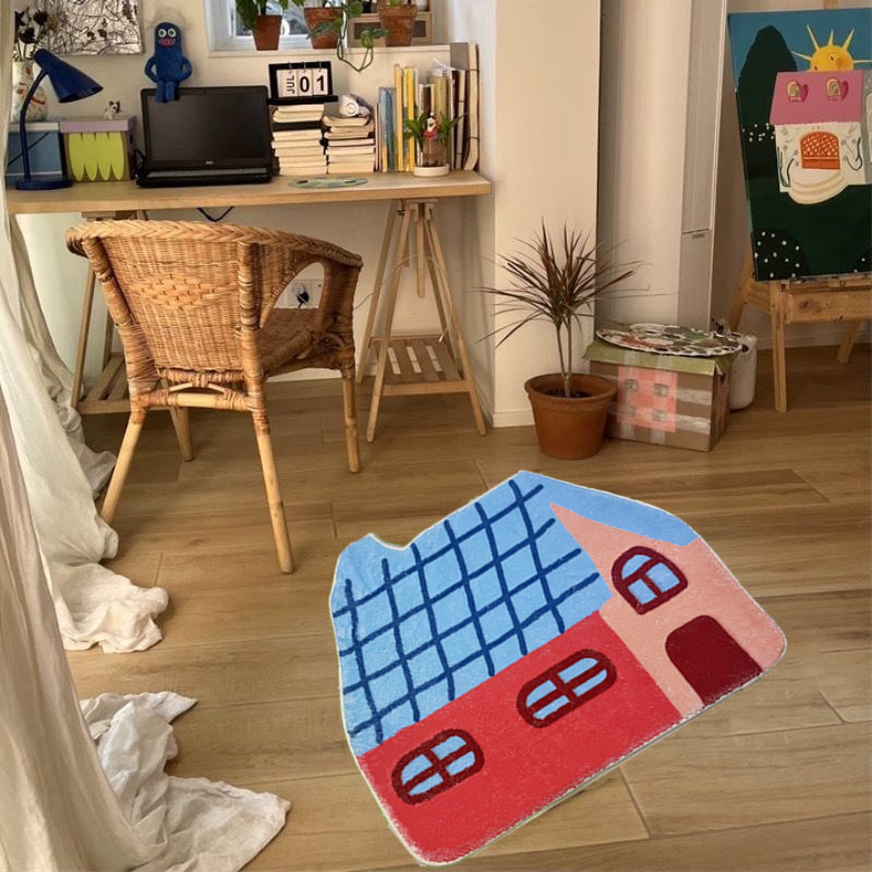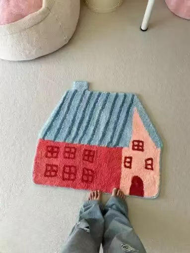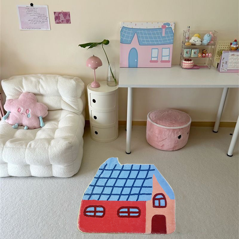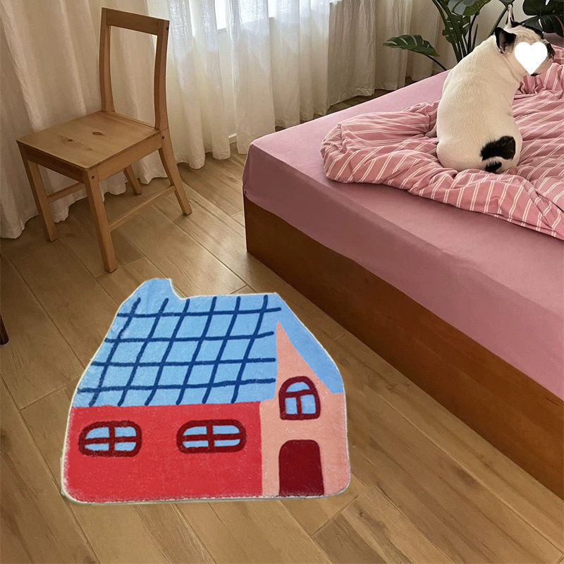 귀여운 작은 집 카펫, 침실 침대 옆 담요, 거실 담요, 플러시 바닥 매트, 어린이 방 모조 양털 짧은 벨벳 매트