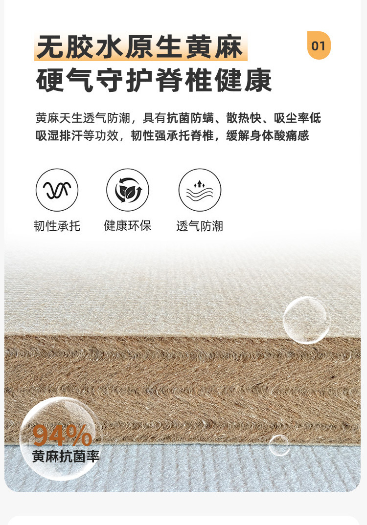 • 피부친화적인 린넨원단 두께 10cm (5cm S타입 황마 + 2cm 라텍스)