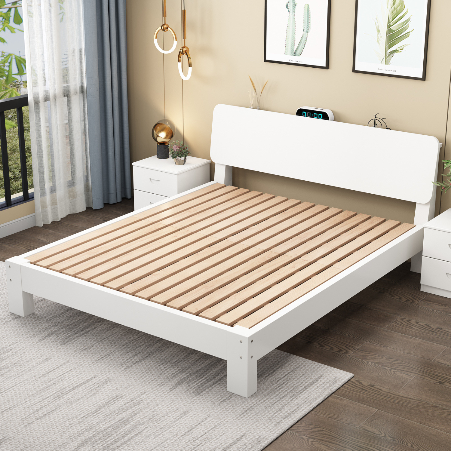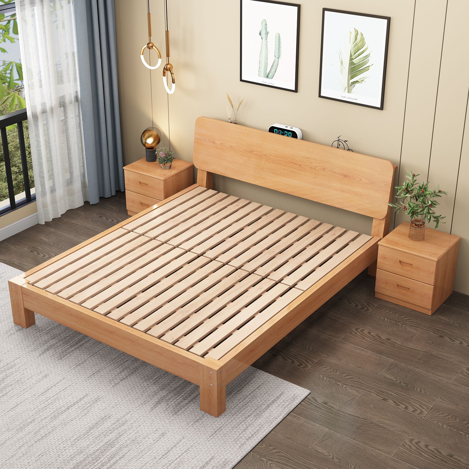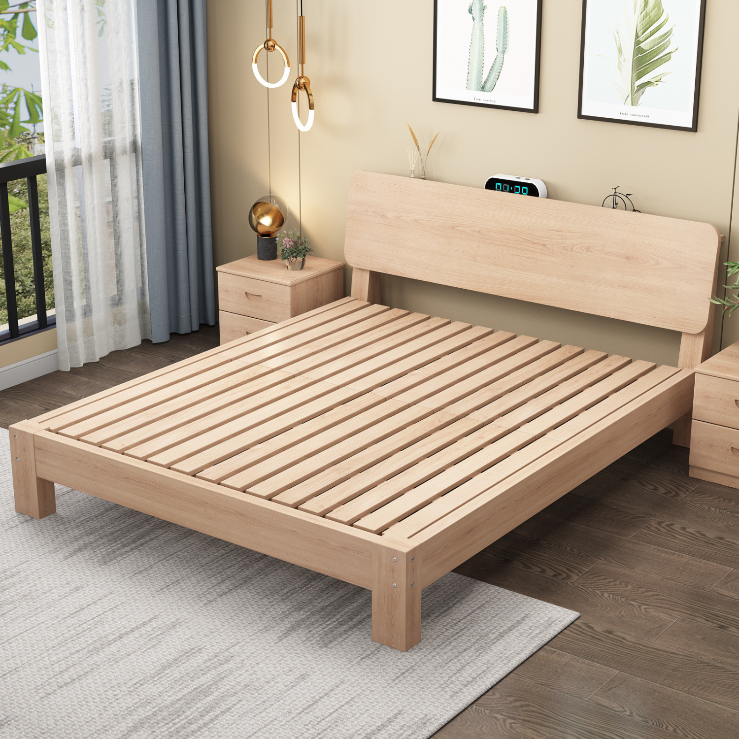 모든 너도밤나무 원목 침대 모던 심플 1.8 싱글 침대 1.5m 홈 북유럽 다다미 심플 침대 프레임