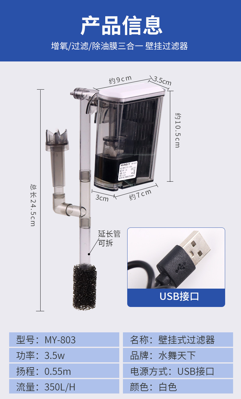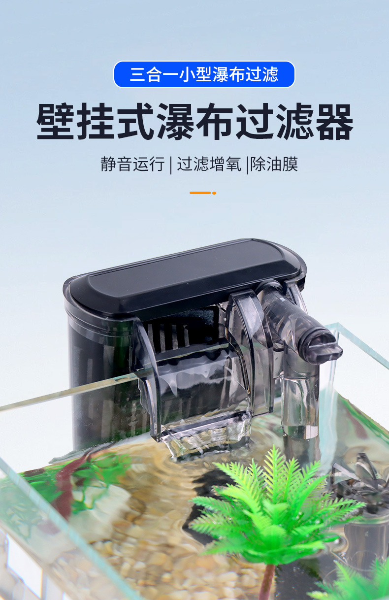 수조 필터 필터링 순환 워터 펌프 산소 발생기 소형 수조 벽걸이 형 소형 3-in-1 폭포 필터