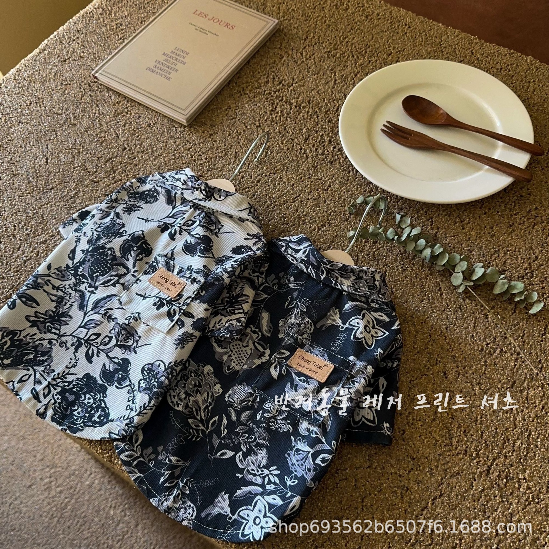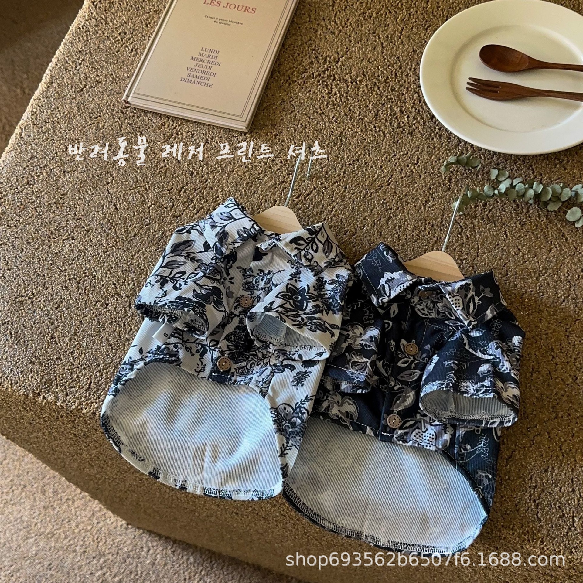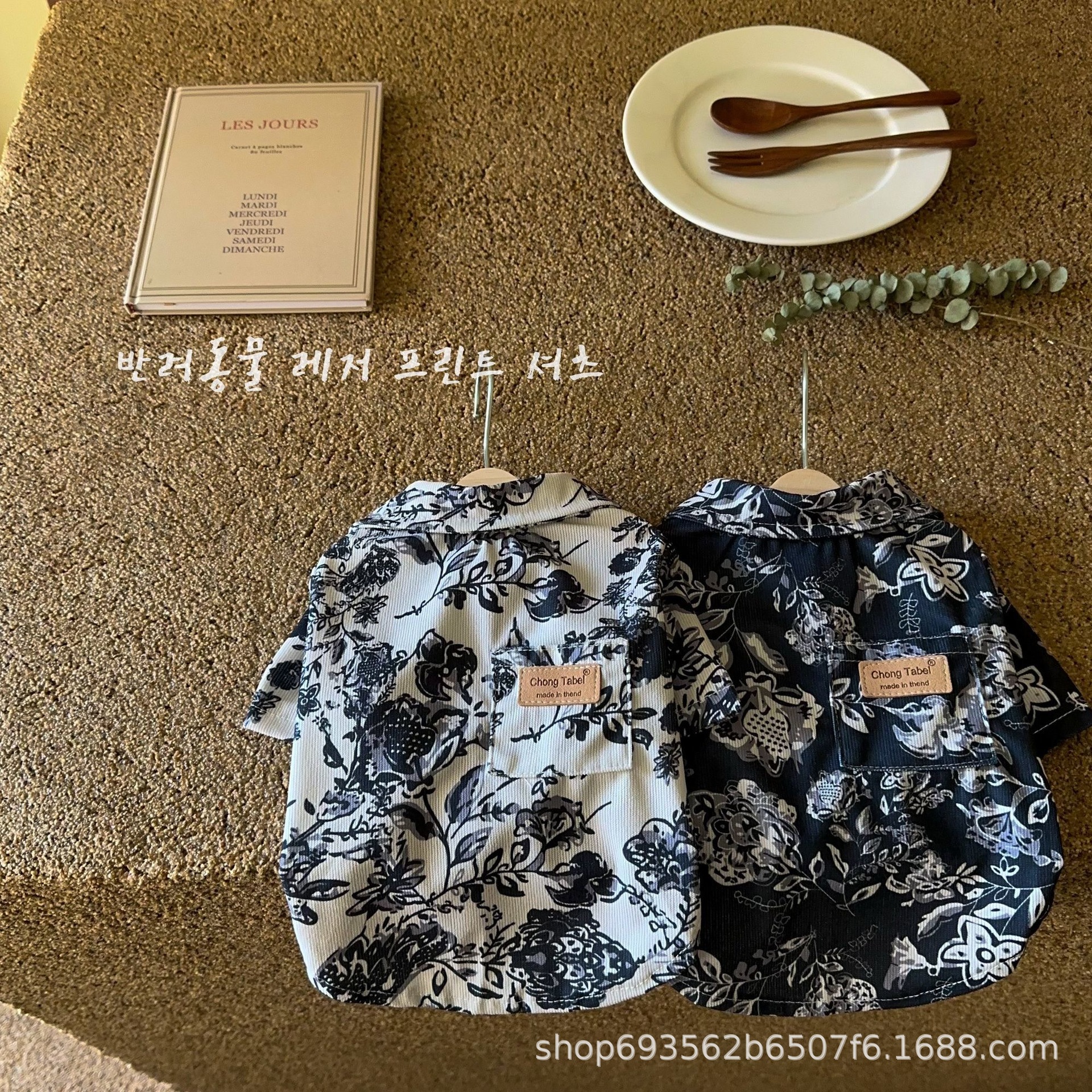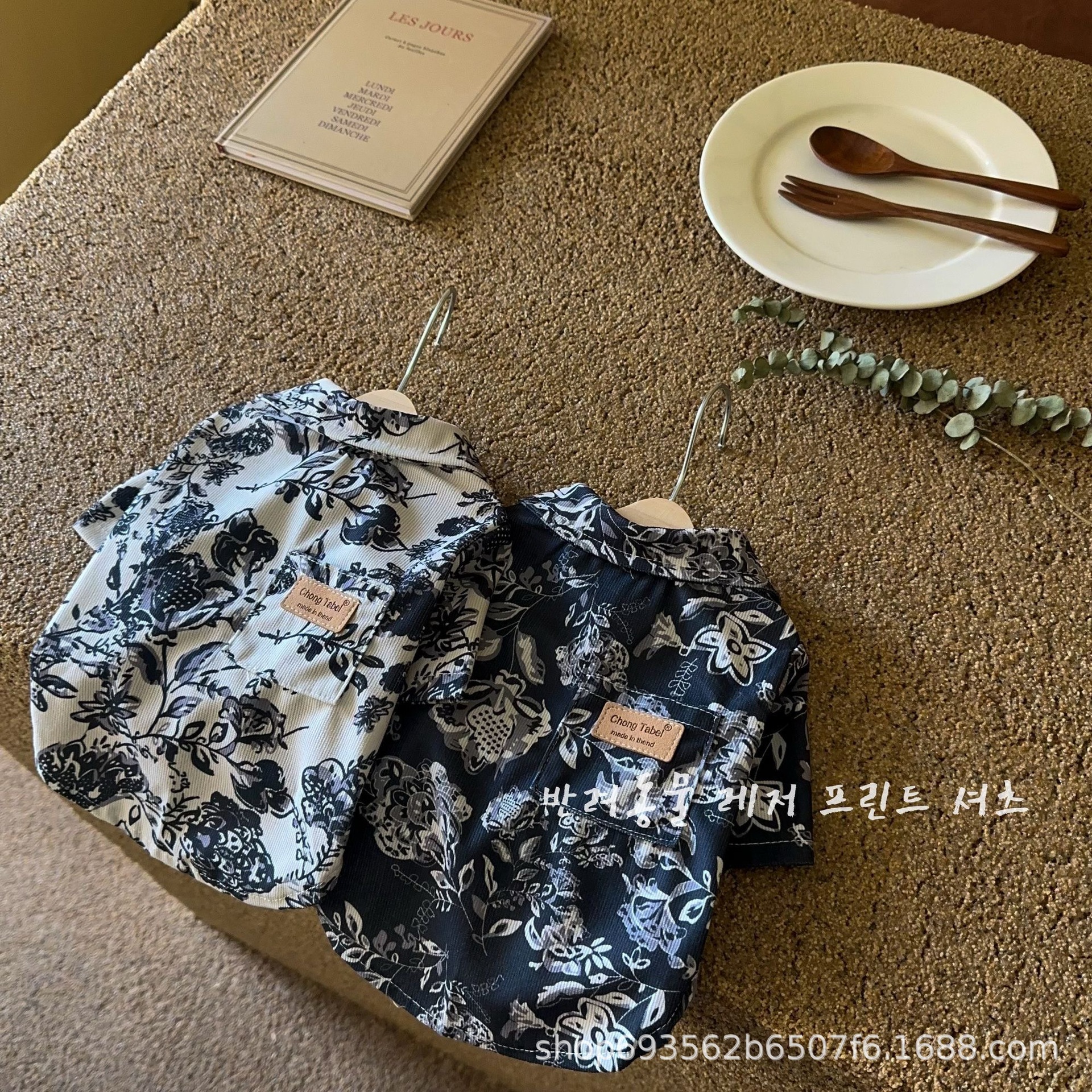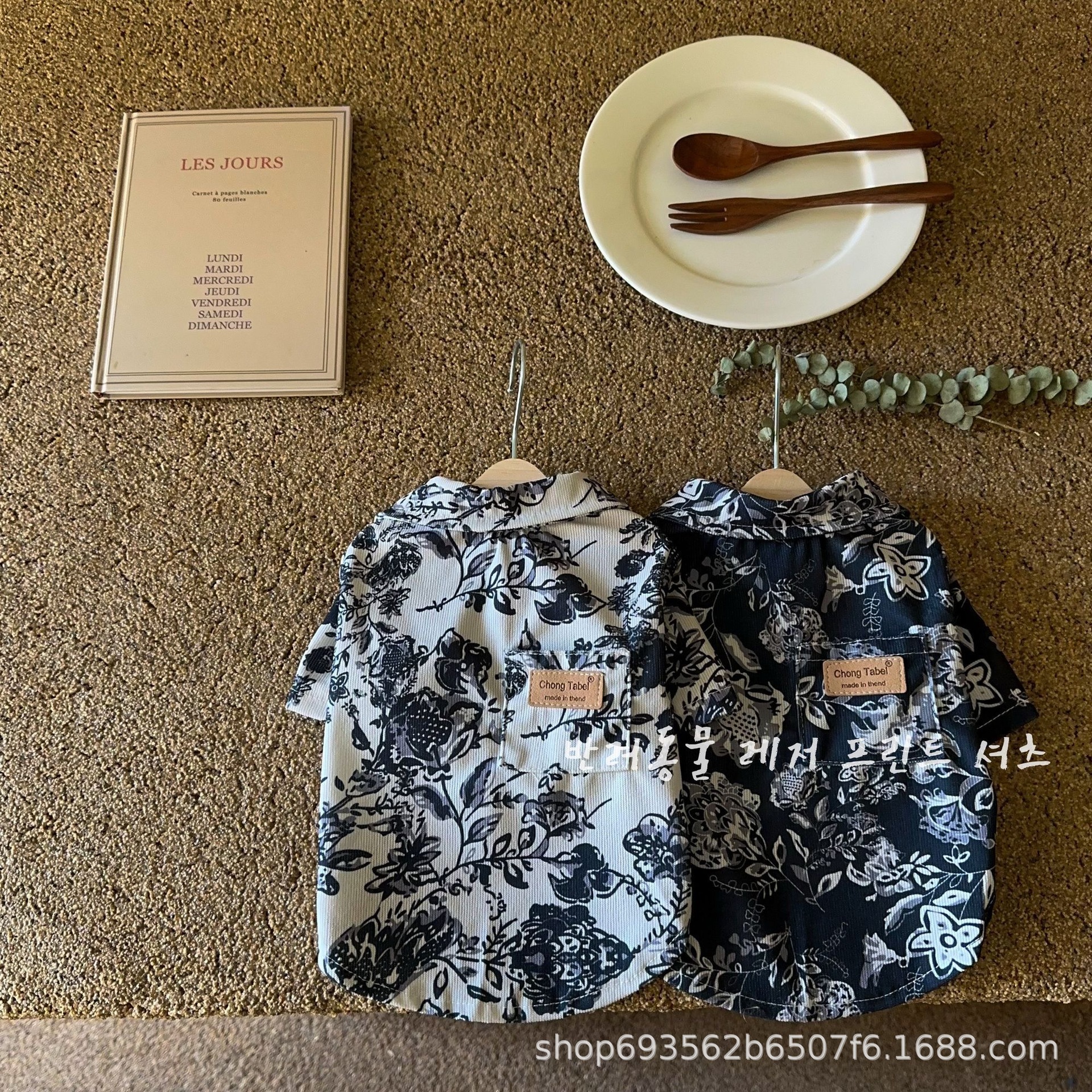 개 옷 여름 얇은 복고풍 꽃 셔츠 슈나우저 비숑 코기 테디 프렌치 불독 유니버설 애완 동물 옷스토어 가기