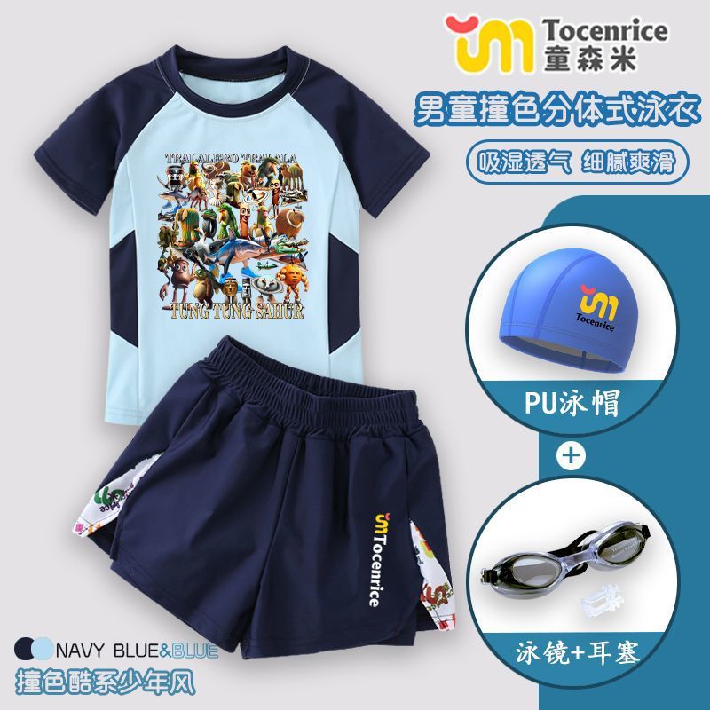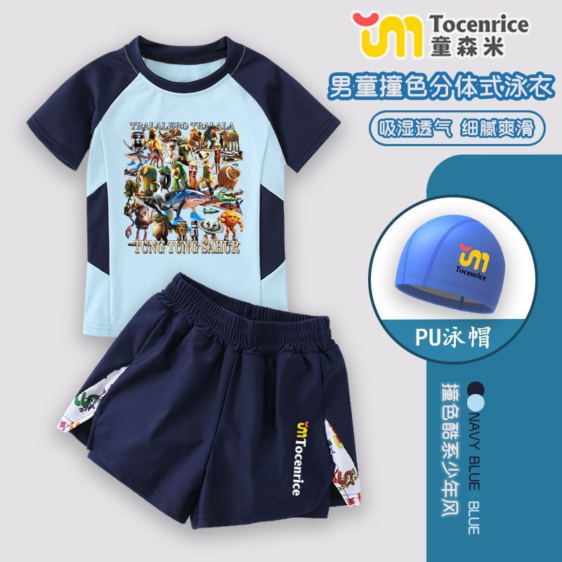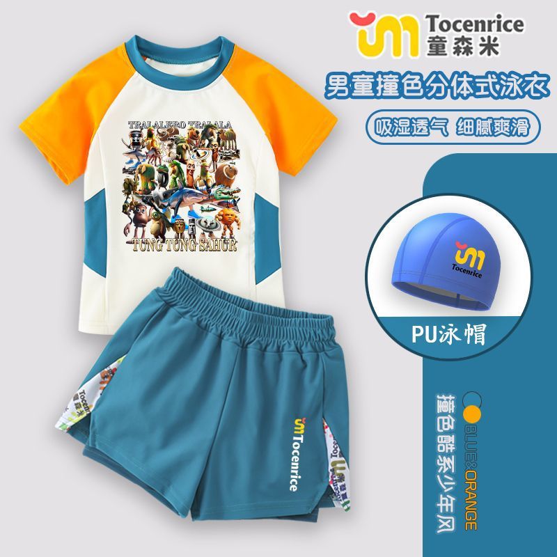 American Mountain and Sea Classics Tongtongge 나무 막대기 어린이 의류 유행 브랜드 주변 어린이 수영복 스플릿 소년 수영복 세트 7