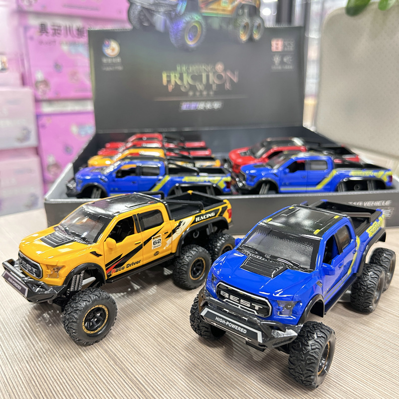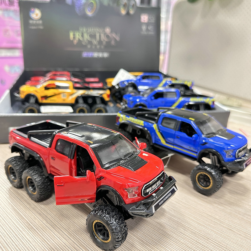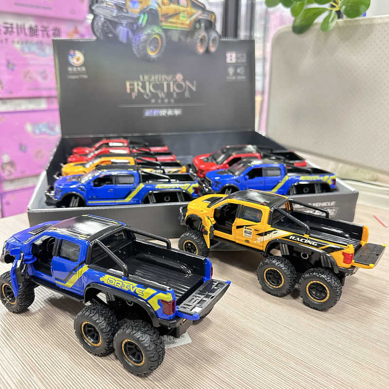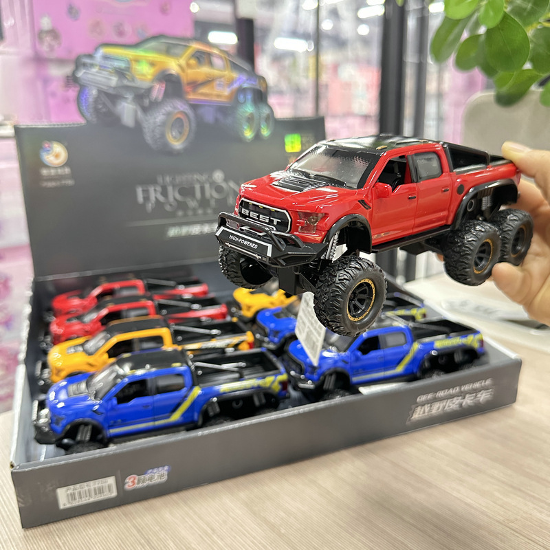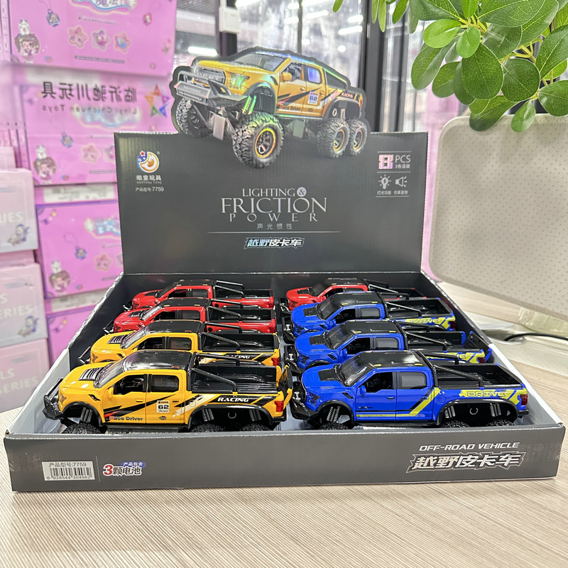 8개의 시뮬레이션된 음향 효과, 소리 및 빛 오프로드 픽업 트럭 도어 개방형 관성 자동차 소년 및 어린이 장난감 교육용 야시장 스톨스토어 가기