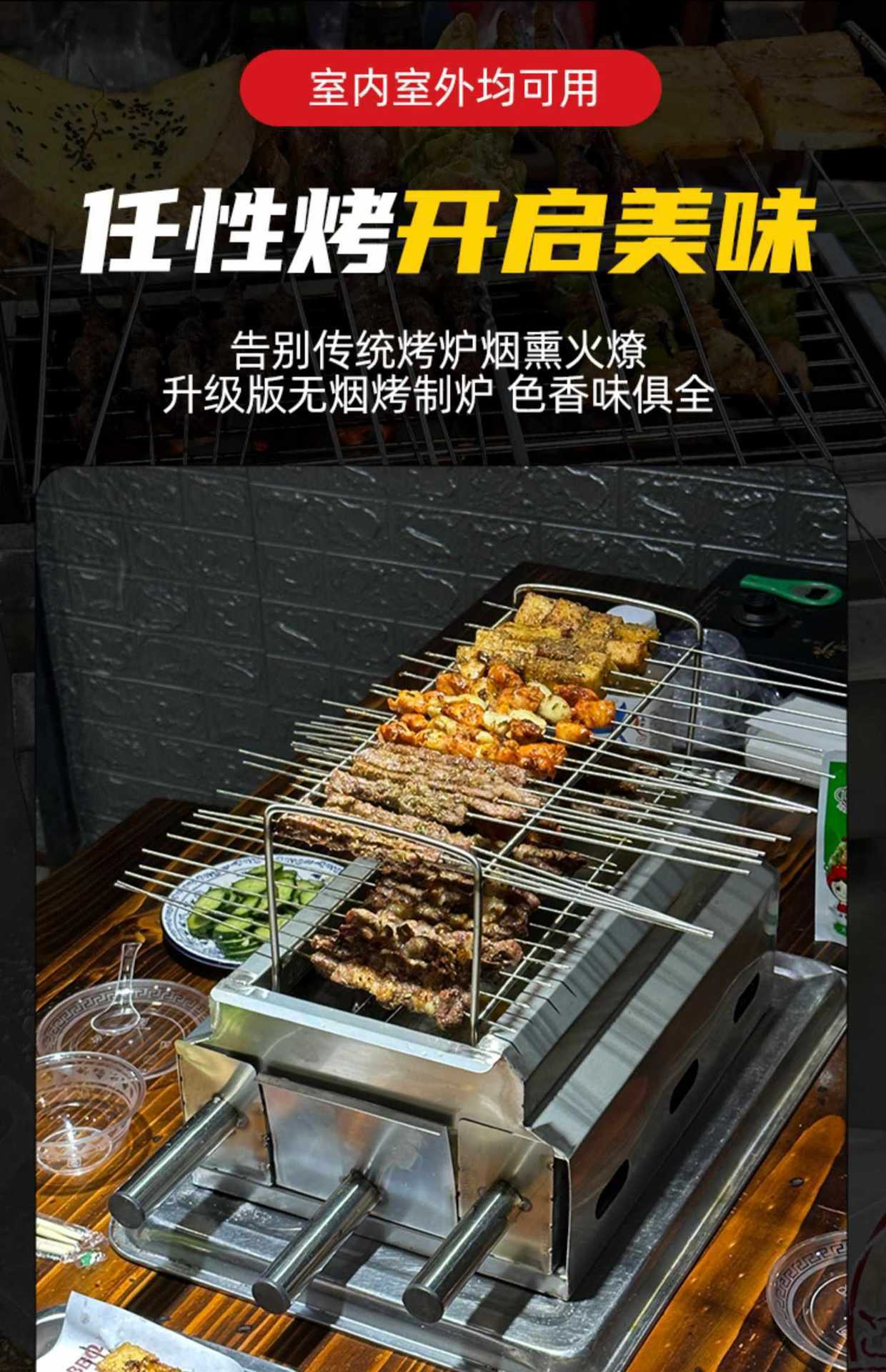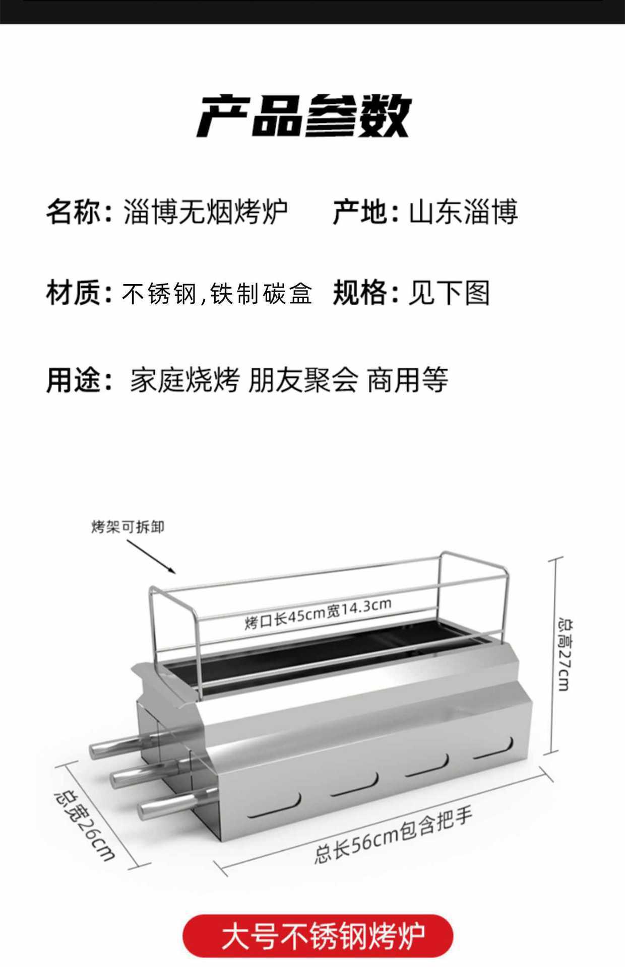 Zibo 바베큐 그릴 스토브 상업용 따뜻한 스틱 무연 그릴 가정용 중국식 숯 두꺼운 스테인레스 스틸 바베큐