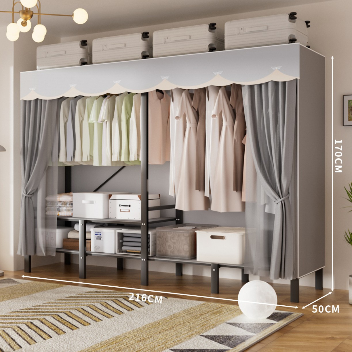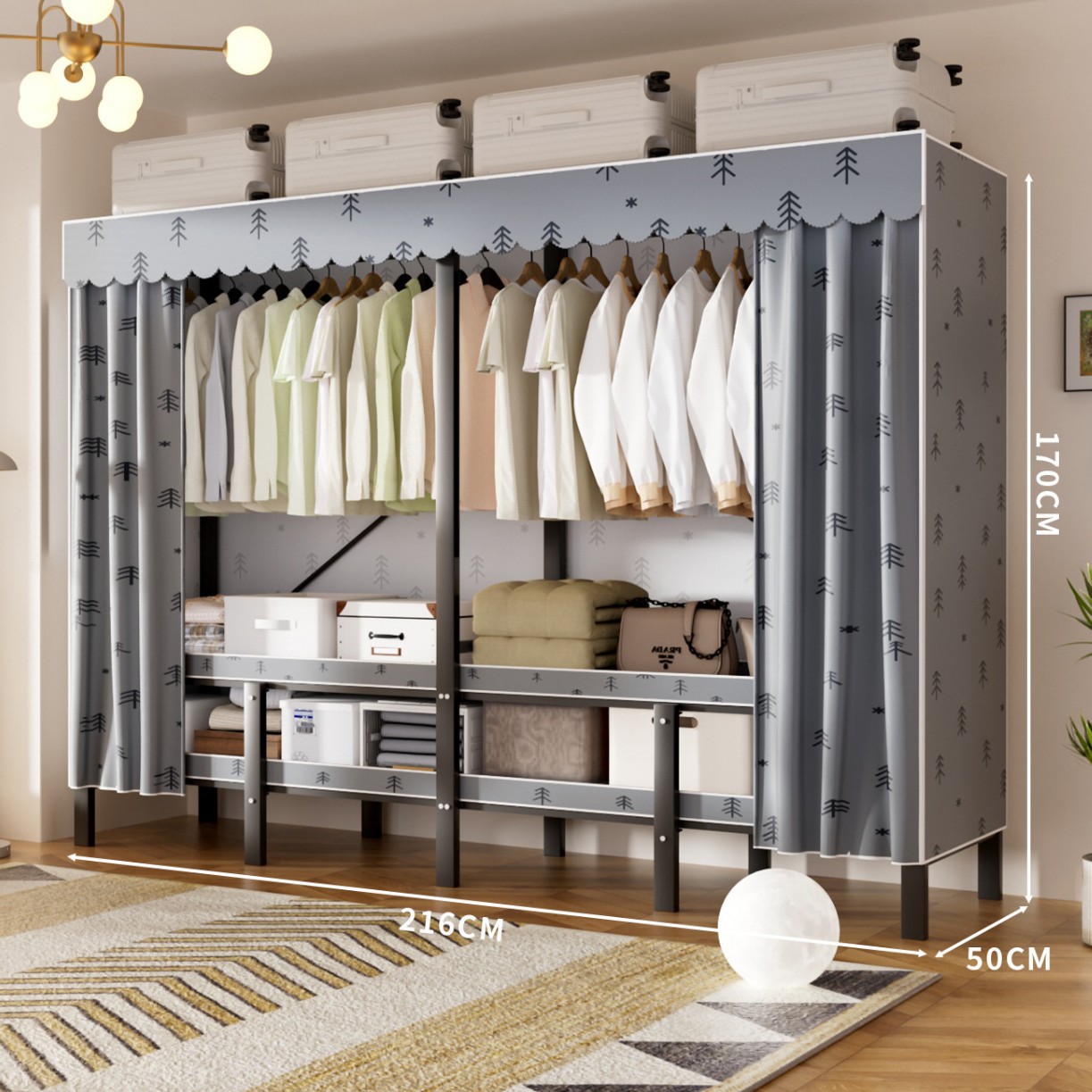 • 업그레이드된 길어진 옷걸이 [롱 2.16m Xingqi Meng] 다양한 수납공간