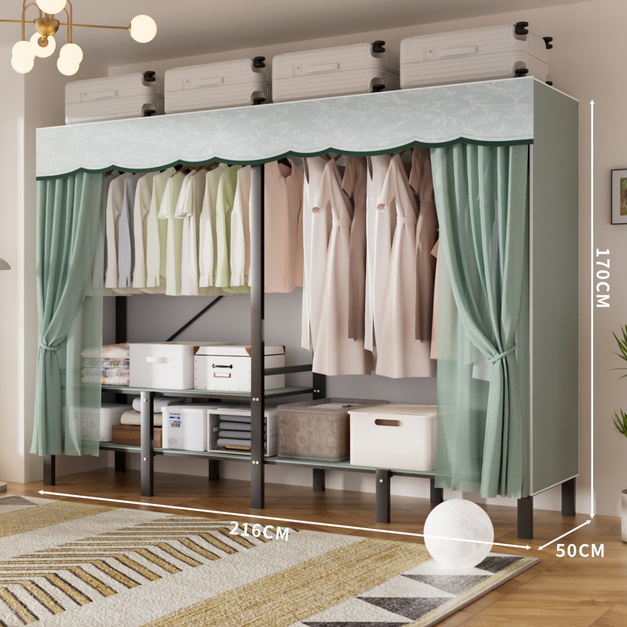 • 업그레이드된 길어진 옷걸이 [롱 2.16m 파인프로스트 그린] 수납 다양화