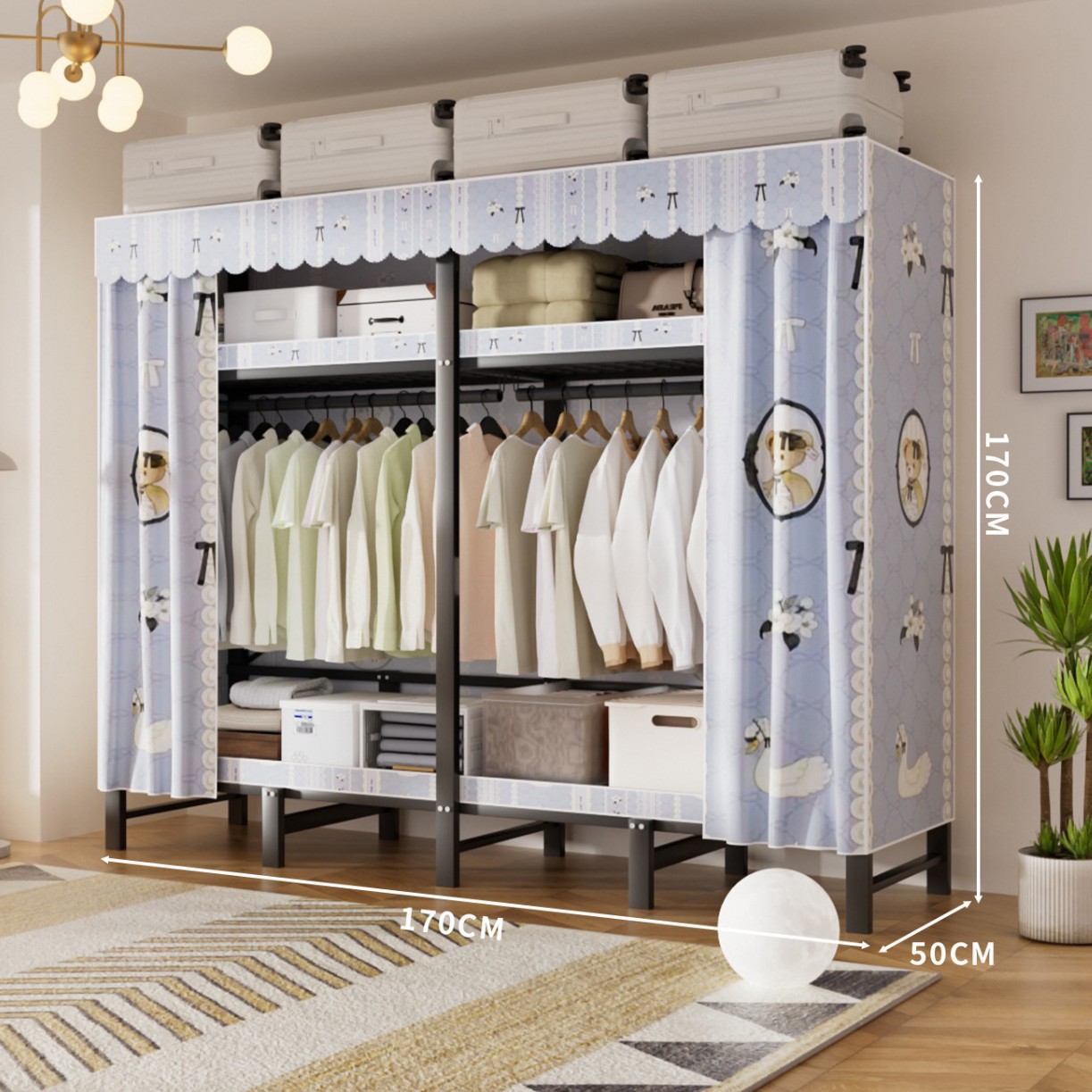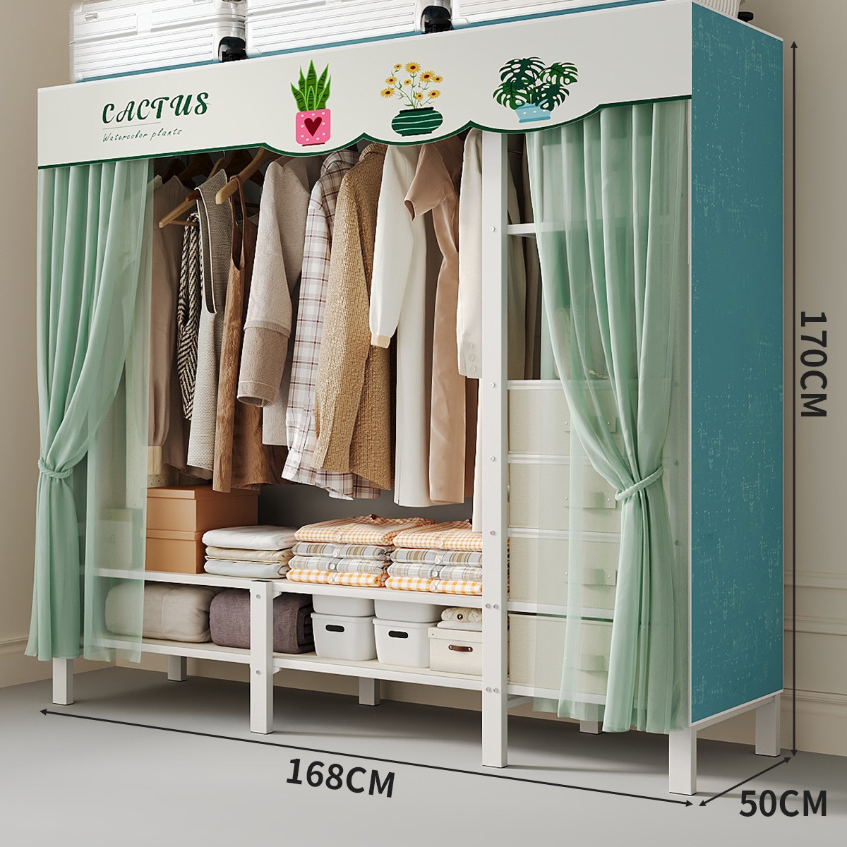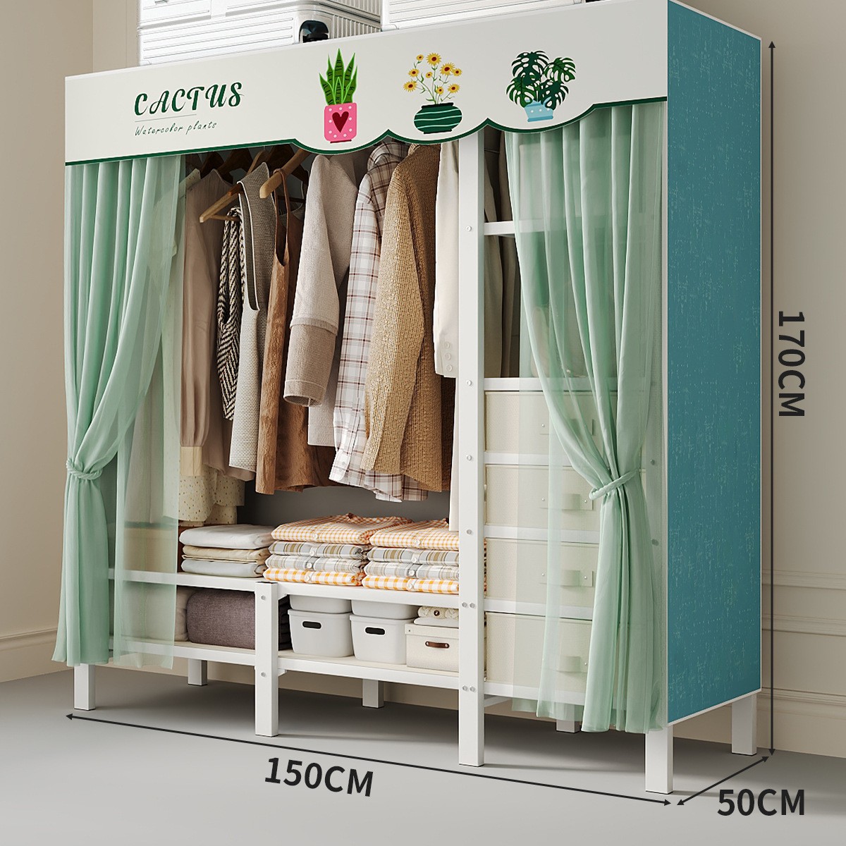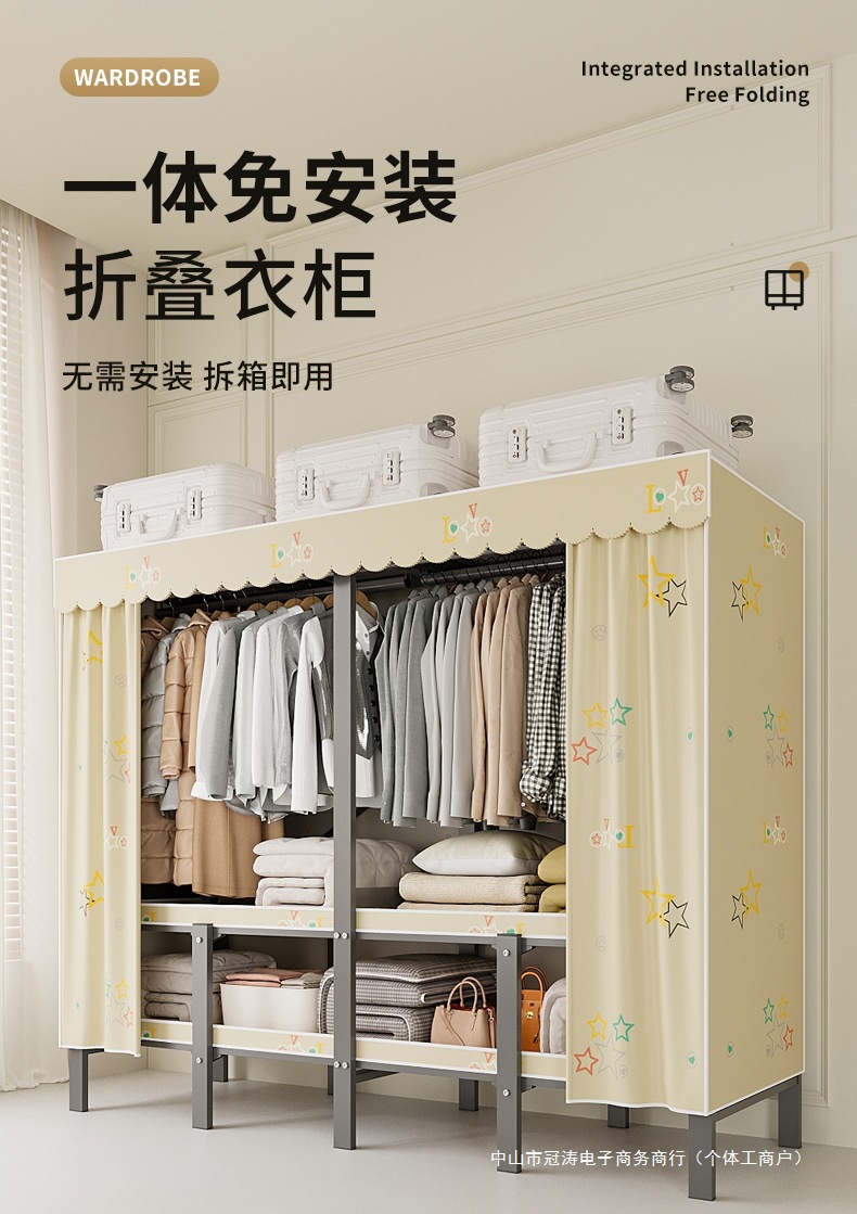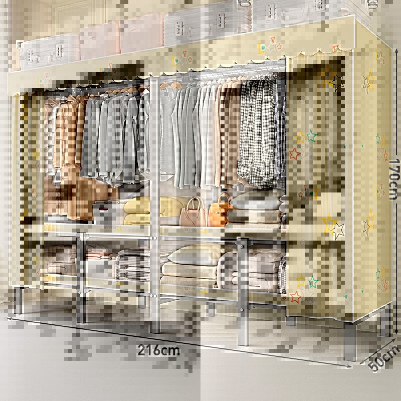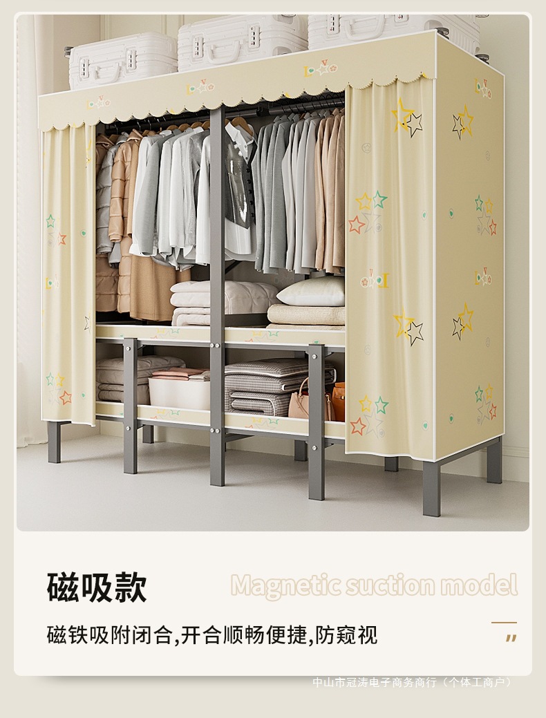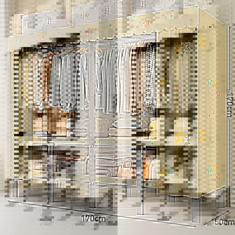 접이식 옷장, 가정용 침실, 간단한 천 옷장, 튼튼하고 내구성이 뛰어난 임대용 옷장, 철제 프레임 캐비닛