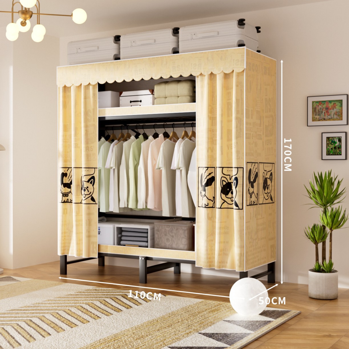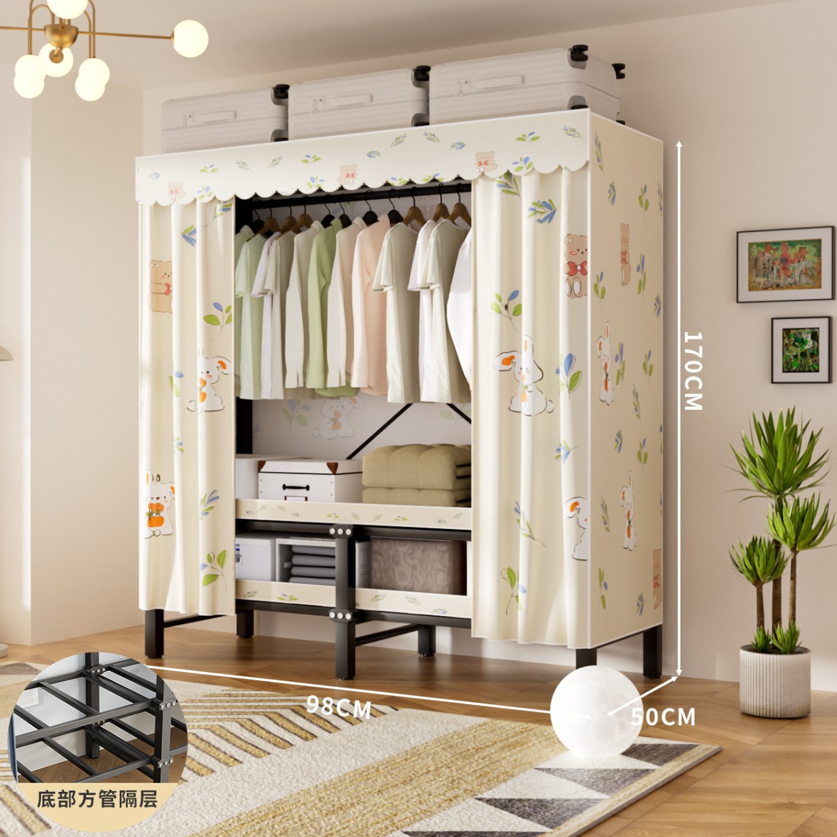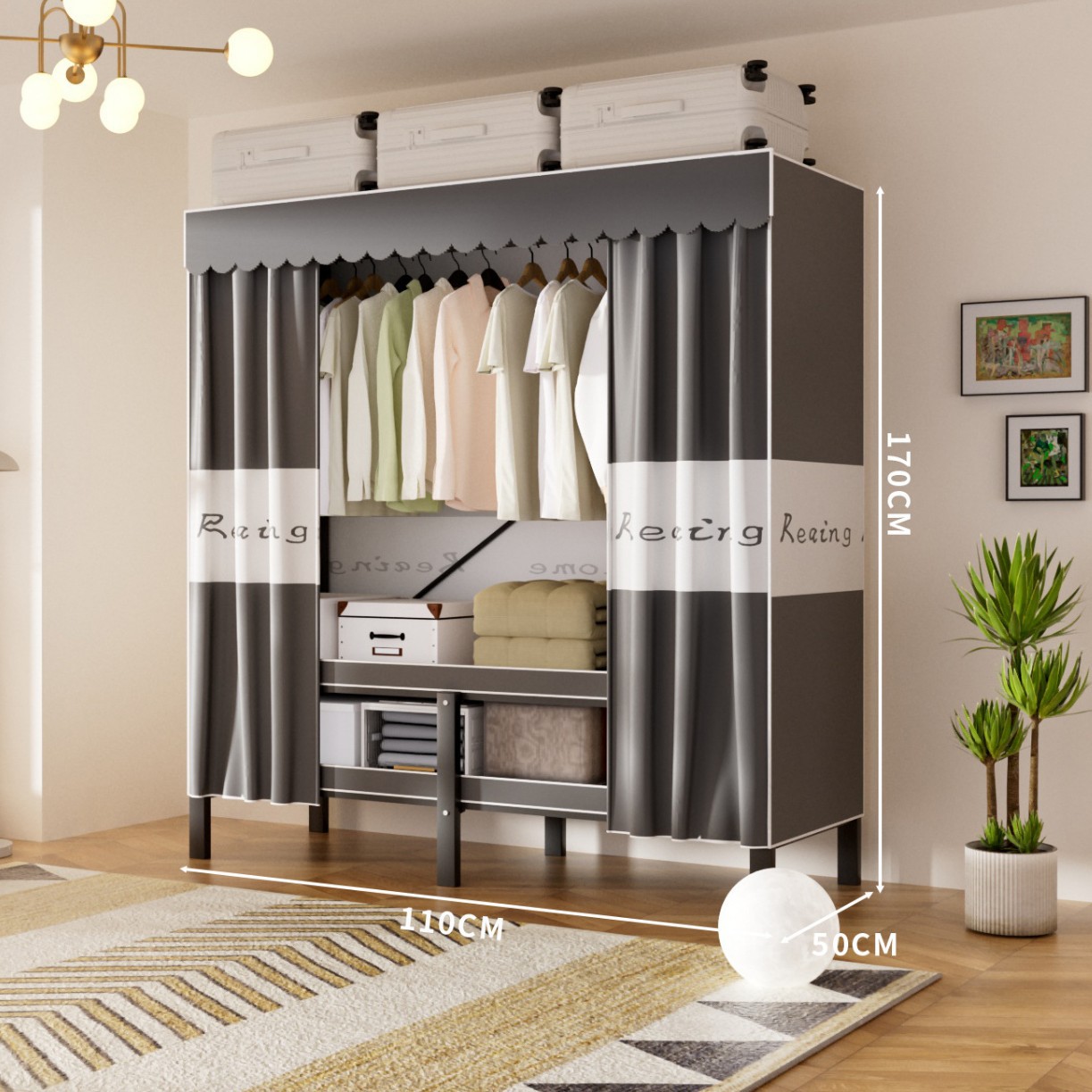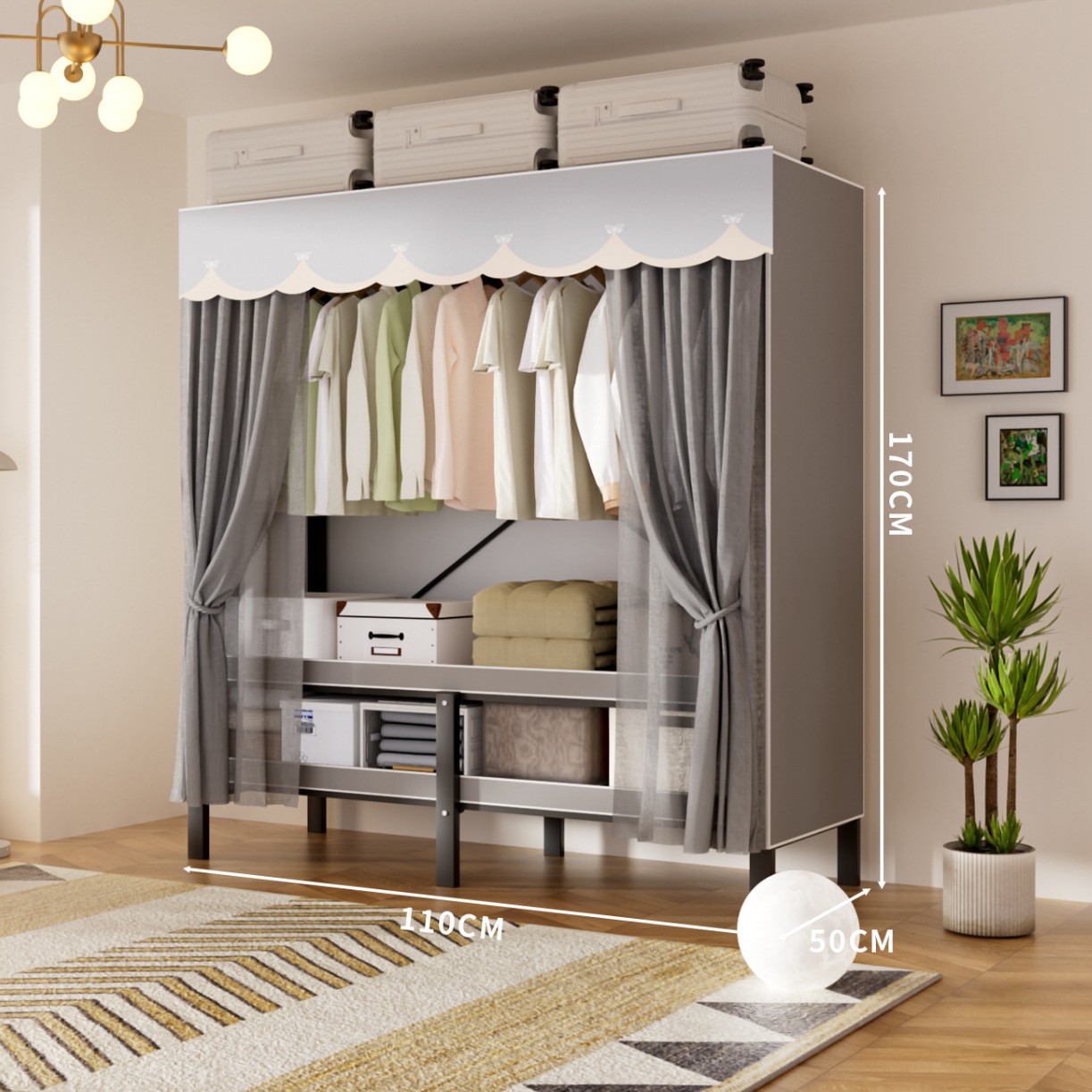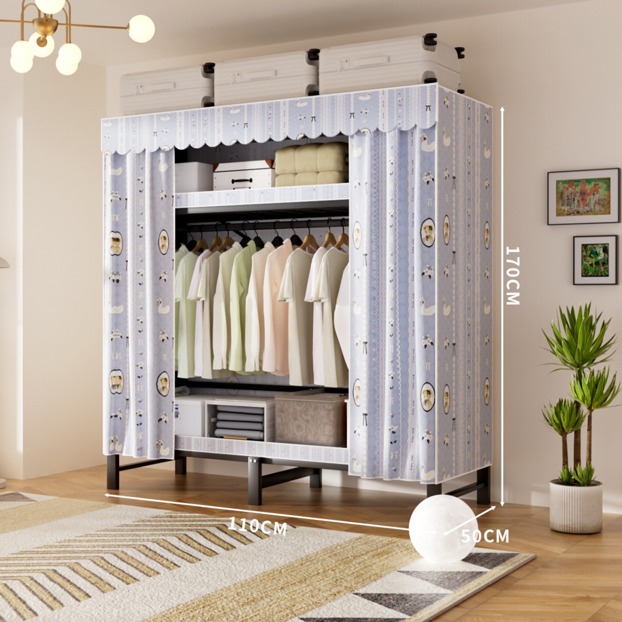 접이식 옷장, 가정용 침실, 간단한 천 옷장, 튼튼하고 내구성이 뛰어난 임대용 옷장, 철제 프레임 캐비닛