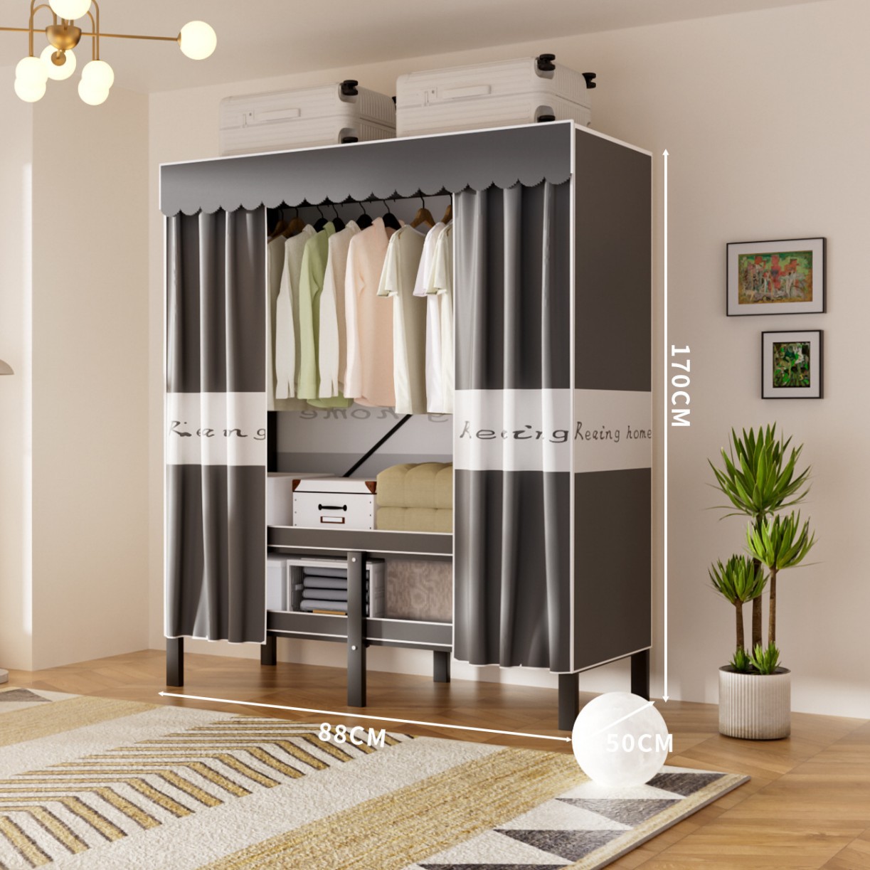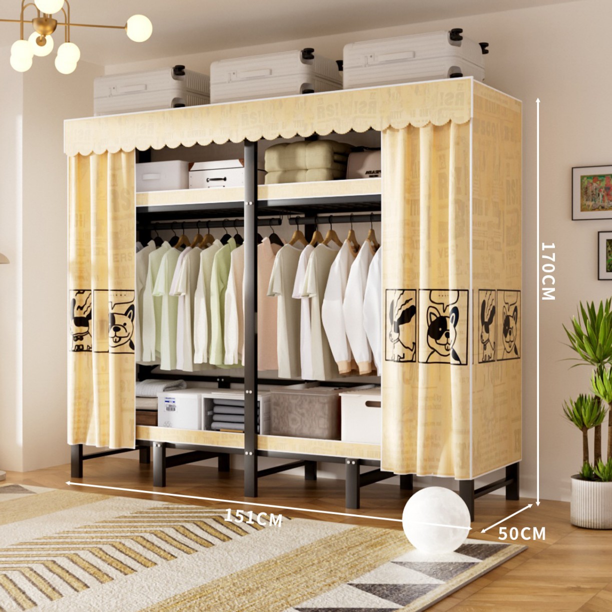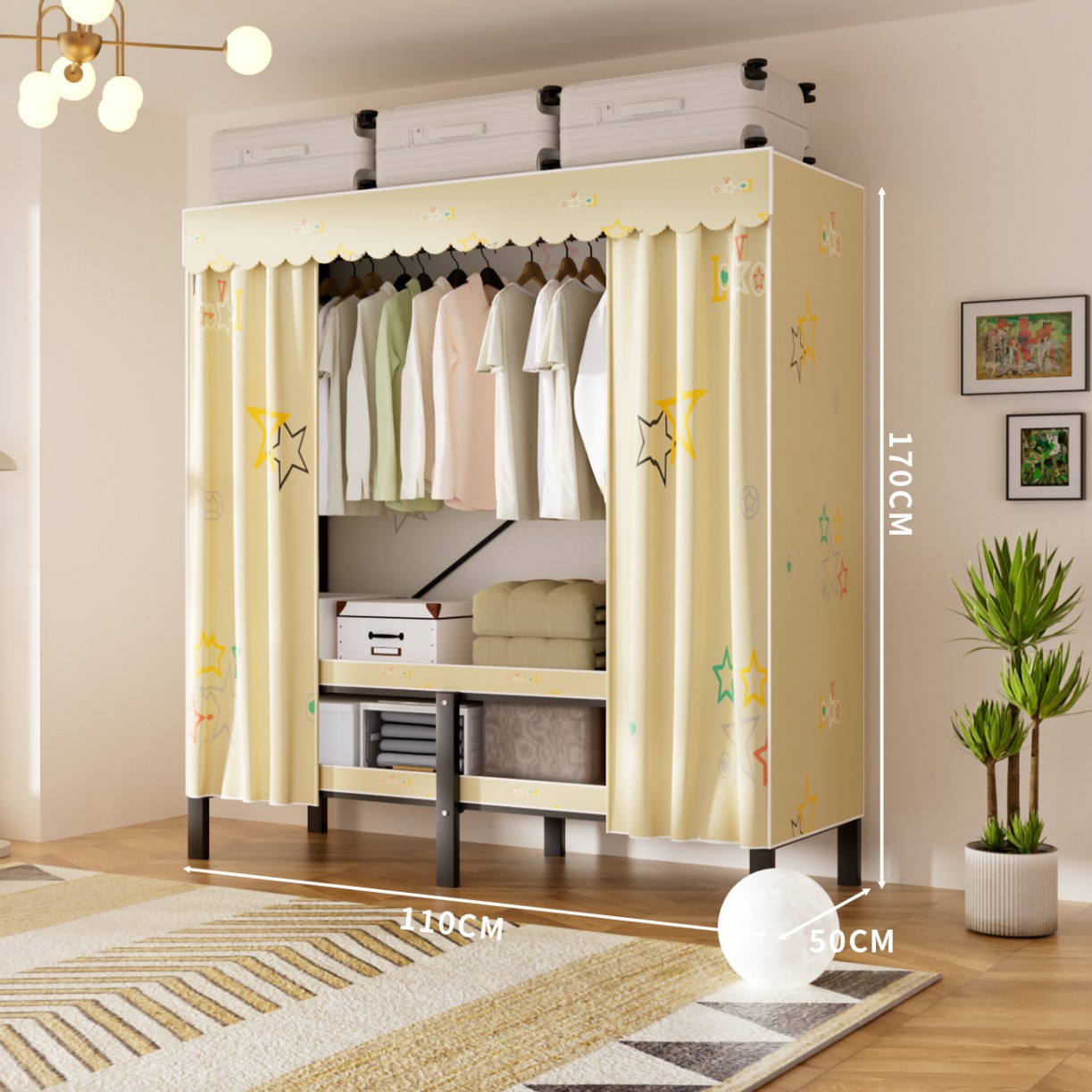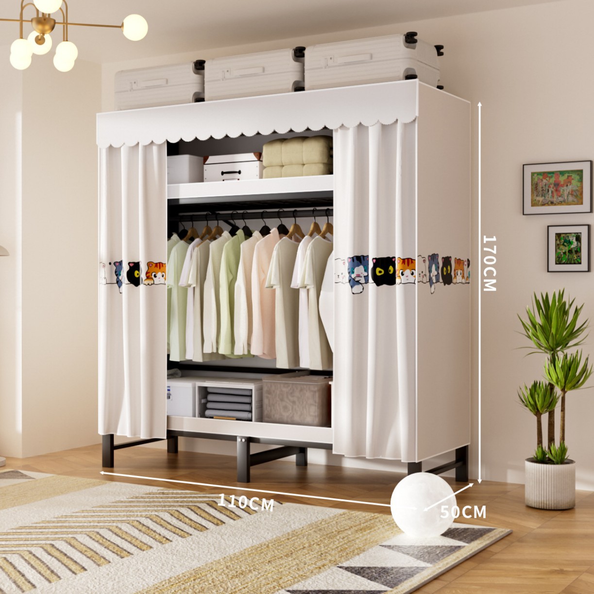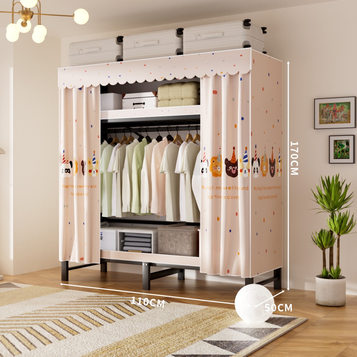 접이식 옷장, 가정용 침실, 간단한 천 옷장, 튼튼하고 내구성이 뛰어난 임대용 옷장, 철제 프레임 캐비닛