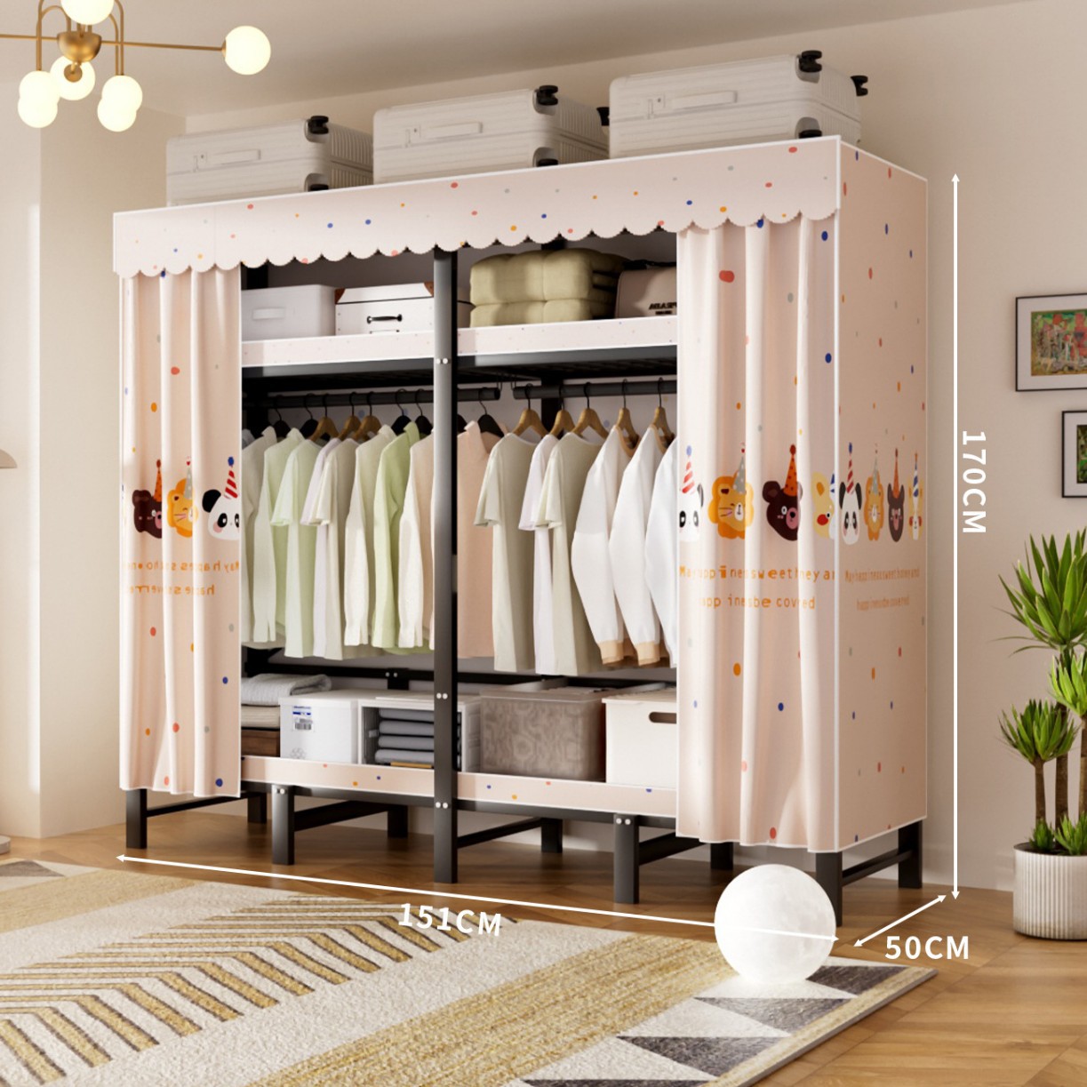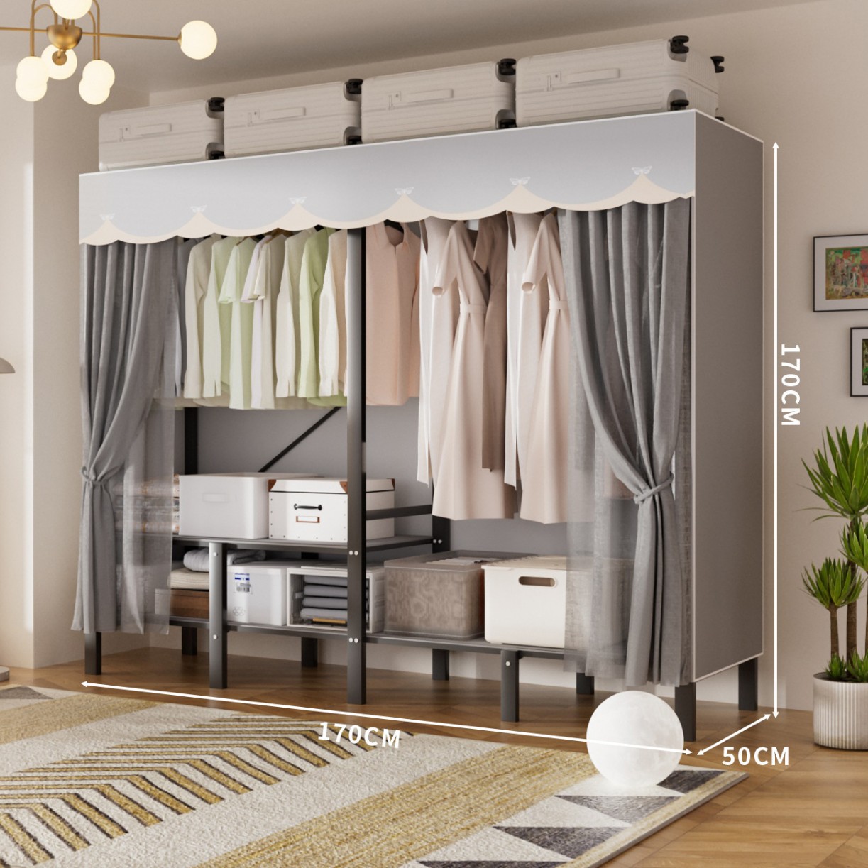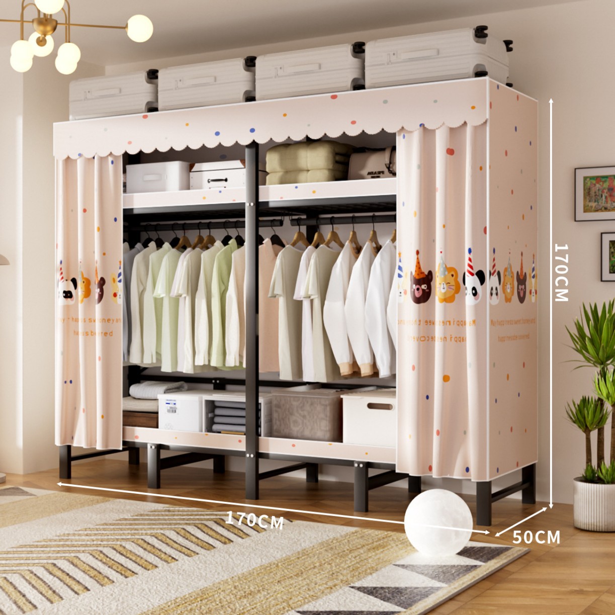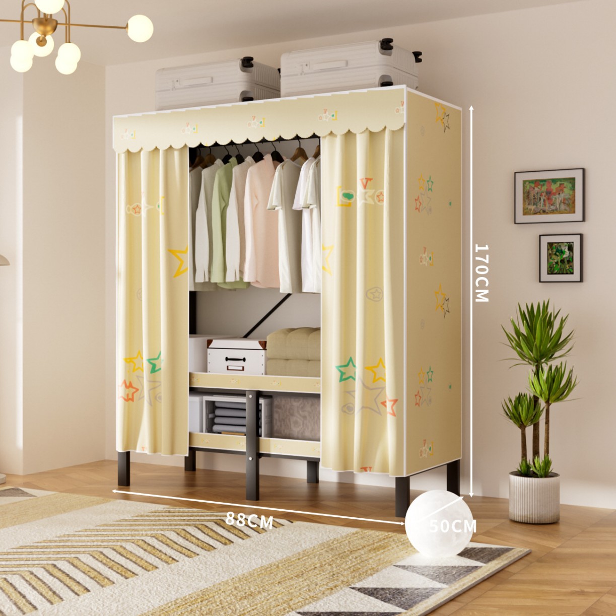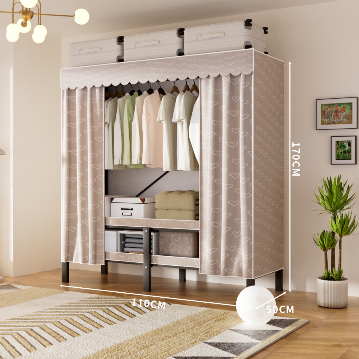 접이식 옷장, 가정용 침실, 간단한 천 옷장, 튼튼하고 내구성이 뛰어난 임대용 옷장, 철제 프레임 캐비닛