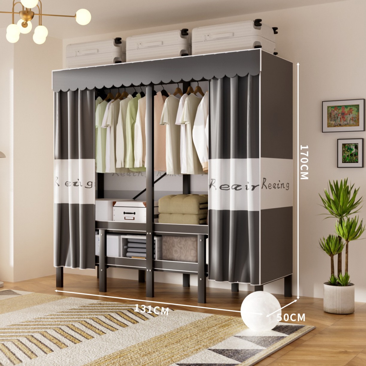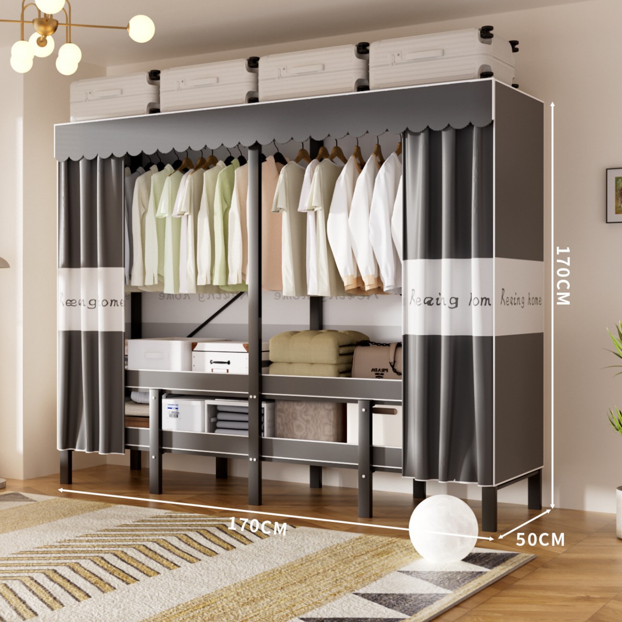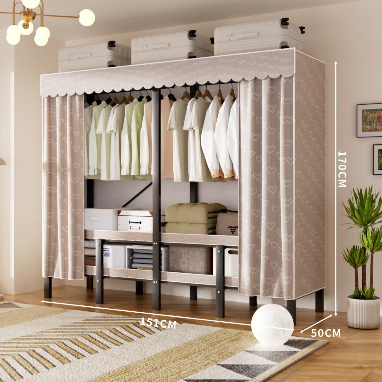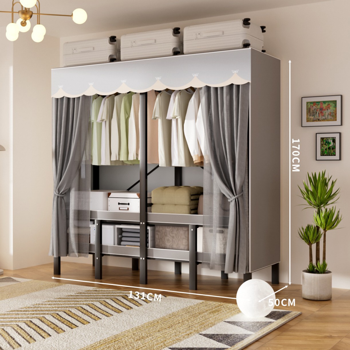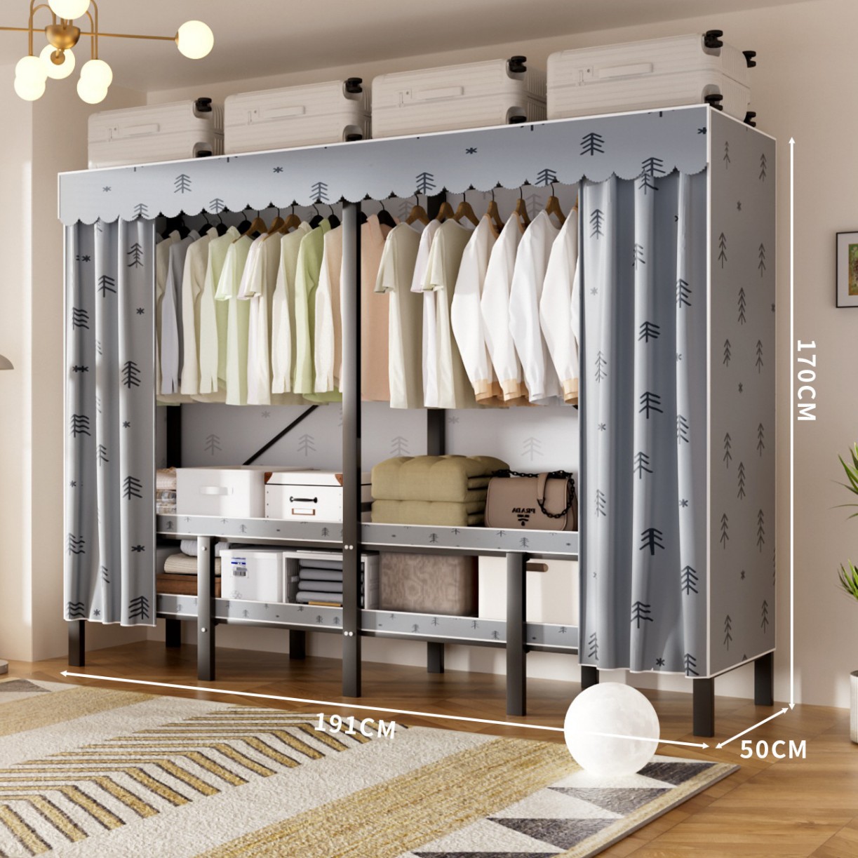 접이식 옷장, 가정용 침실, 간단한 천 옷장, 튼튼하고 내구성이 뛰어난 임대용 옷장, 철제 프레임 캐비닛