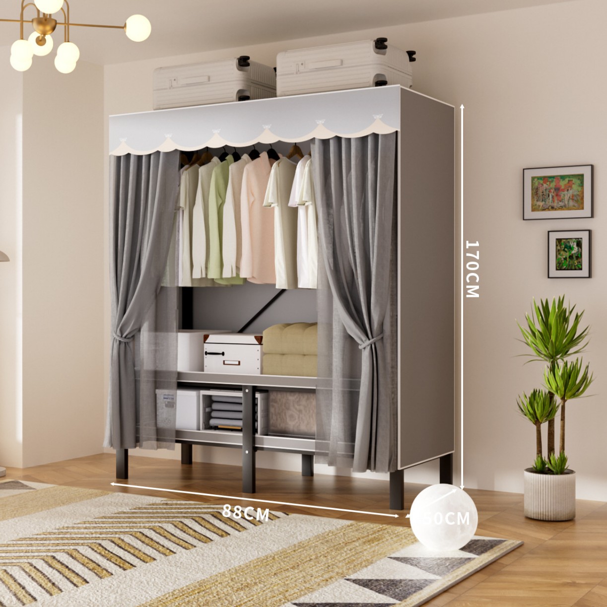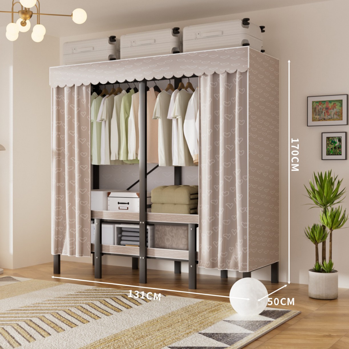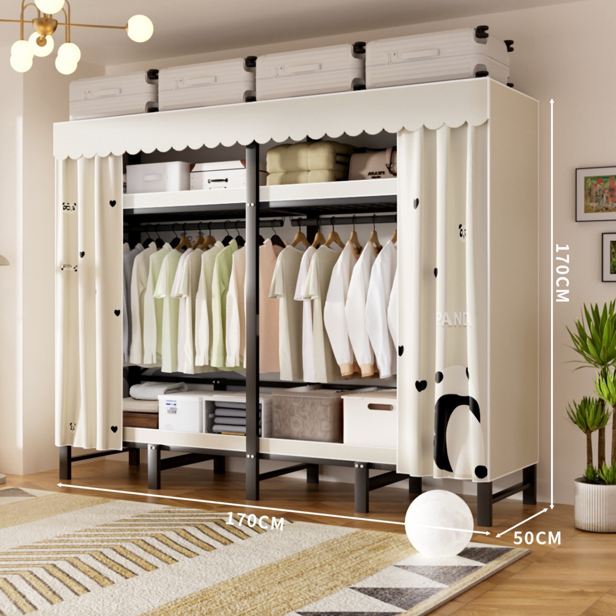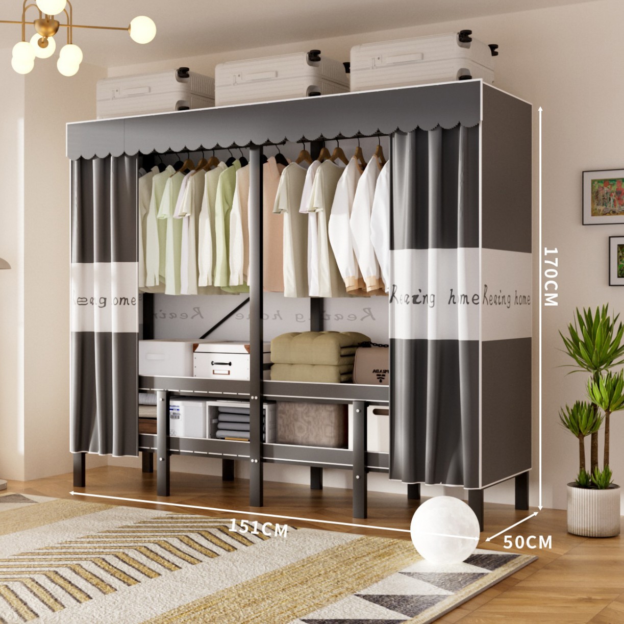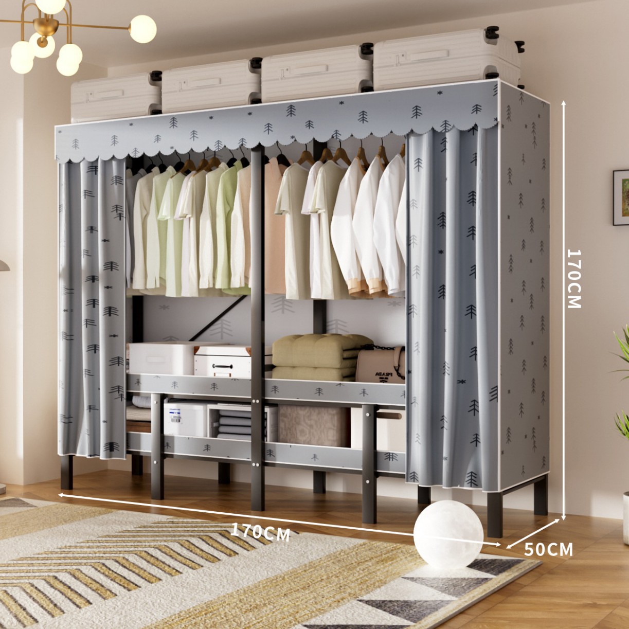 접이식 옷장, 가정용 침실, 간단한 천 옷장, 튼튼하고 내구성이 뛰어난 임대용 옷장, 철제 프레임 캐비닛
