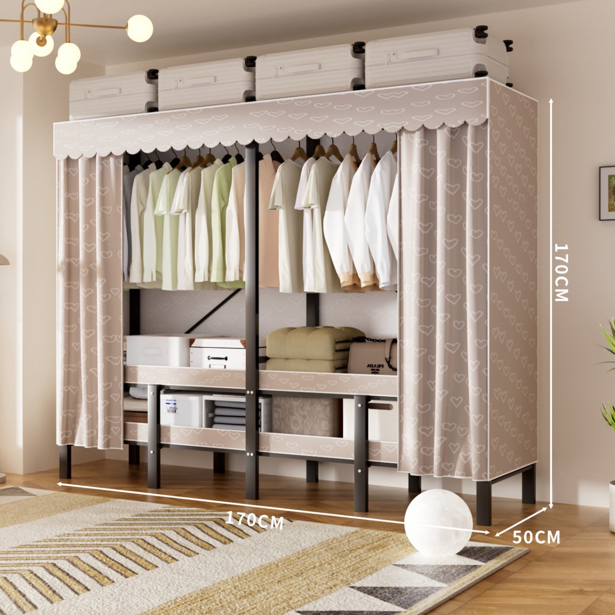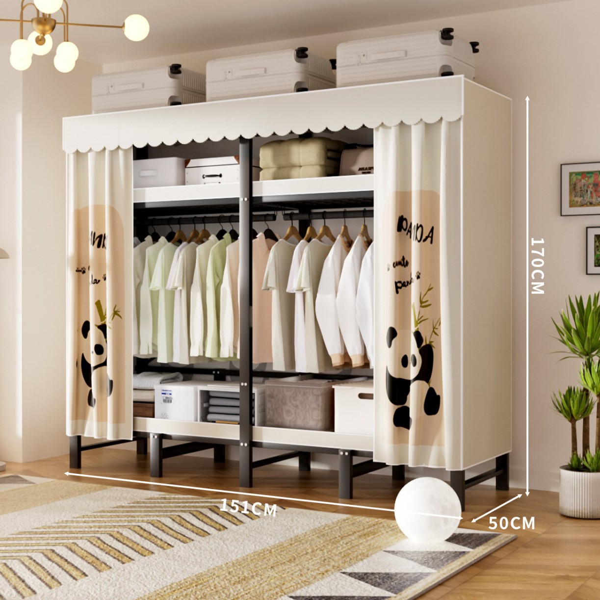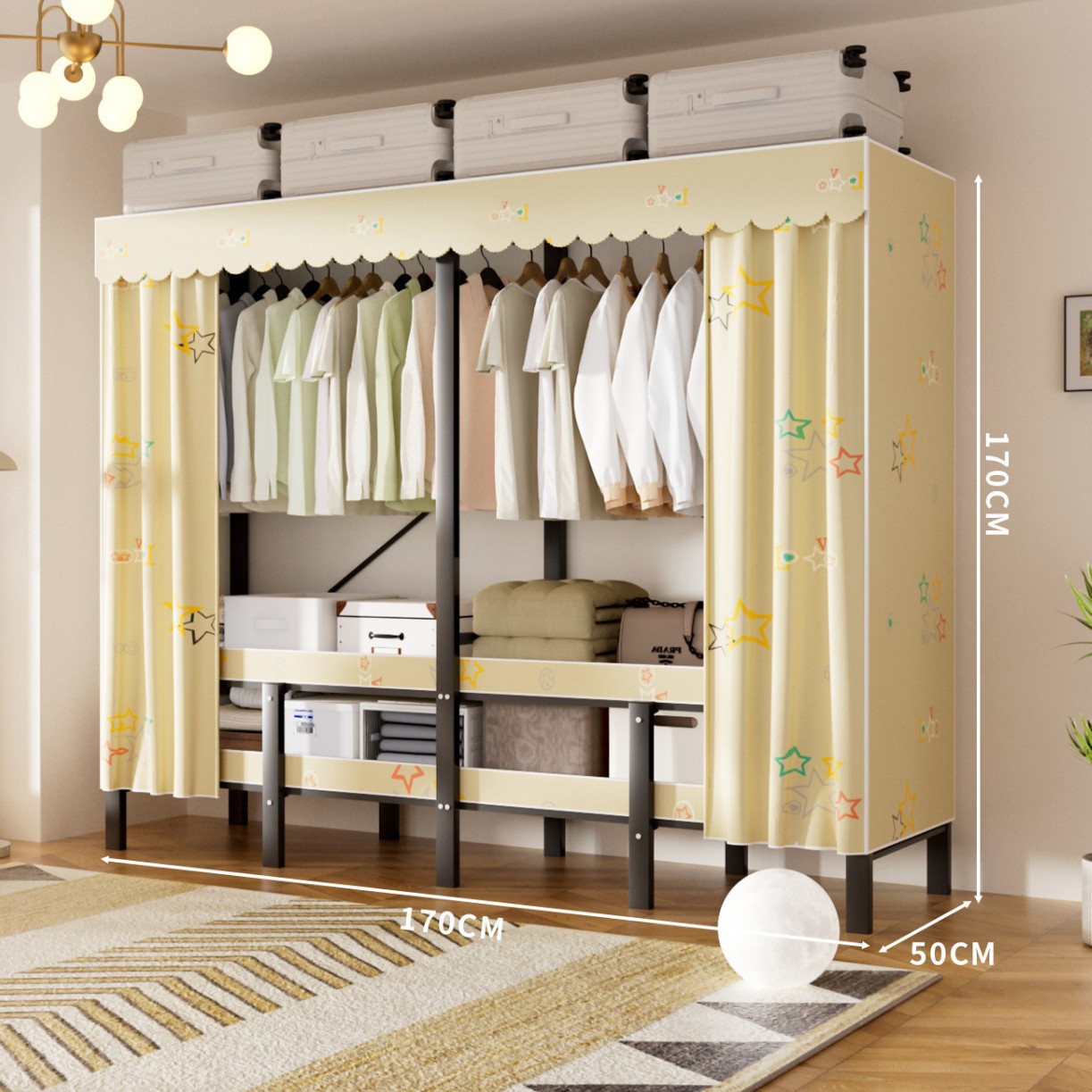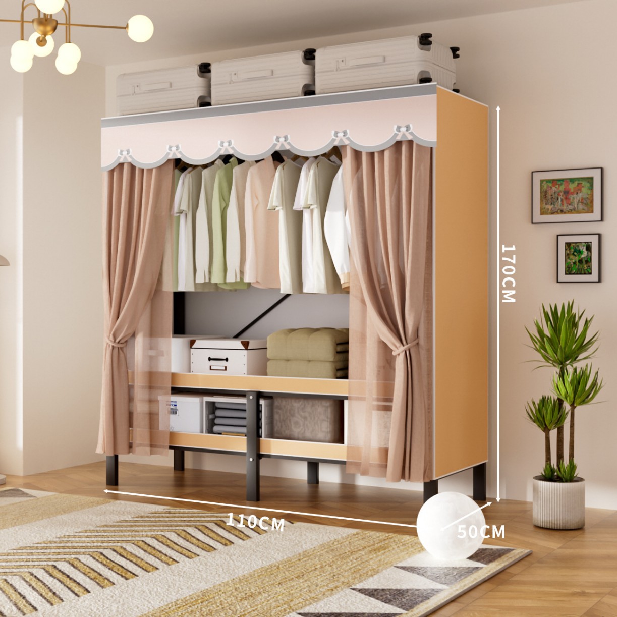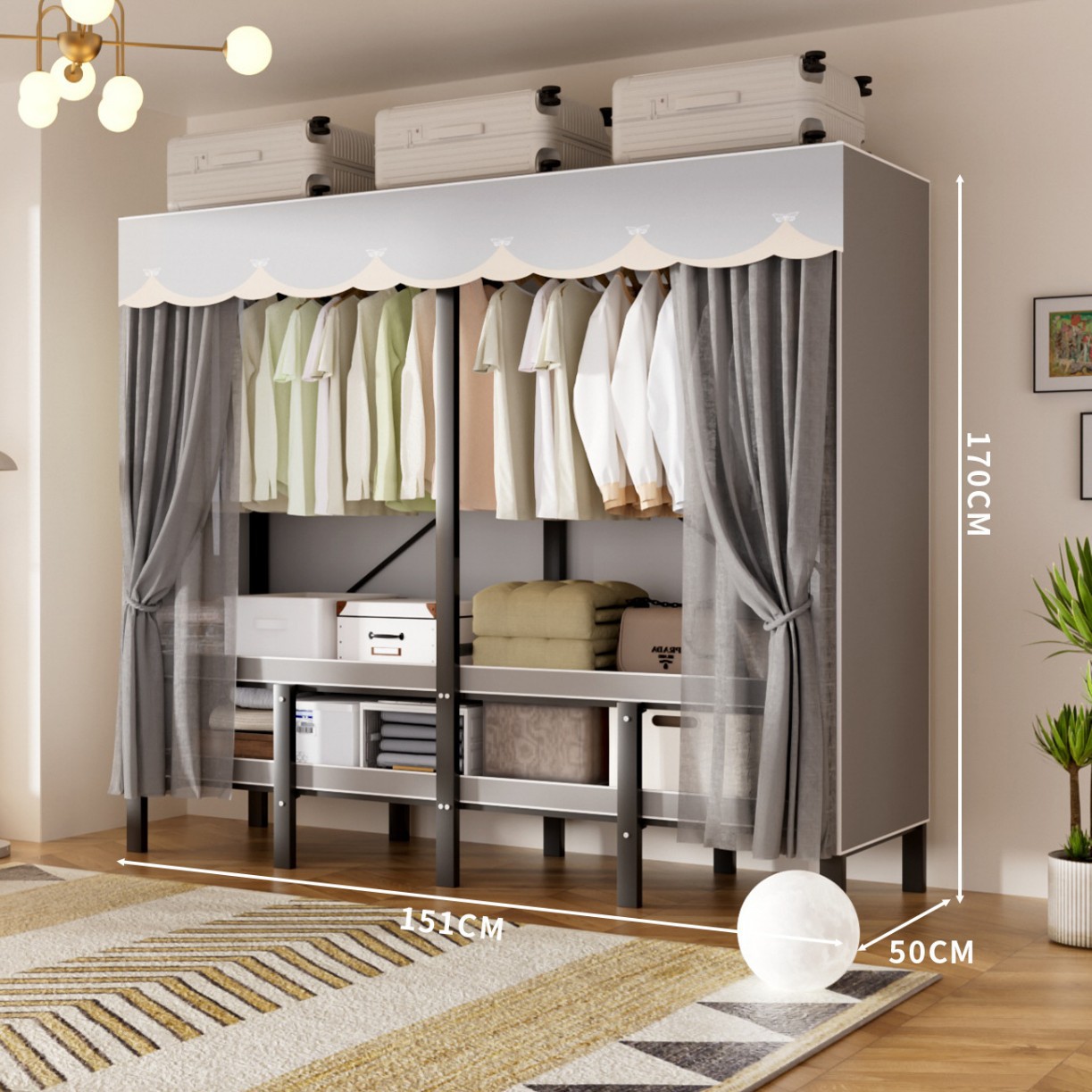접이식 옷장, 가정용 침실, 간단한 천 옷장, 튼튼하고 내구성이 뛰어난 임대용 옷장, 철제 프레임 캐비닛