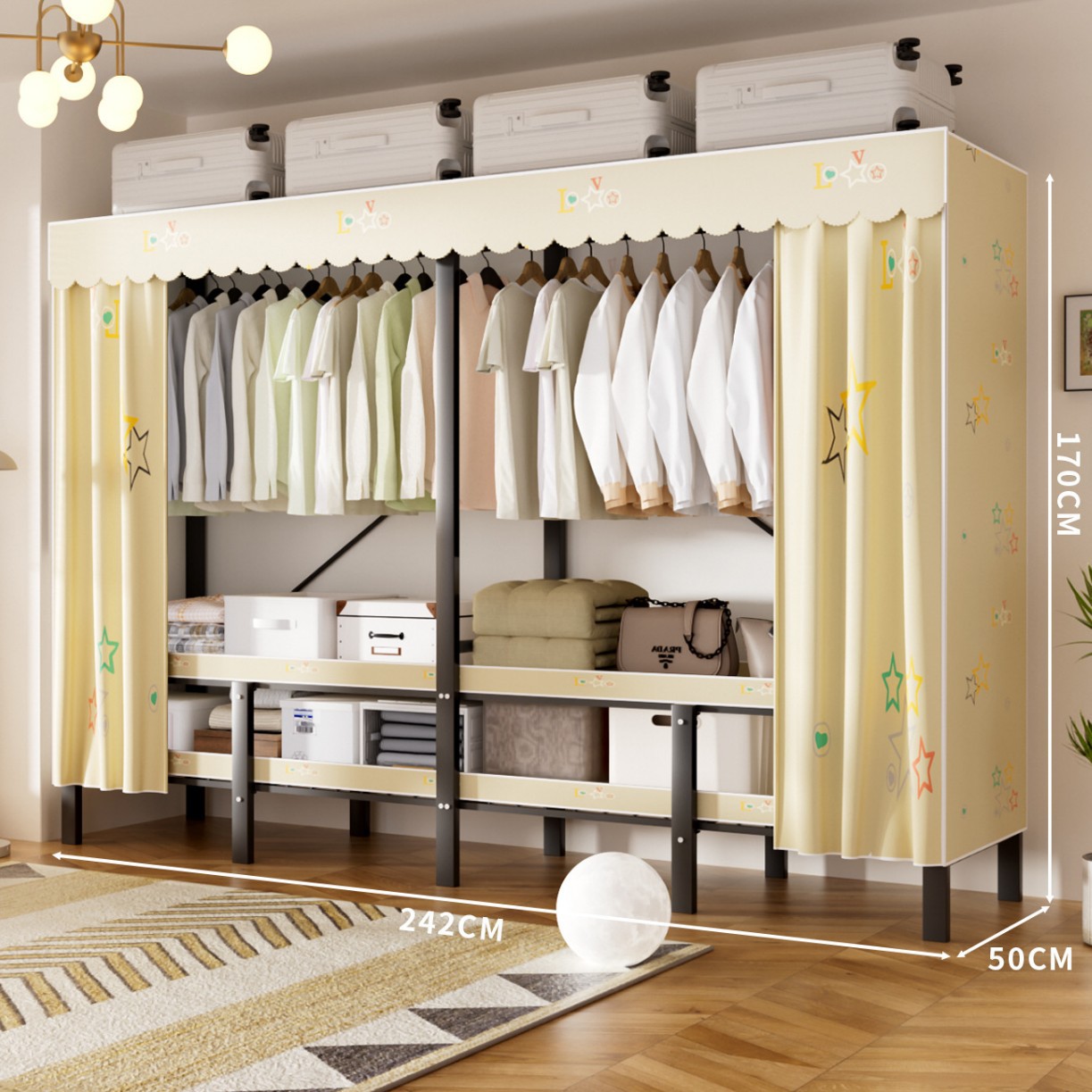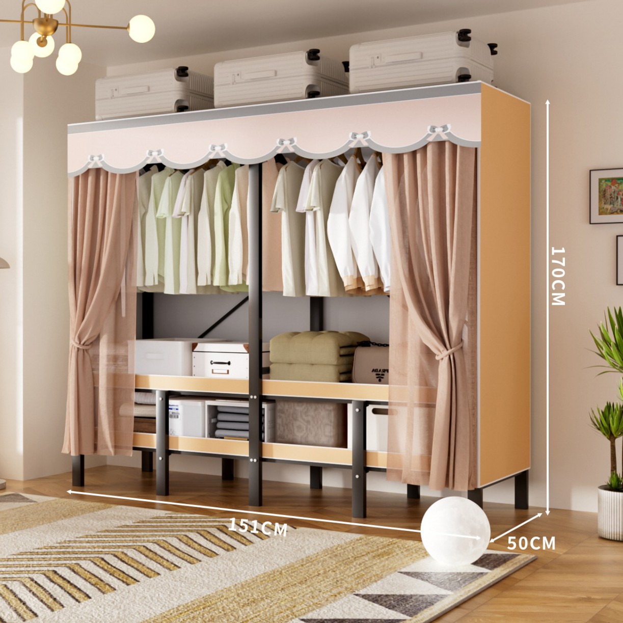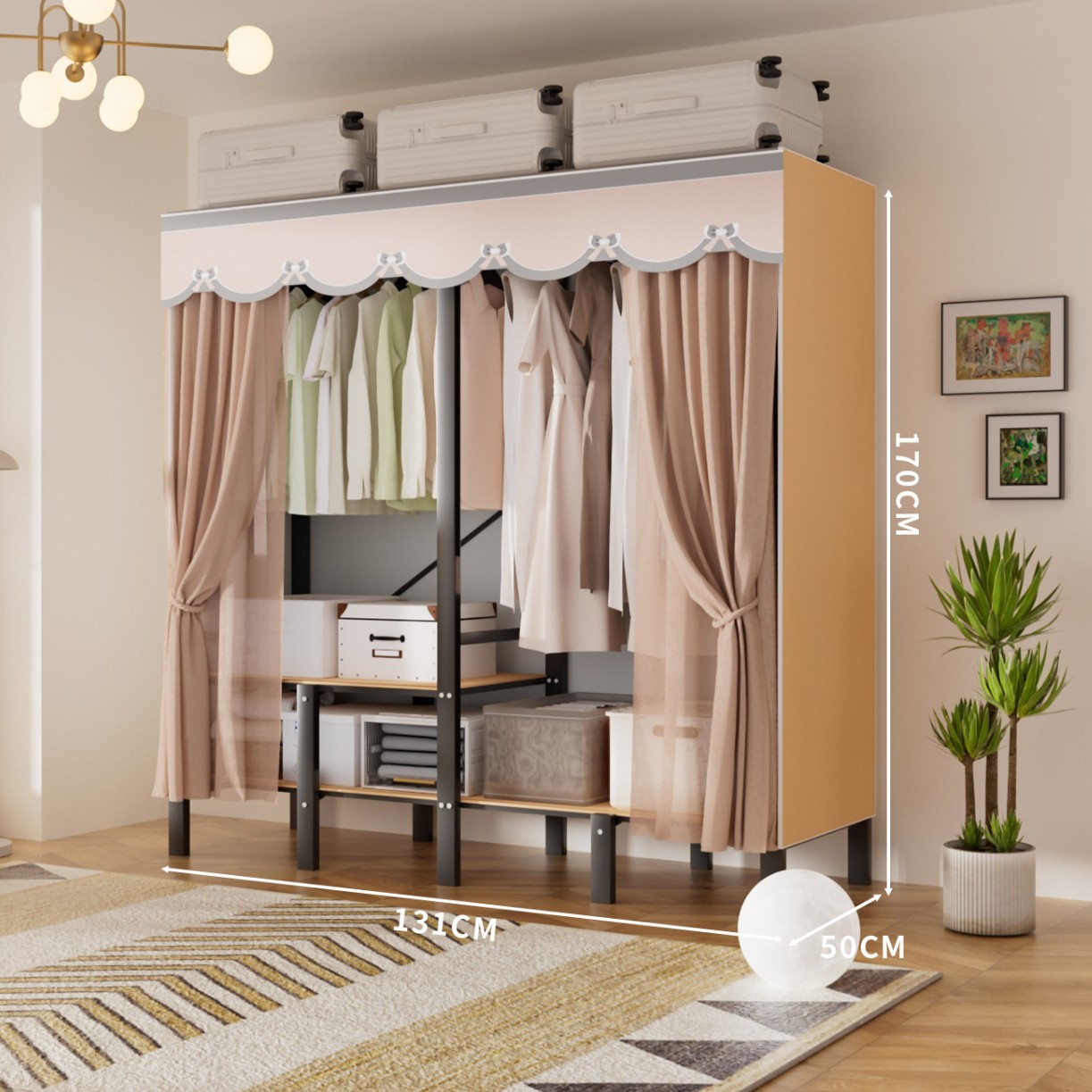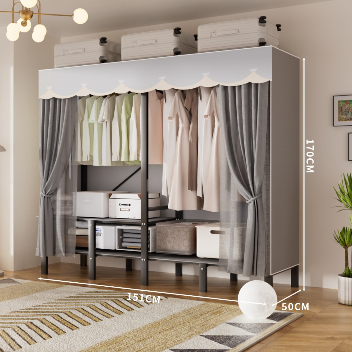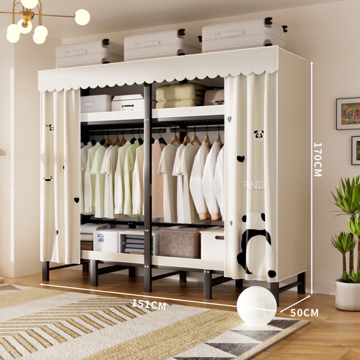 접이식 옷장, 가정용 침실, 간단한 천 옷장, 튼튼하고 내구성이 뛰어난 임대용 옷장, 철제 프레임 캐비닛