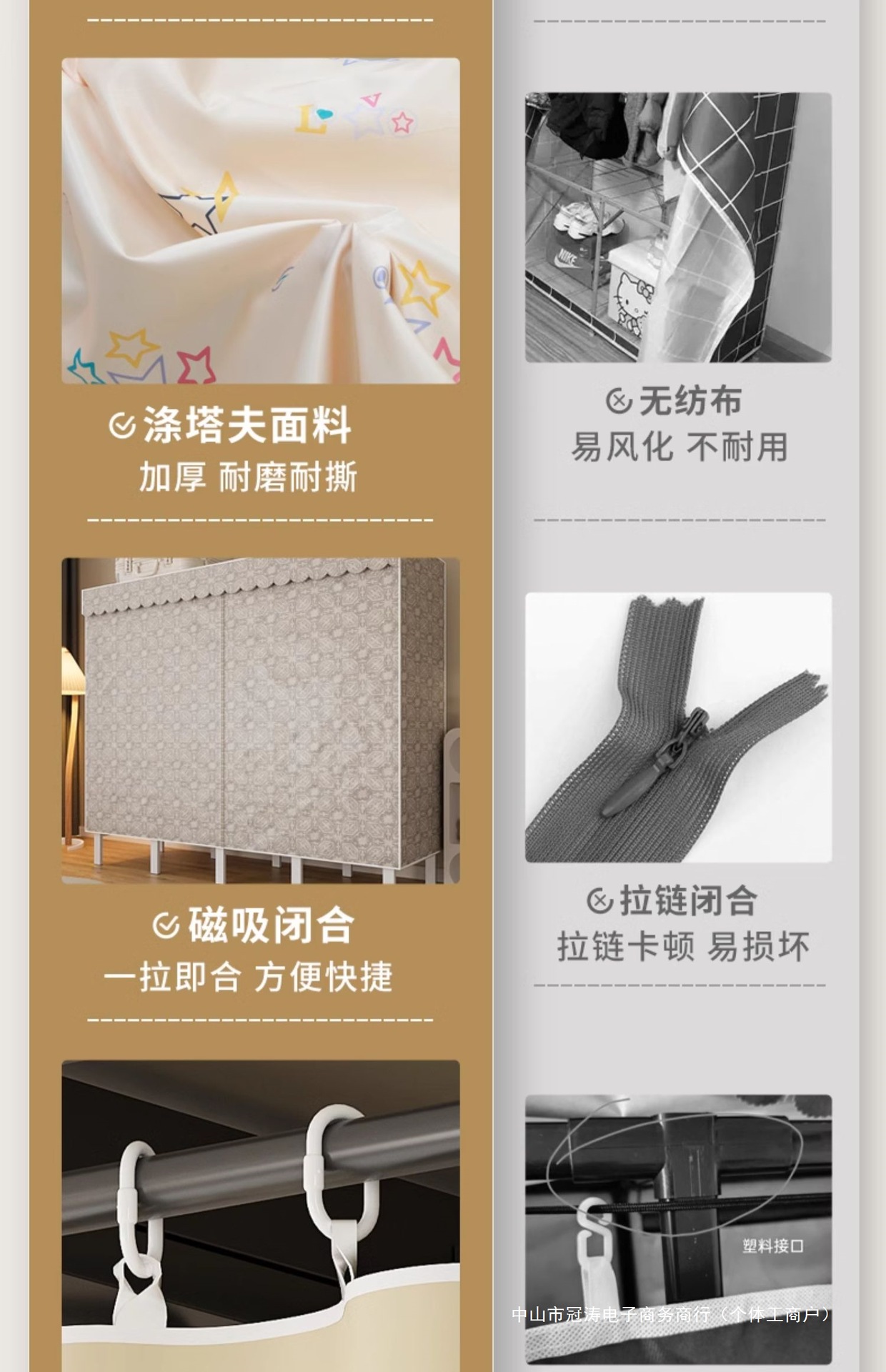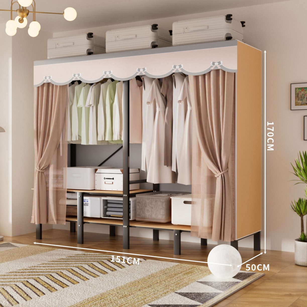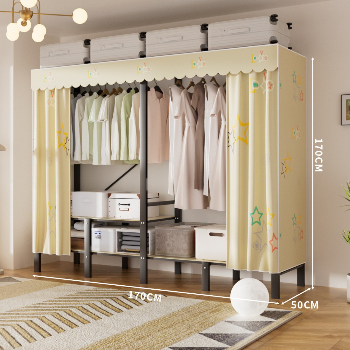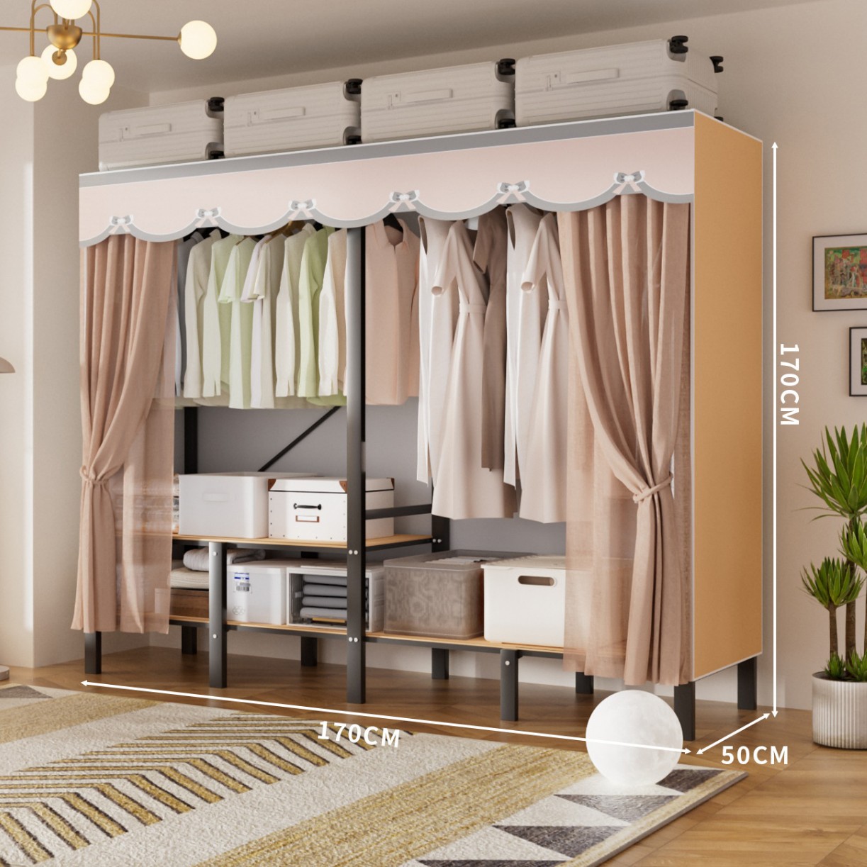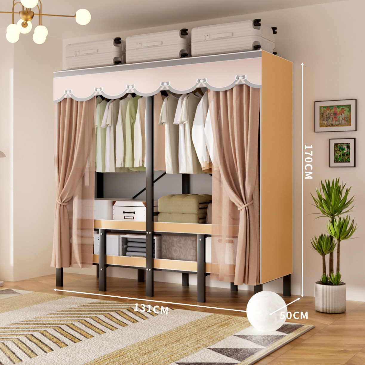 접이식 옷장, 가정용 침실, 간단한 천 옷장, 튼튼하고 내구성이 뛰어난 임대용 옷장, 철제 프레임 캐비닛