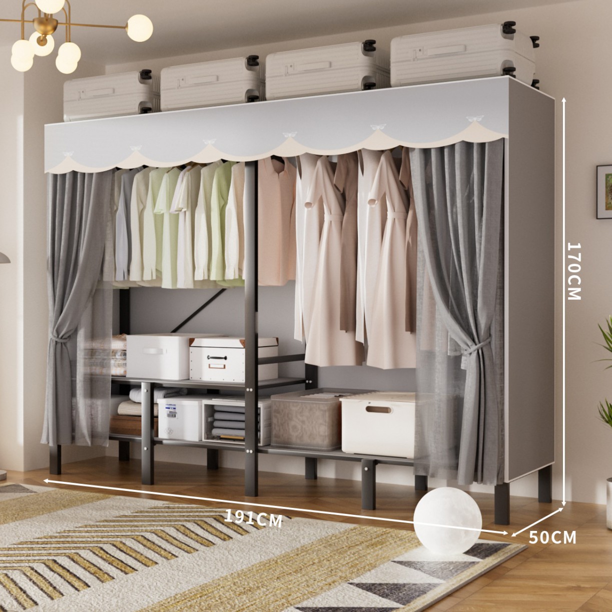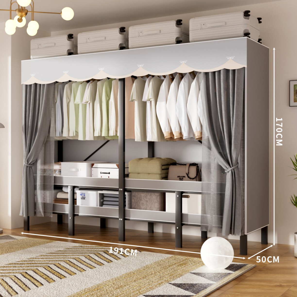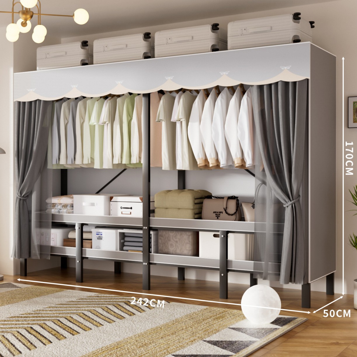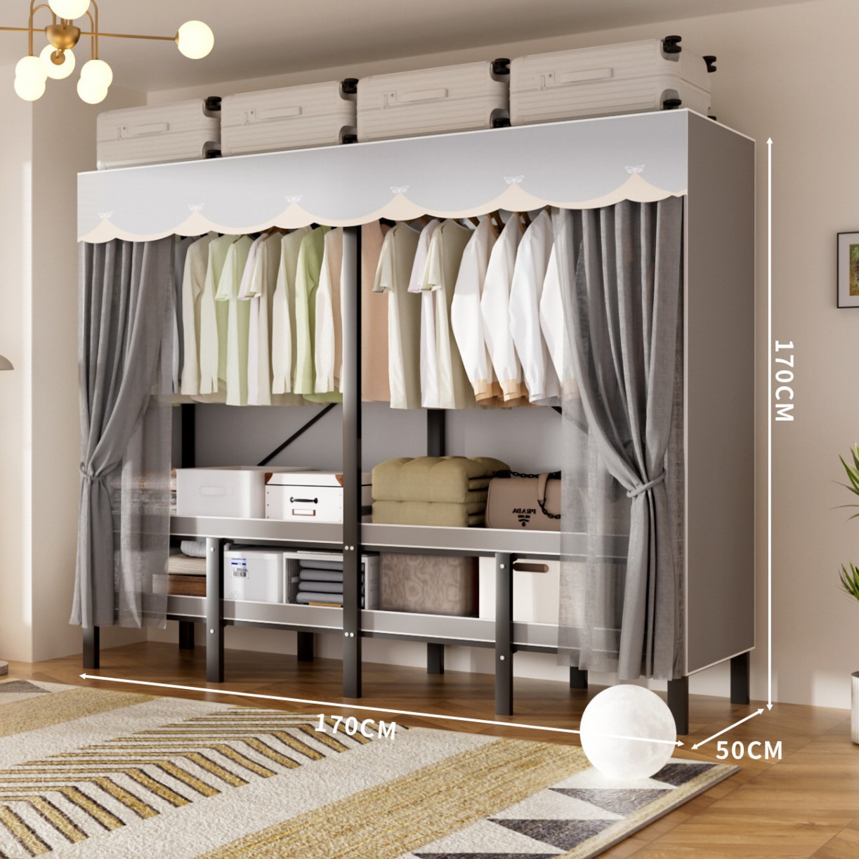 • 업그레이드된 긴 옷걸이 [길이 1.7m 나비 그림자 그레이] 다양한 수납공간