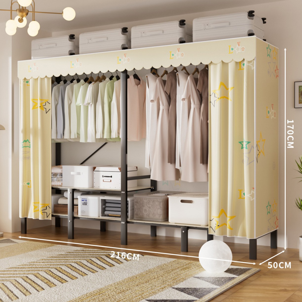• 업그레이드된 길어진 옷걸이 [ 2.16m -나비섀도우옐로우] 다양한 수납공간