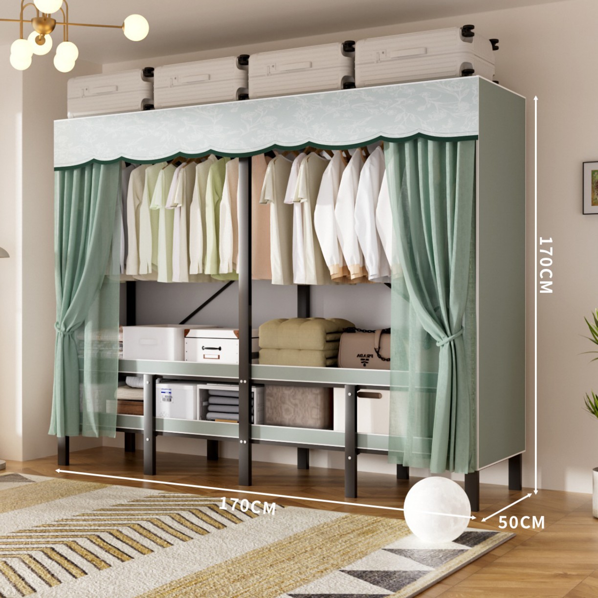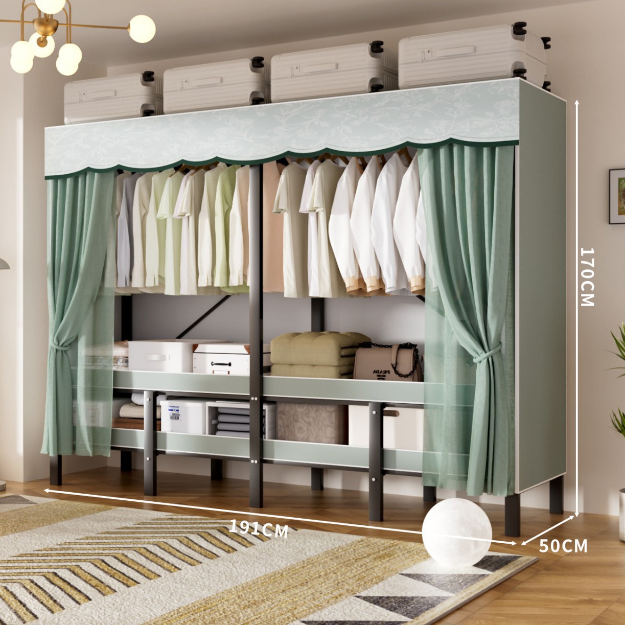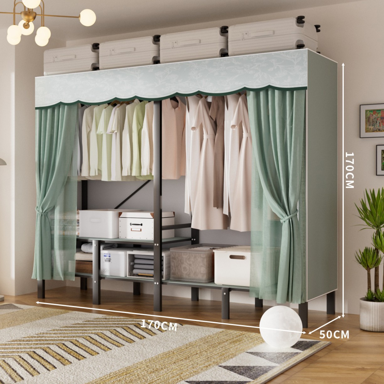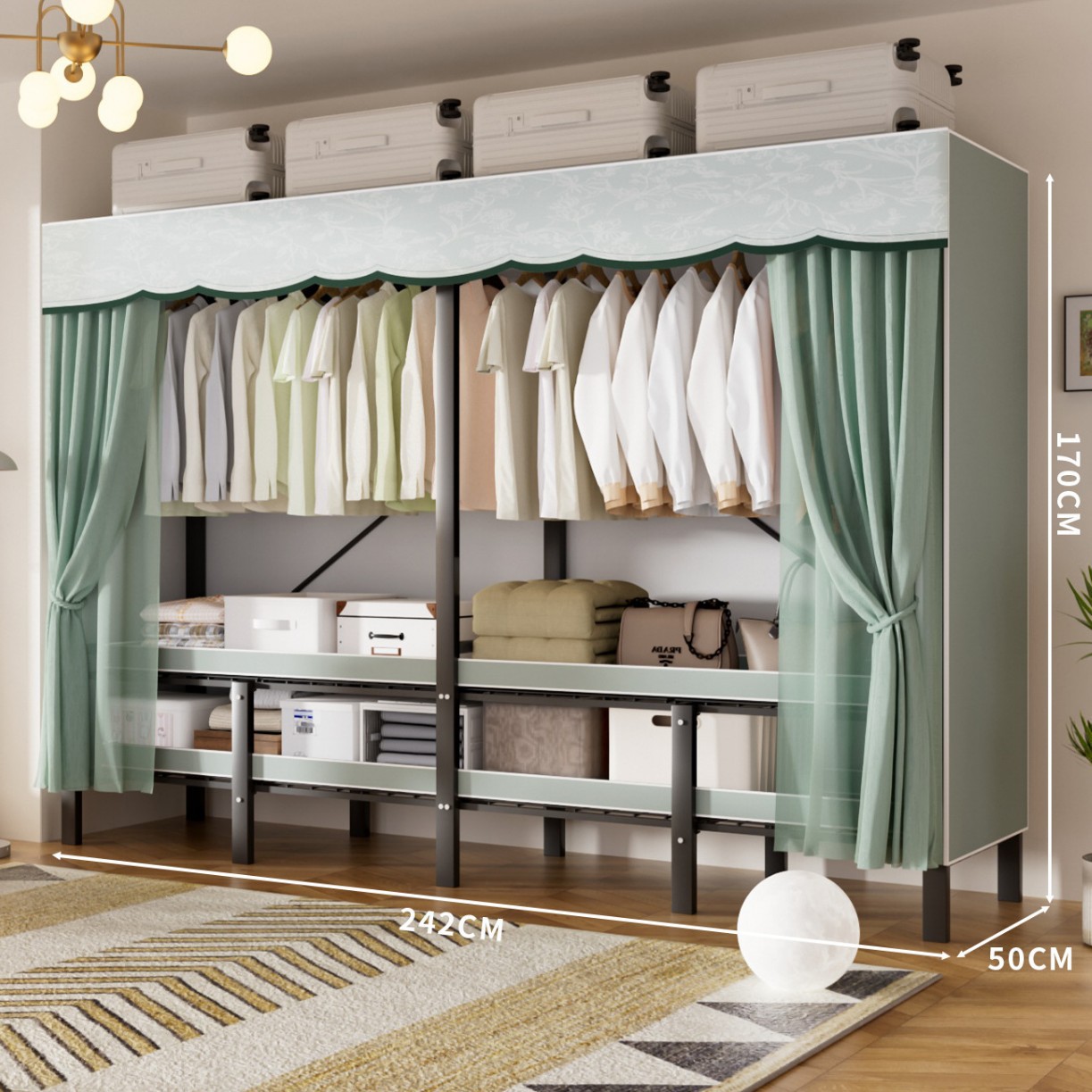 • 업그레이드된 길어진 옷걸이 [롱 1.7m 파인프로스트 그린] 수납 다양화