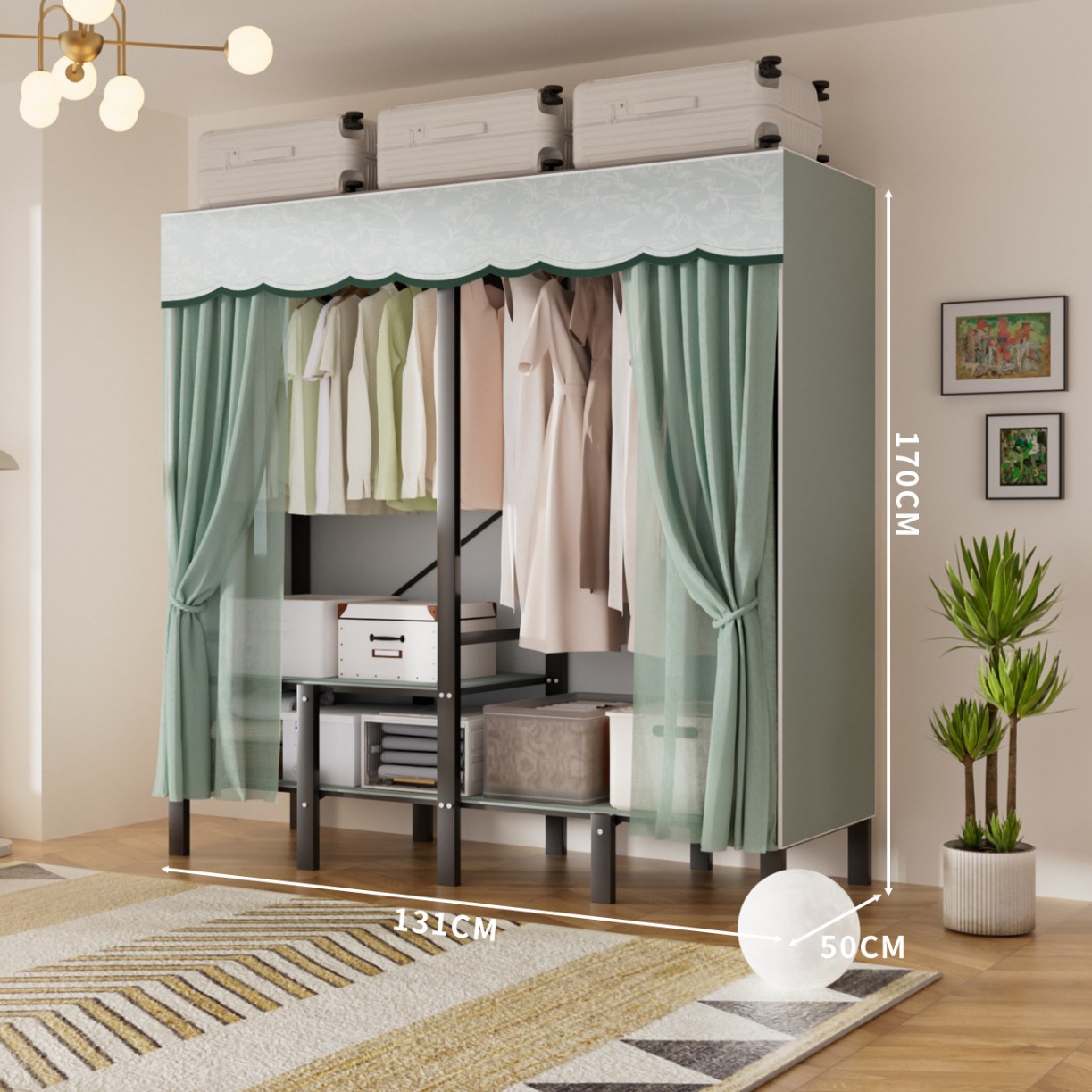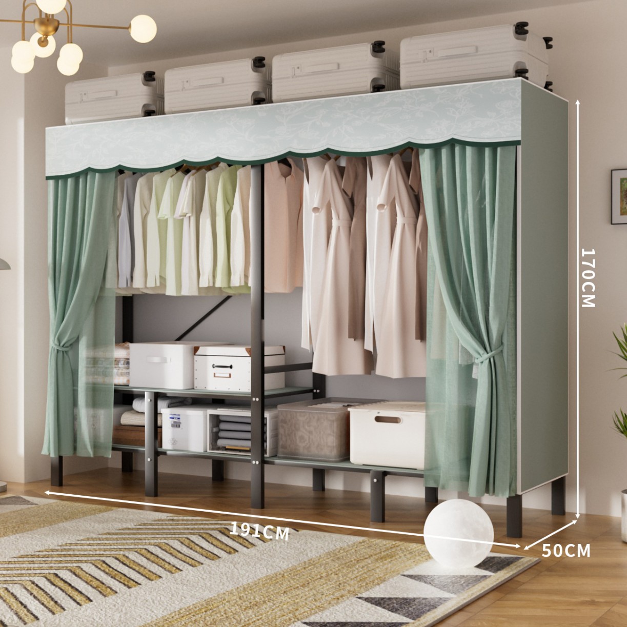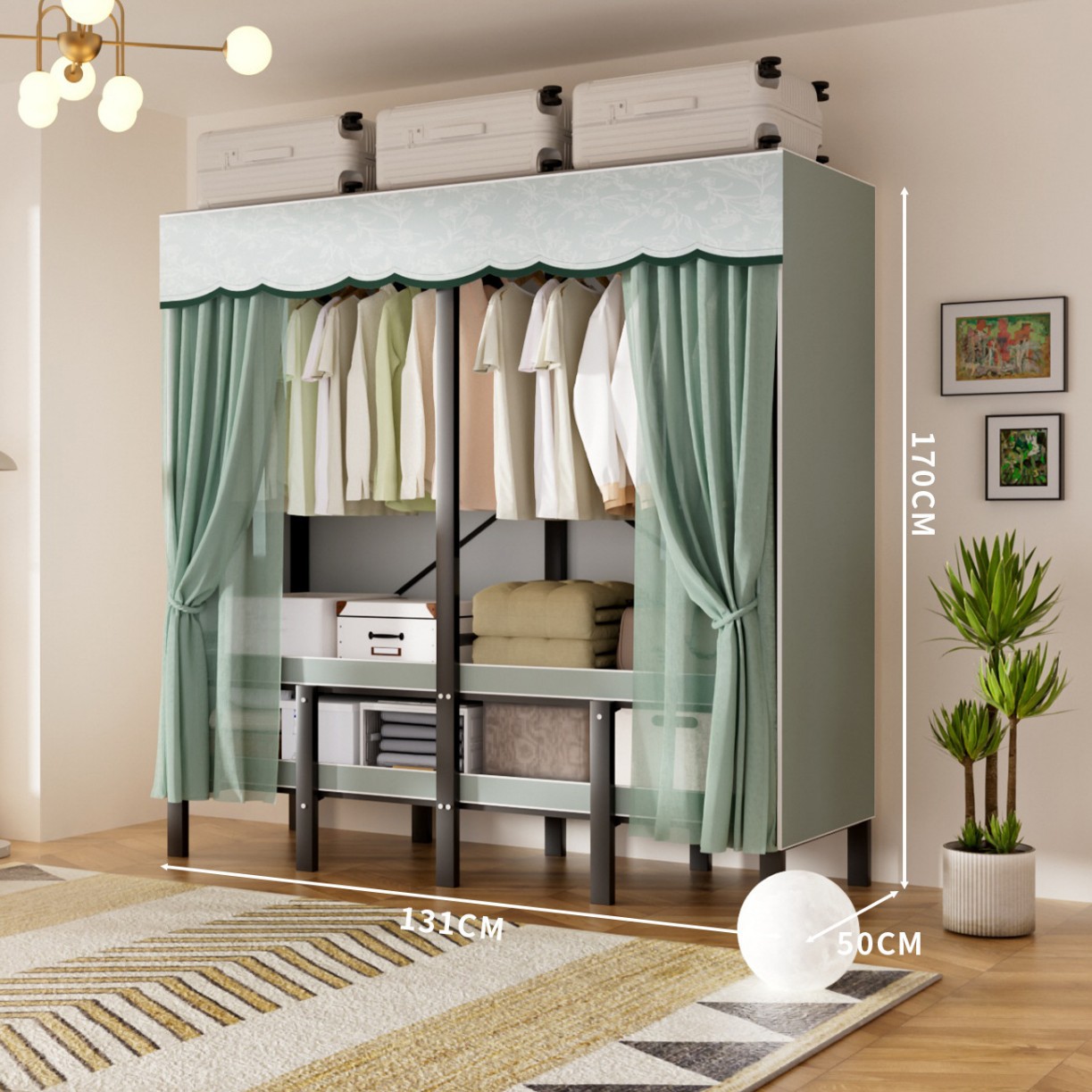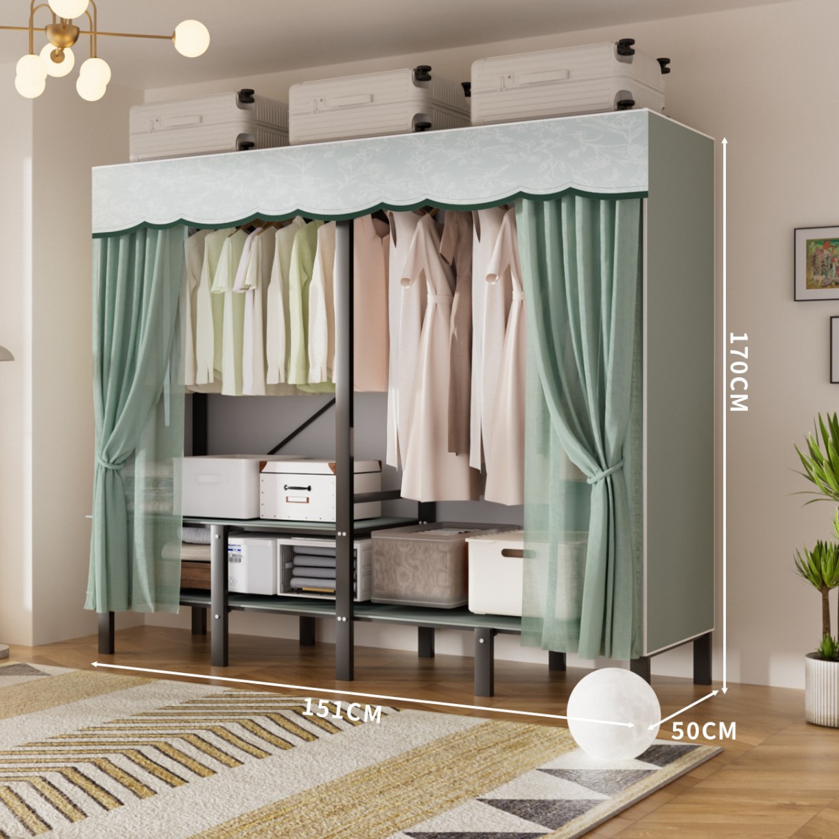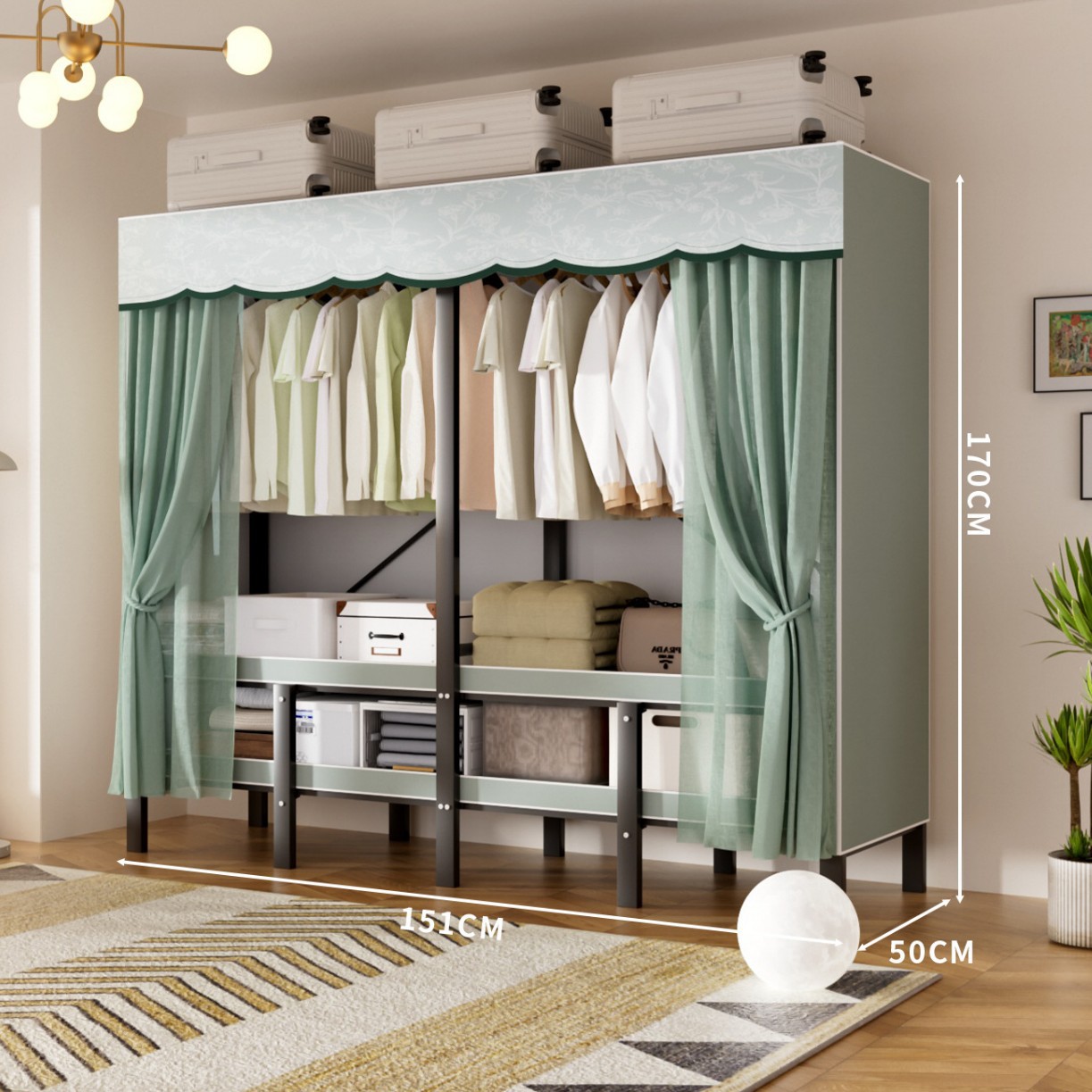 • 업그레이드된 길어진 옷걸이 [ 1.51m -파인프로스트그린] 수납다양화