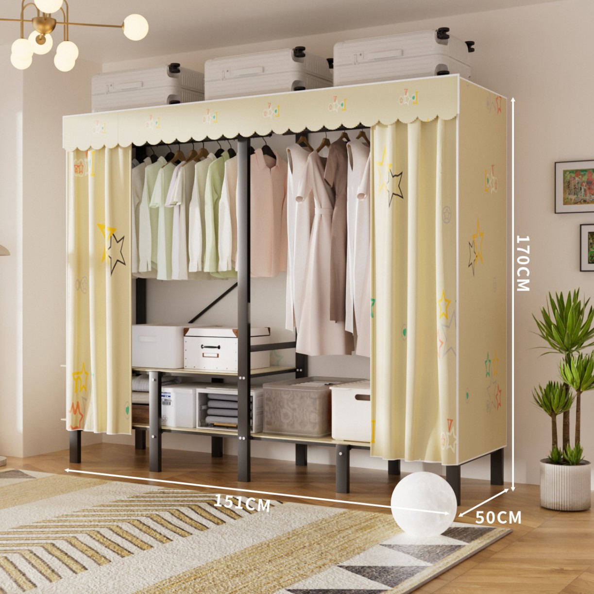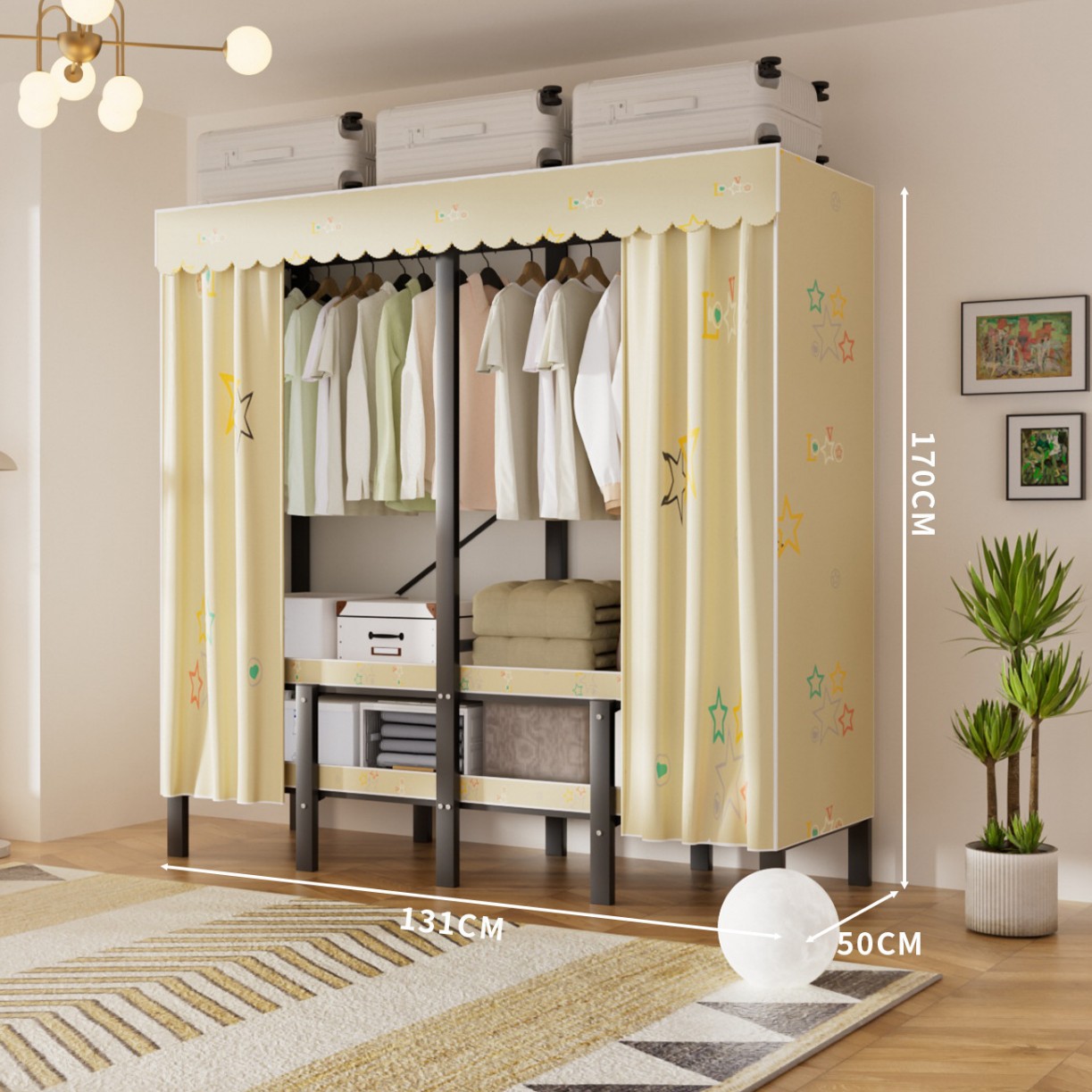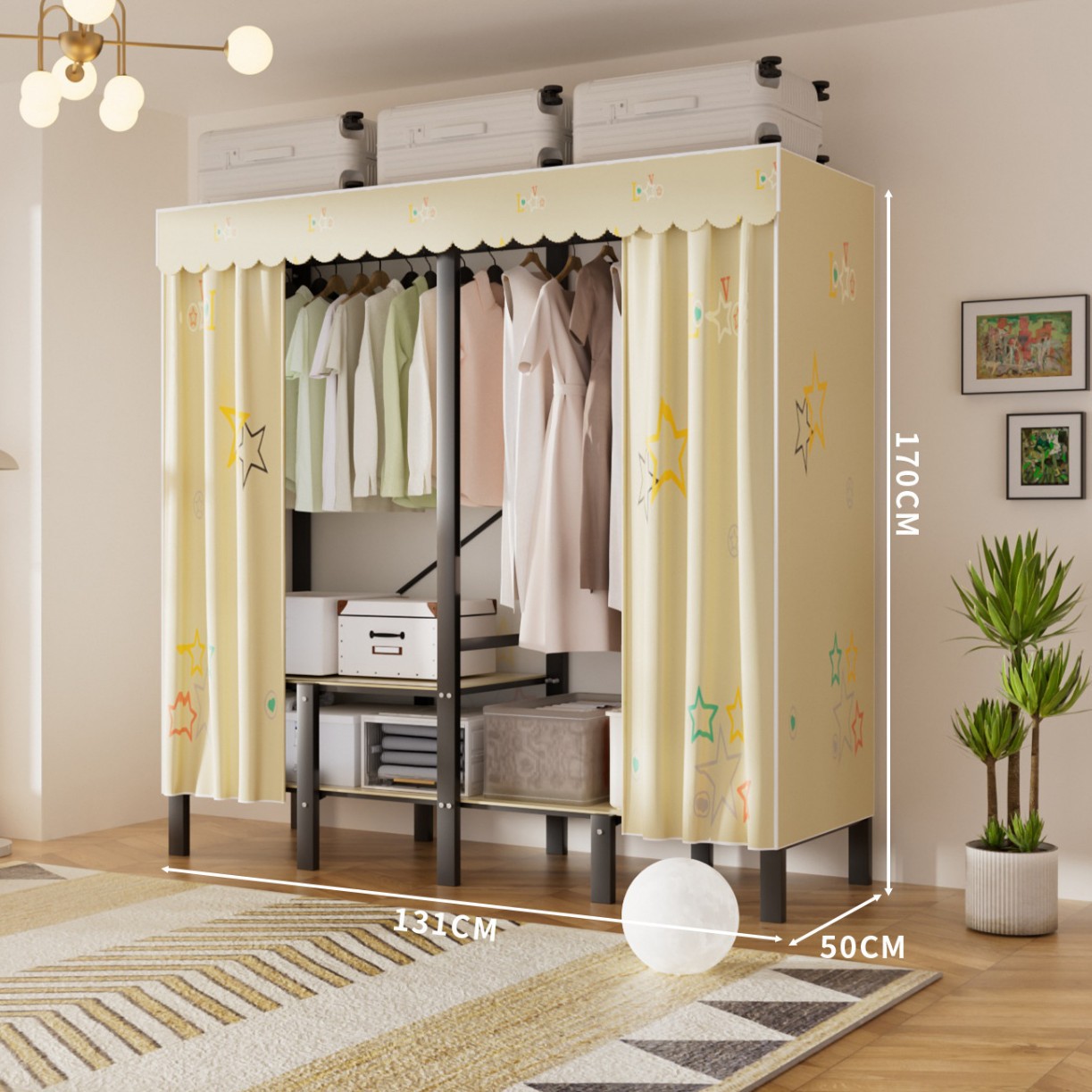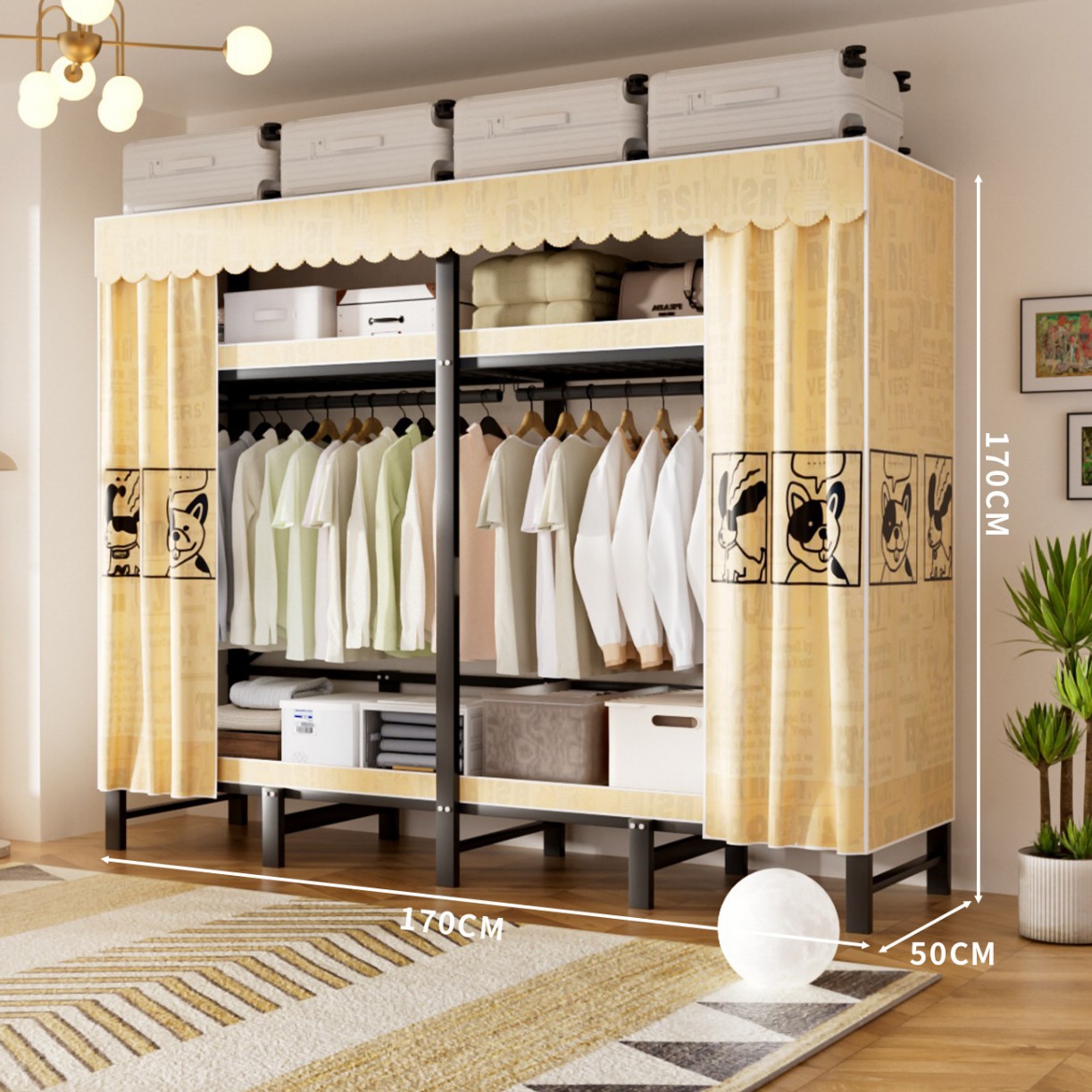 • 업그레이드된 길쭉한 걸이옷 [ 1.7m - 나비섀도우 옐로우 ] 수납 다양화