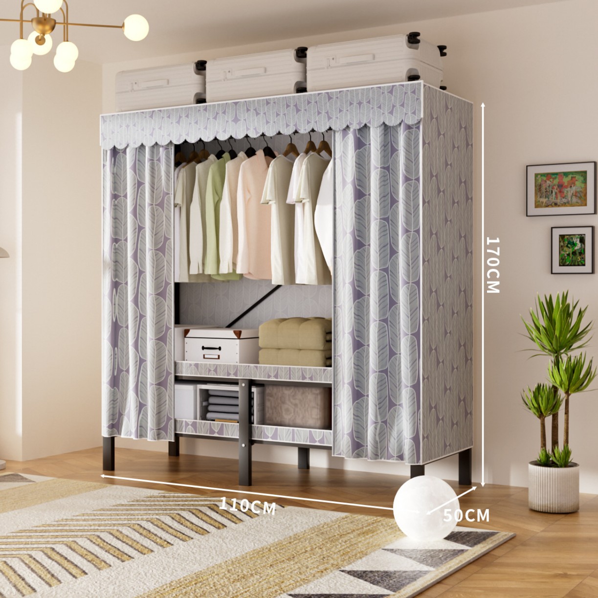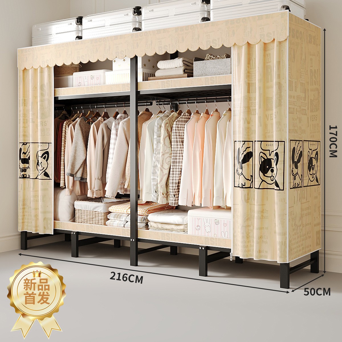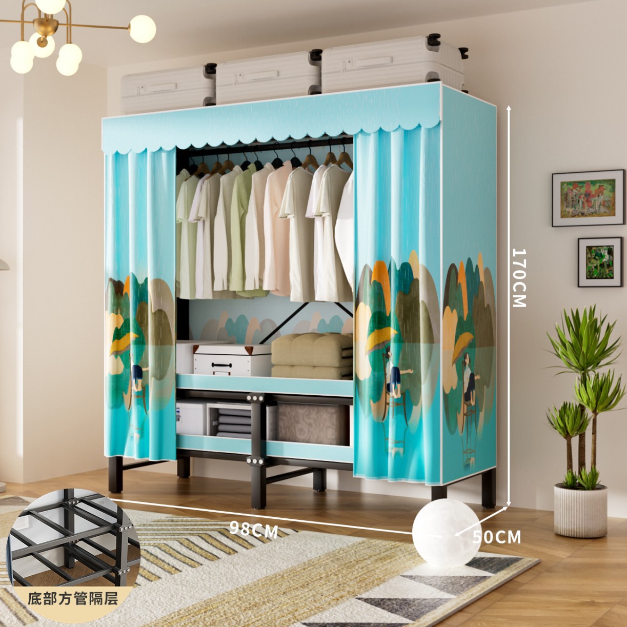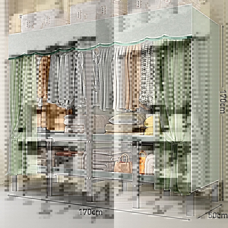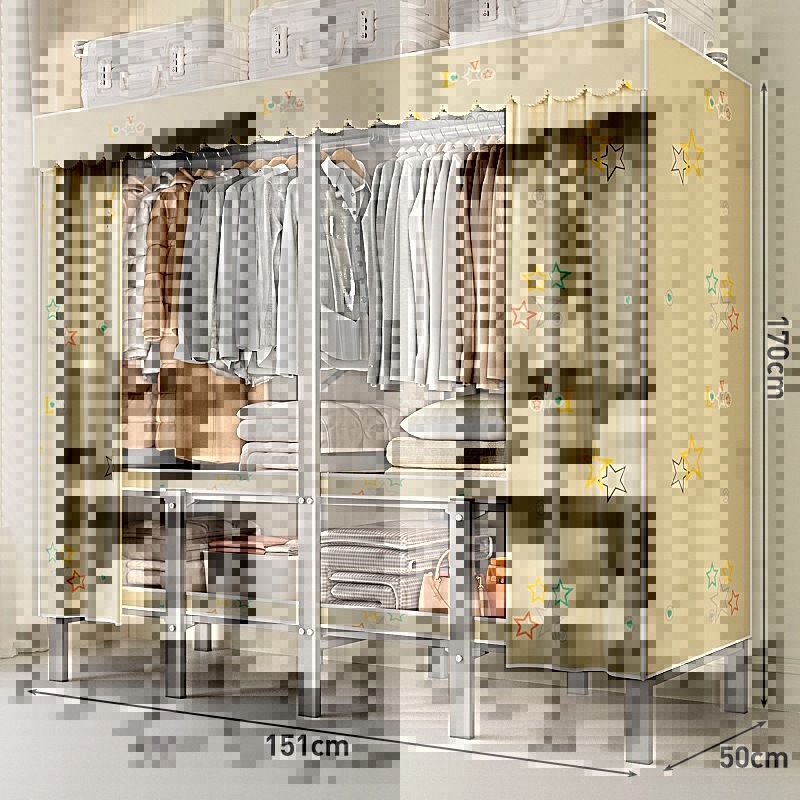 접이식 옷장, 가정용 침실, 간단한 천 옷장, 튼튼하고 내구성이 뛰어난 임대용 옷장, 철제 프레임 캐비닛스토어 가기